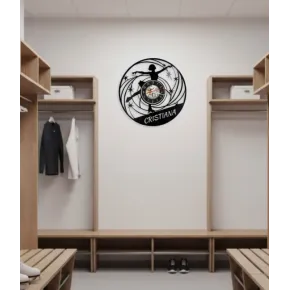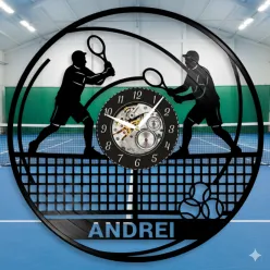CEAS DE PERETE TENNIS CHAMPION Artă Sportivă Personalizabilă, Eleganță și Dinamism Sculptate în Vinil Această operă de artă dinamică celebrează pasiunea, eleganța și precizia tenisului cu un design spectaculos ce captează energia intensă a jocului. Ceasul Tennis Champion este sculptat manual dintr-un disc de vinil autentic (LP), transformat într-un simbol vizual al sportului alb și al competiției nobile. Este mai mult decât un simplu cronometru; este o declarație de stil, un omagiu personal și un element de decor esențial pentru orice spațiu dedicat sportului, vitezei și performanței. Fiecare secundă măsurată de acest ceas este un...