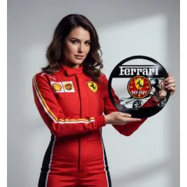 * CEAS DE PERETE FERRARI – Simfonie a Vitezei, Artei și Legendei Italienești. Un Omagiu Timpului Măsurat în Adrenalină  Un adevărat tribut adus ingineriei italienești de vârf, pasiunii nețărmurite și eleganței atemporale, acest ceas de perete transformă un simplu disc de vinil reciclat într-o capodoperă care celebrează spiritul Ferrari . Fiecare detaliu al acestei sculpturi funcționale este un strigăt de admirație pentru designul automotive, pentru moștenirea sportivă din Formula 1 și pentru arta prelucrării manuale. Este un obiect care capturează nu doar timpul, ci și esența vitezei, a luxului, a sunetului inconfundabil...