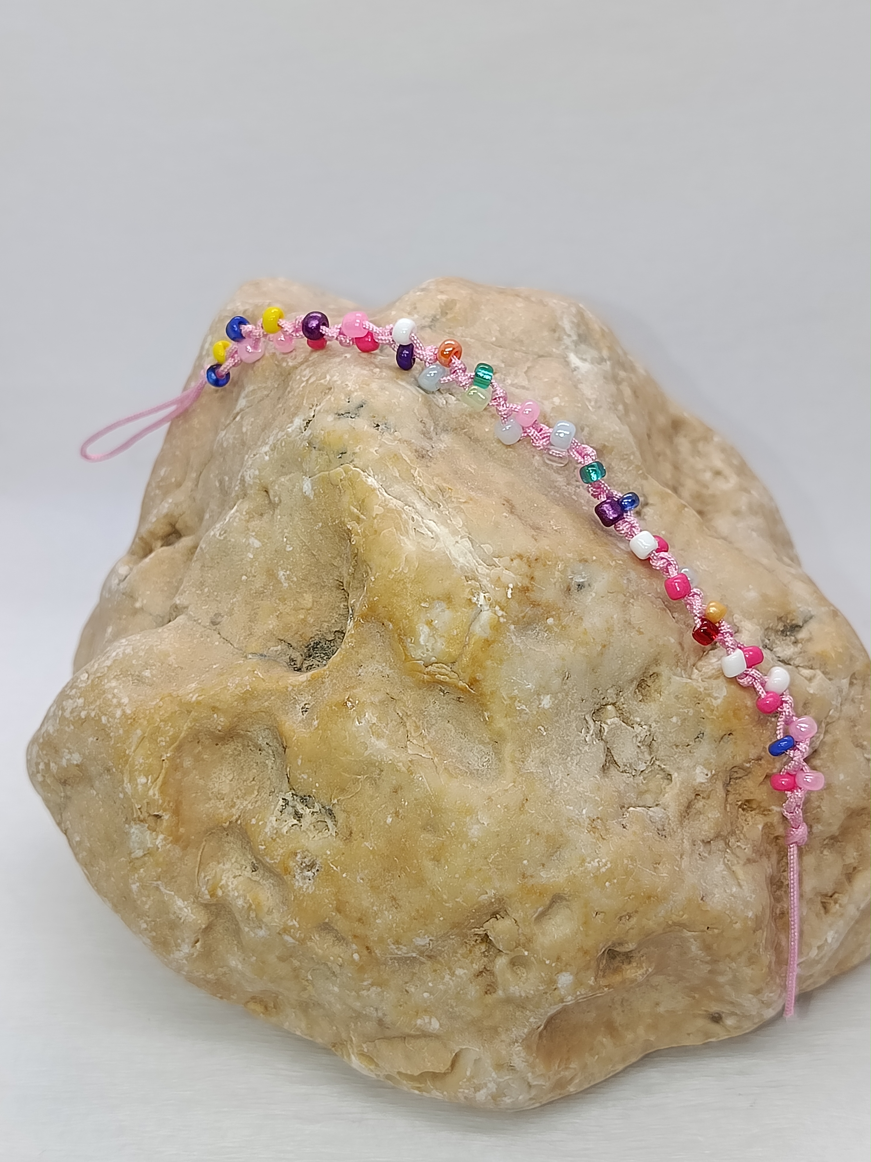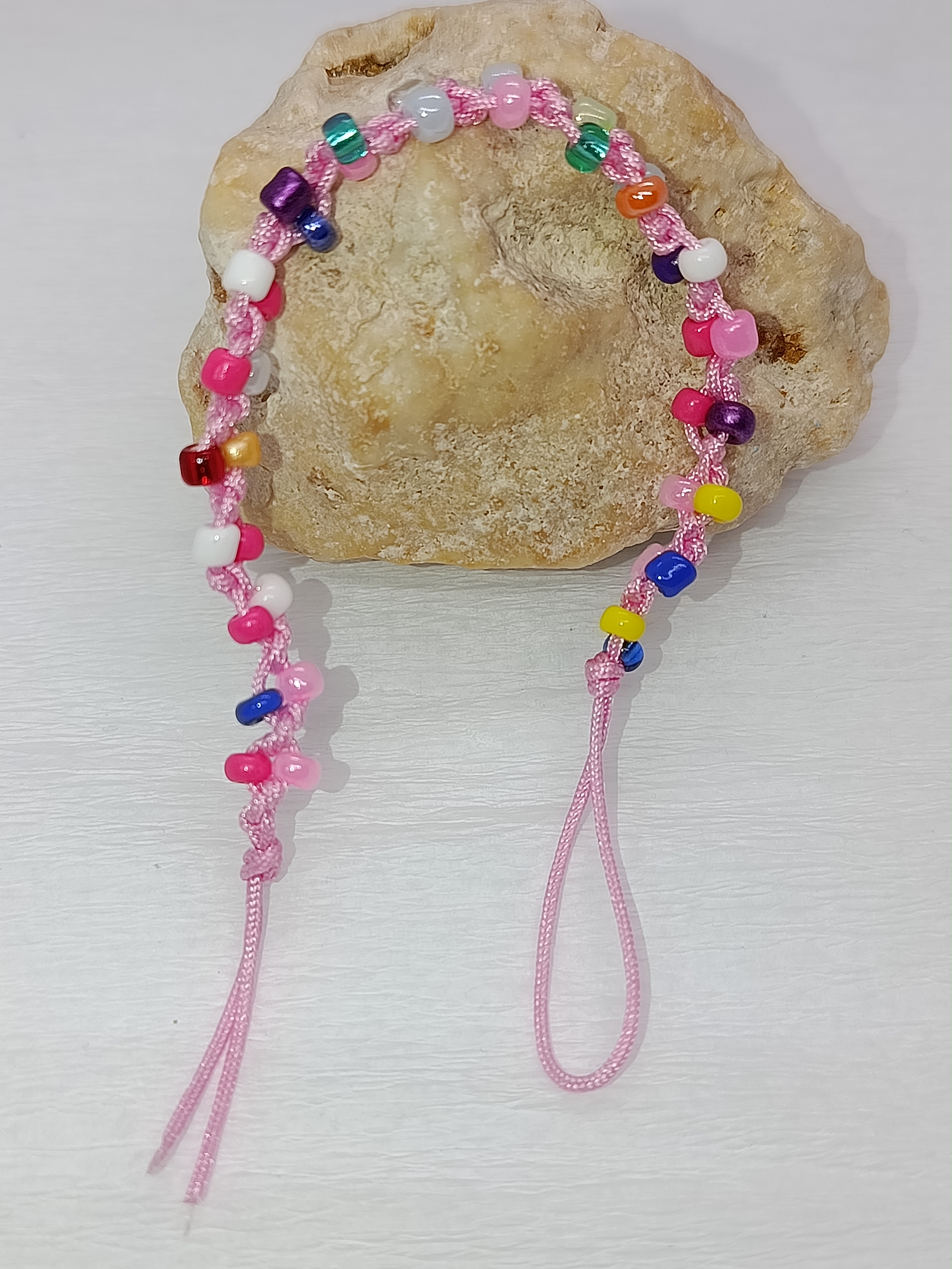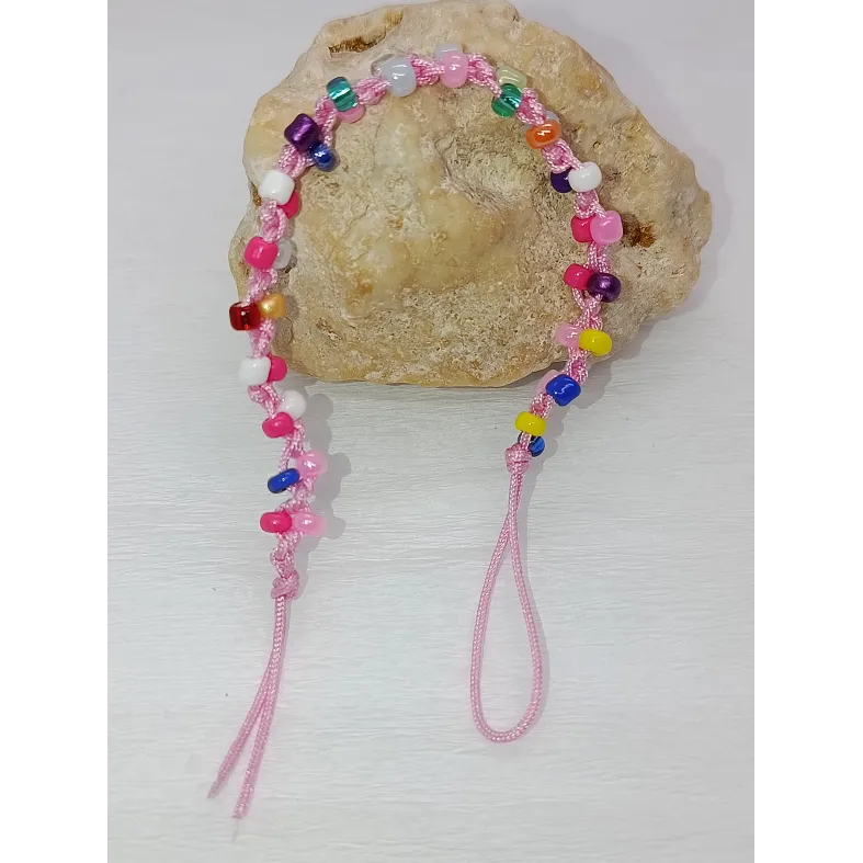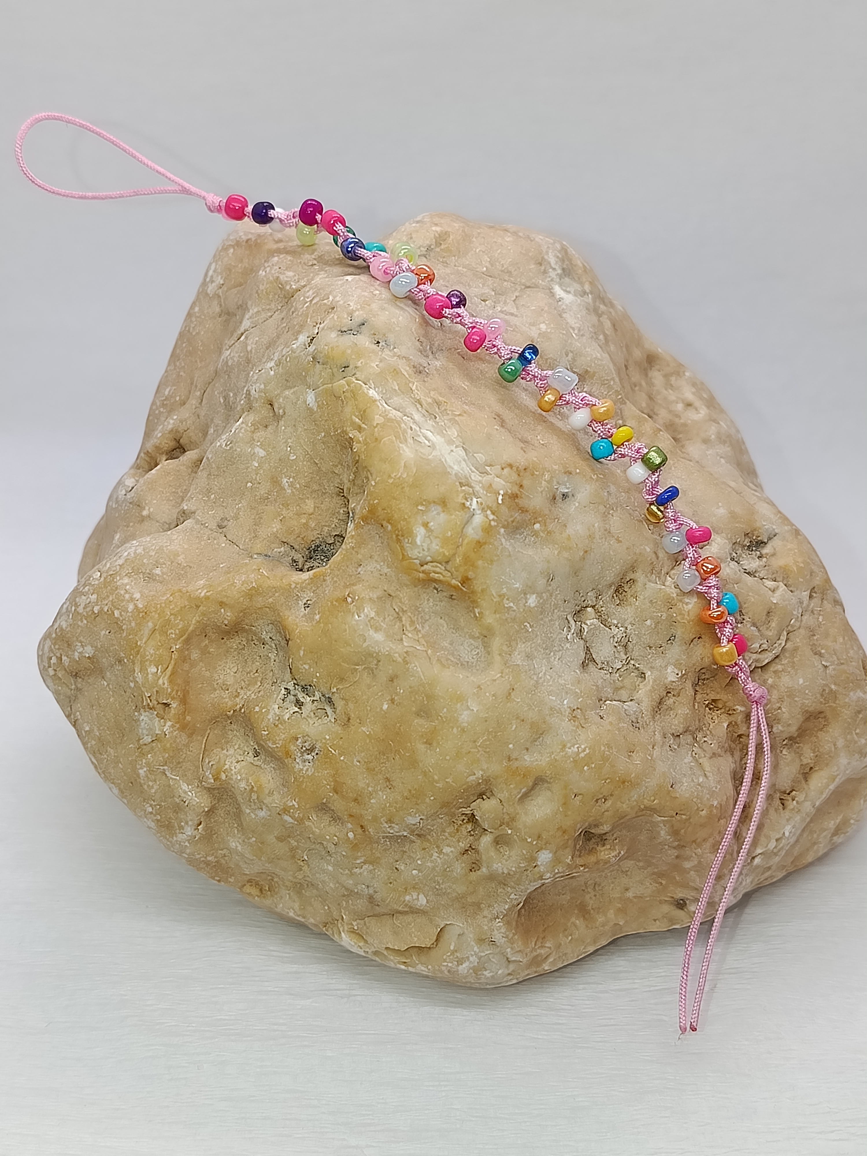 Acest charm pentru telefon este creat cu o atenție deosebită la detalii, fiind accesoriul perfect pentru a-ți accesoriza dispozitivul într-un mod jucăuș și feminin. Realizat dintr-un șnur rezistent de culoare roz, acesta este decorat pe ambele părți cu mărgele de nisip fine, de doar 2 mm, alese în culori vii care se completează armonios.
