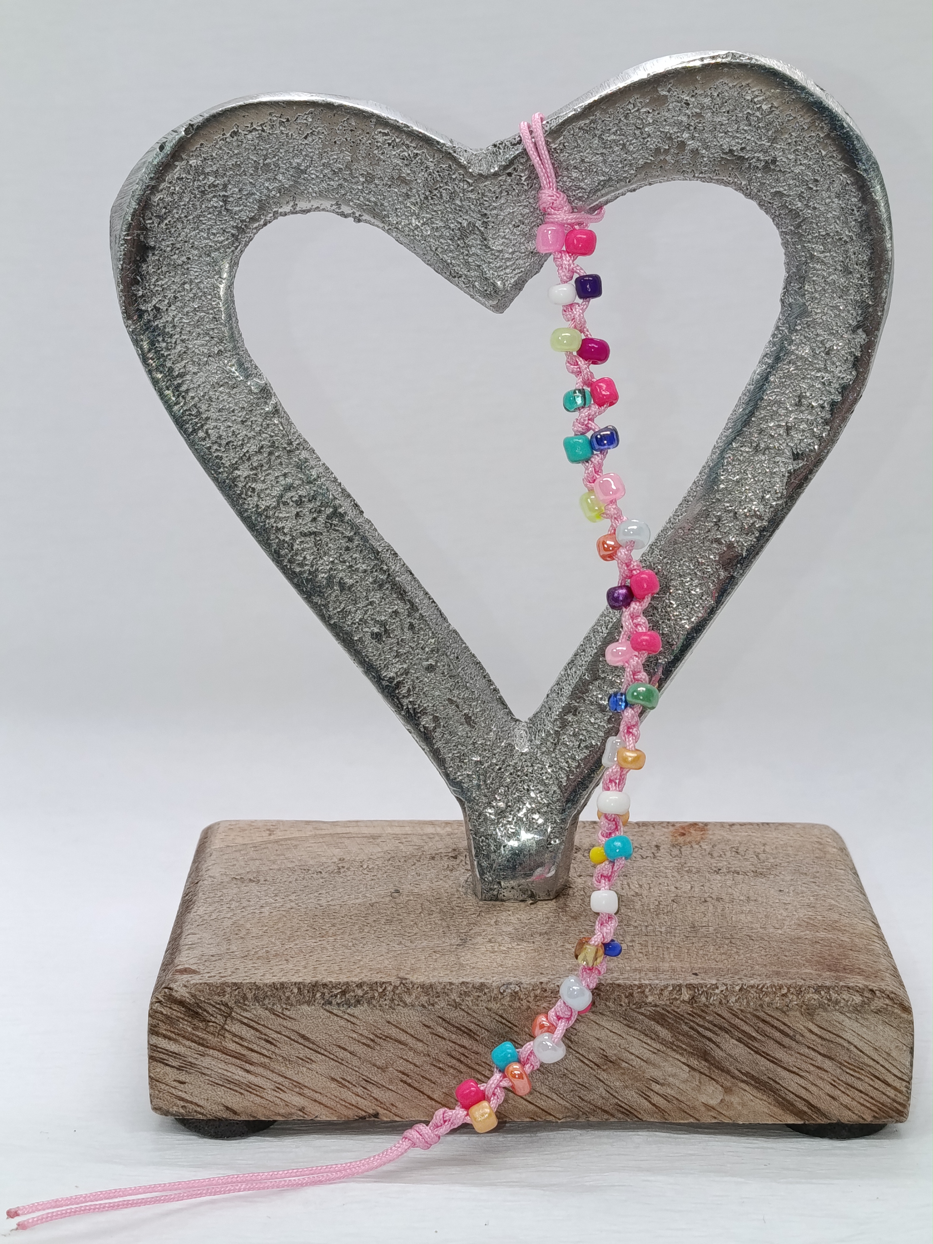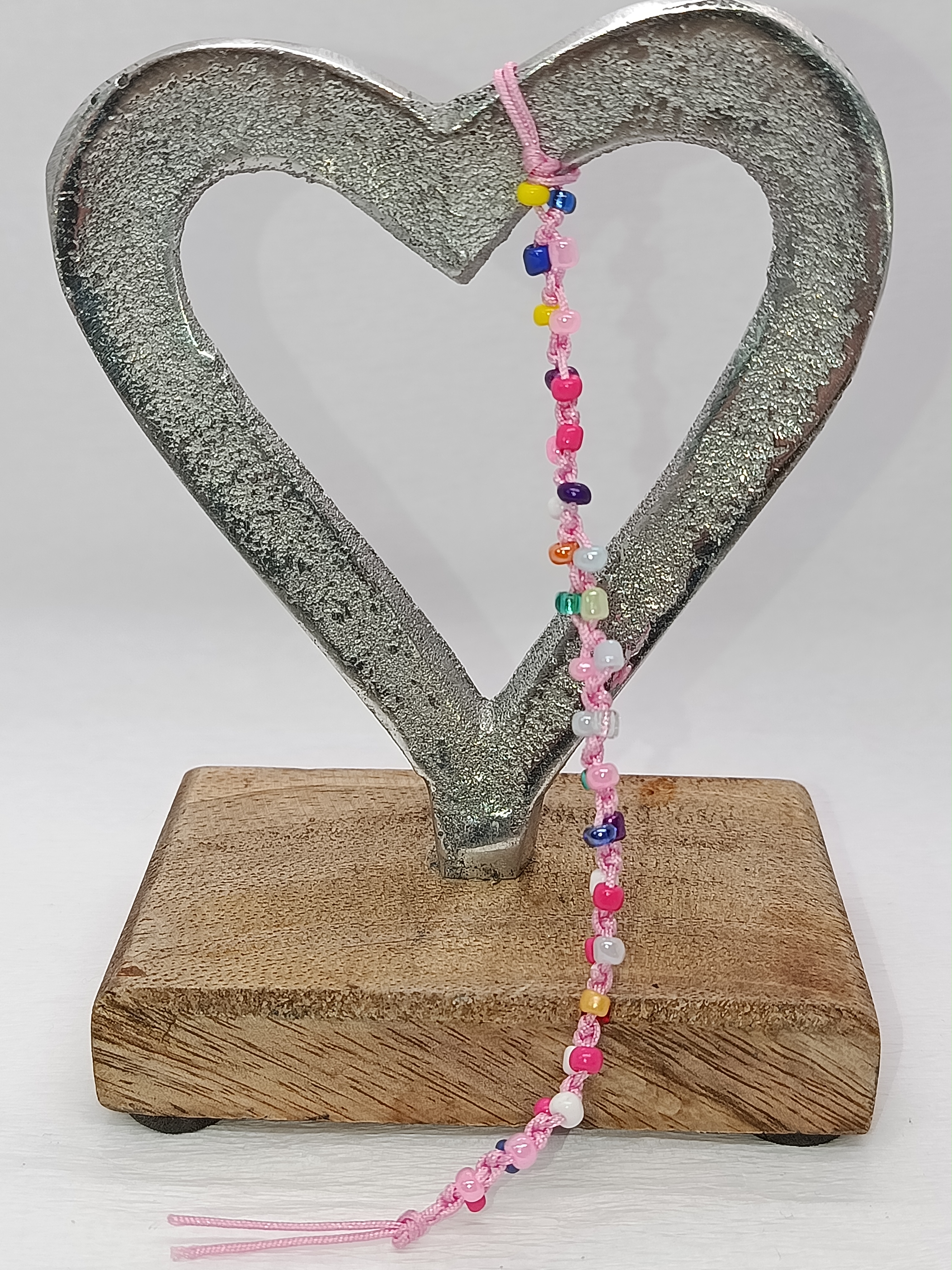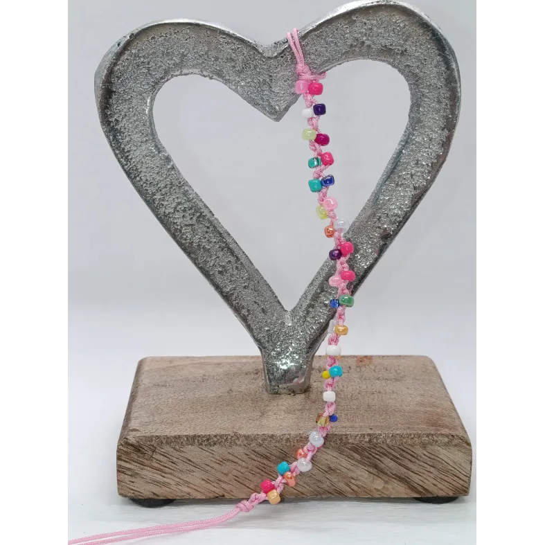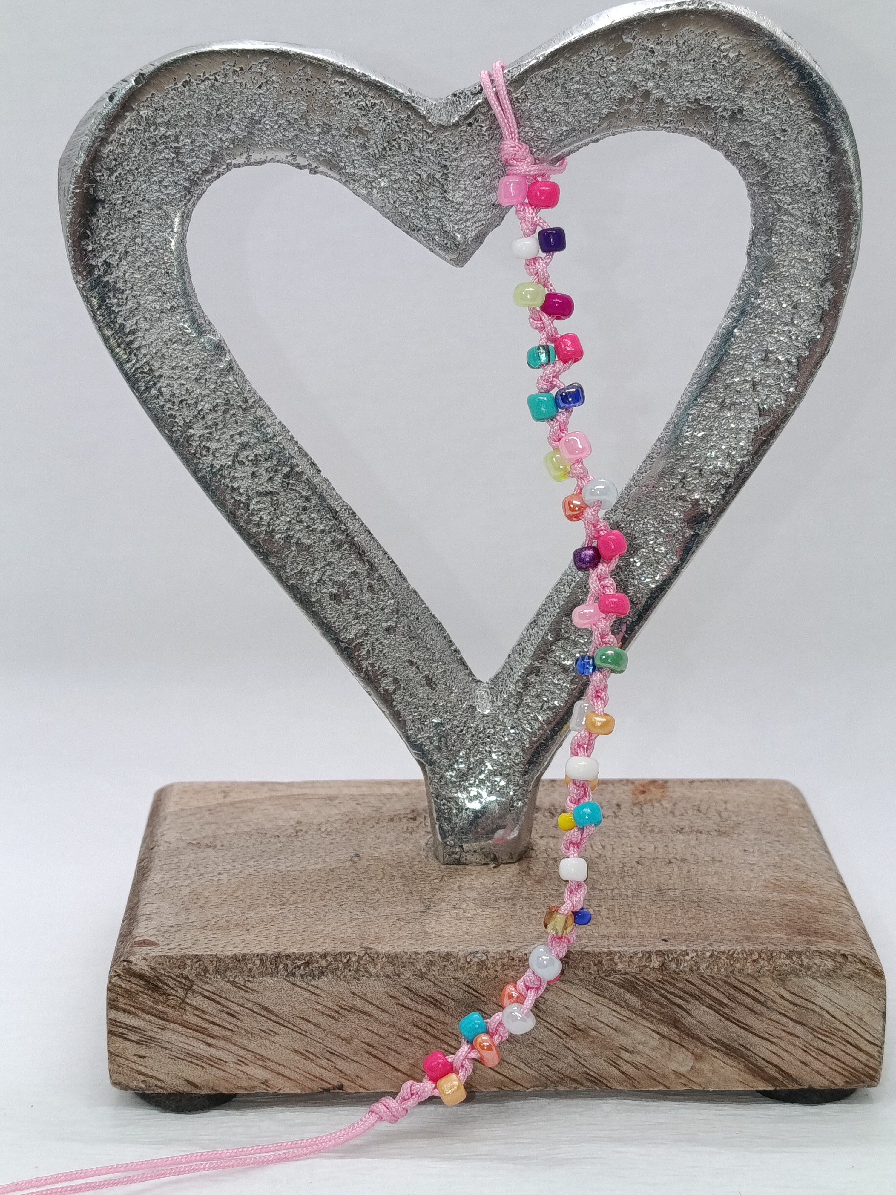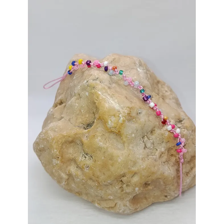 Acest charm pentru telefon este creat cu o atenție deosebită la detalii, fiind accesoriul perfect pentru a-ți accesoriza dispozitivul într-un mod jucăuș și feminin. Realizat dintr-un șnur rezistent de culoare roz, acesta este decorat pe ambele părți cu mărgele de nisip fine, de doar 2 mm, alese în culori vii care se completează armonios.