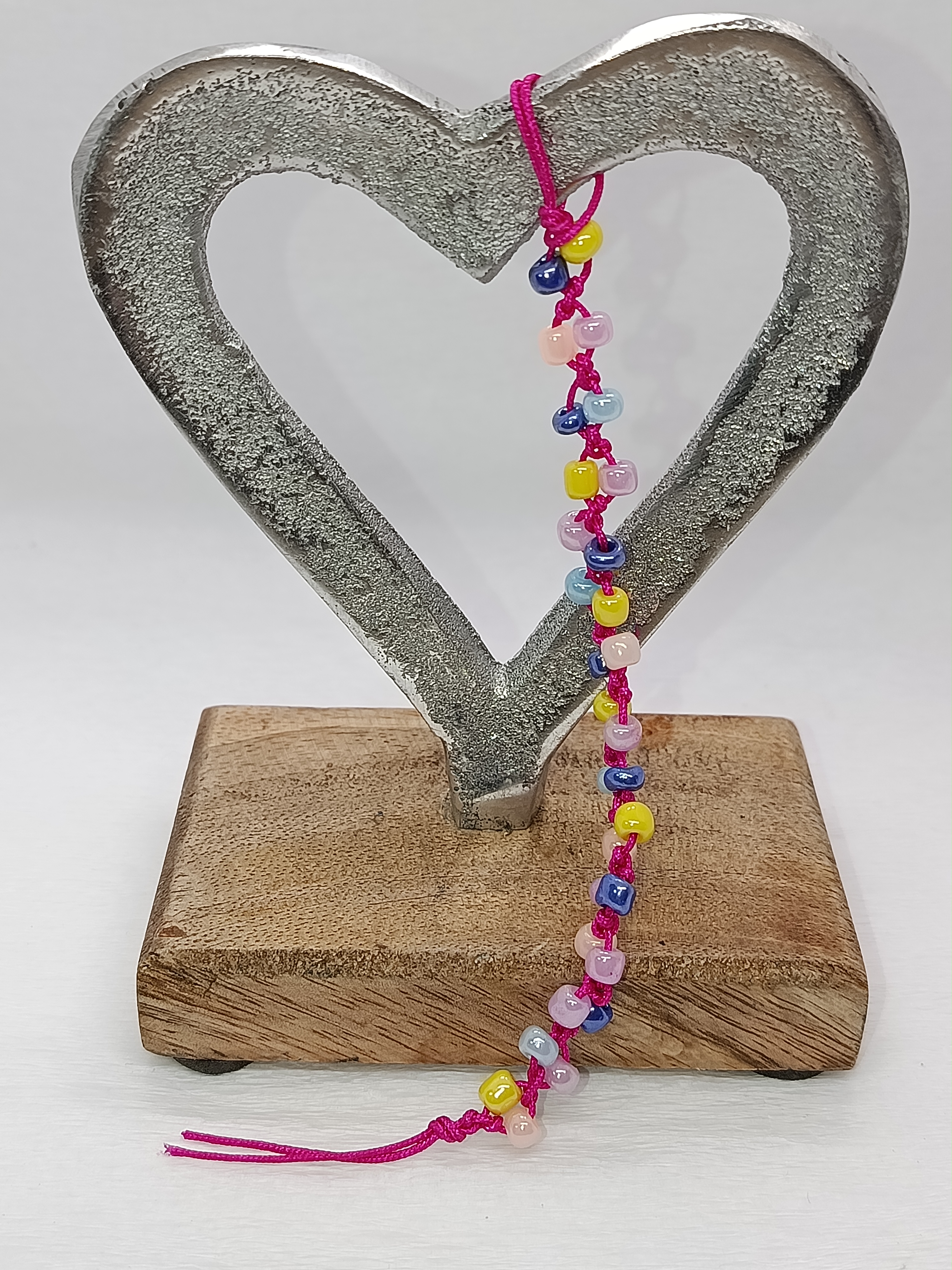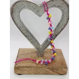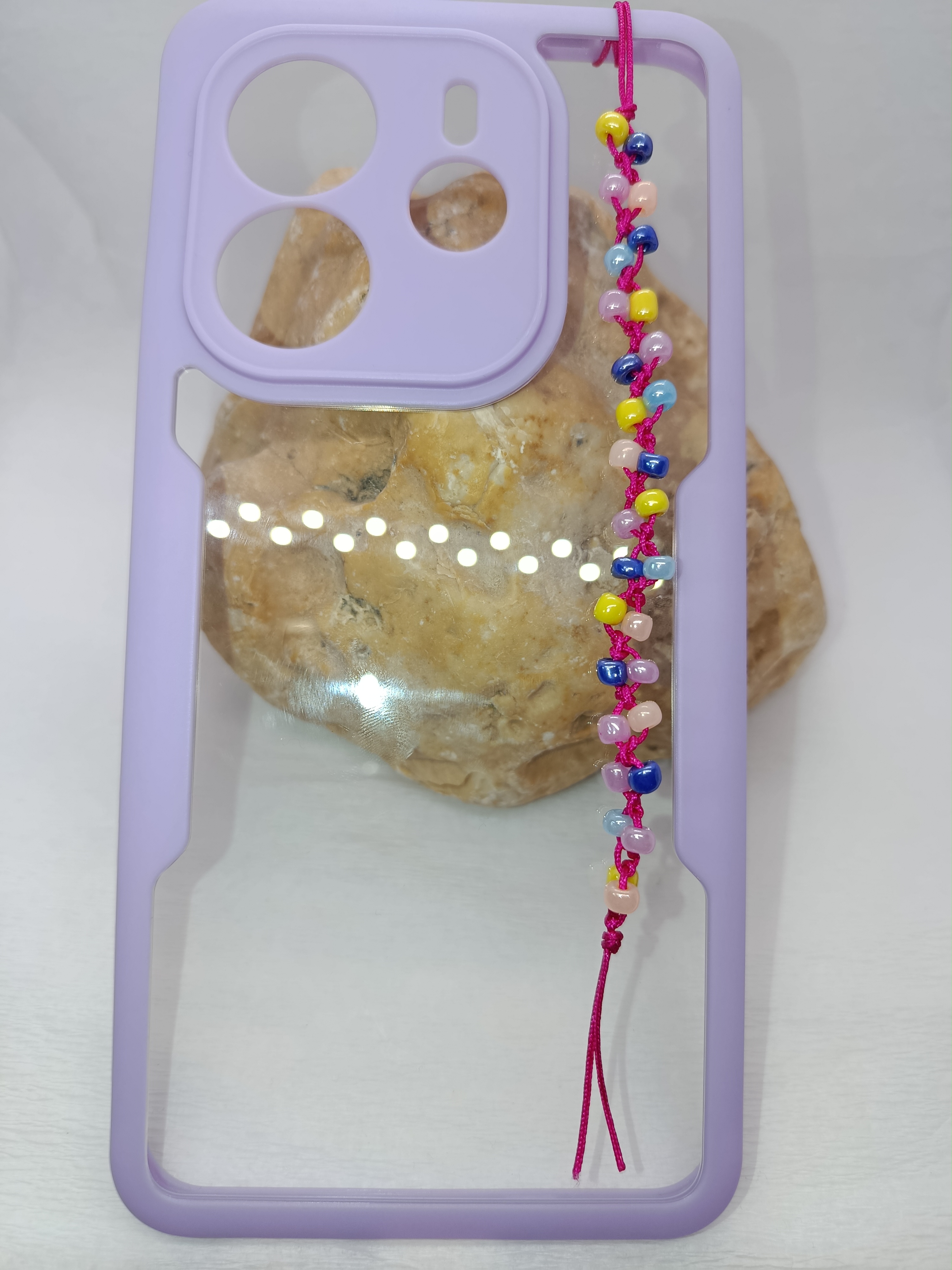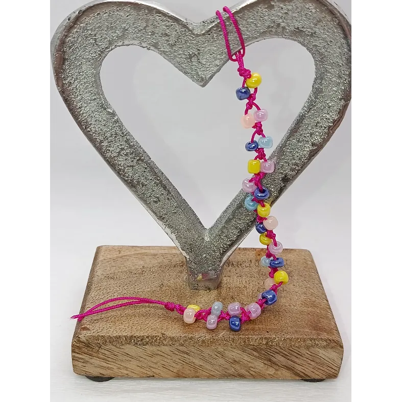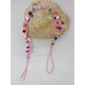 Realizat pe un șnur rezistent roz siclam, acest charm de 18 cm este decorat cu mărgele de nisip de 4 mm, alese special pentru finisajul lor sidefat. Jocurile de lumină ale mărgelelor roz, albastre, galbene și lila creează un efect perlat, perfect pentru a adăuga o notă de magie și veselie telefonului tău.