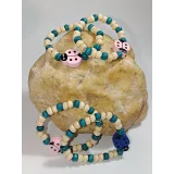 Întâmpină primăvara cu un accesoriu plin de prospețime și stil! Această brățară de mărțișor pentru copii este realizată manual dintr-o combinație elegantă de mărgele de lemn în nuanțe de turcoaz vibrant și crem natural, oferind un aspect echilibrat și vesel.