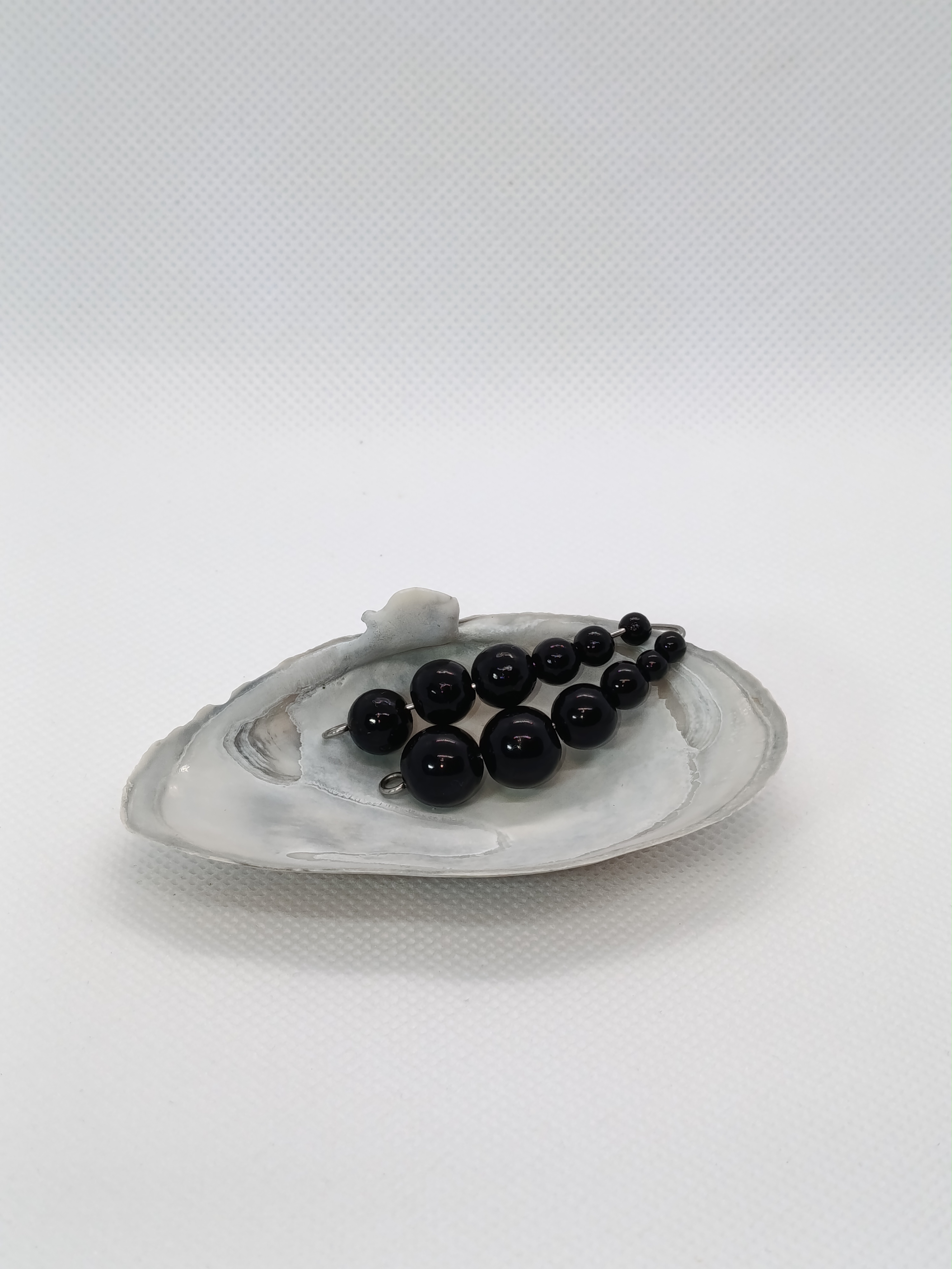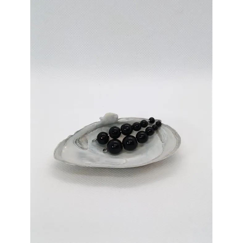 Elemente: Mărgele negre tip perlă, dispunere graduală.
