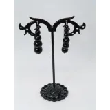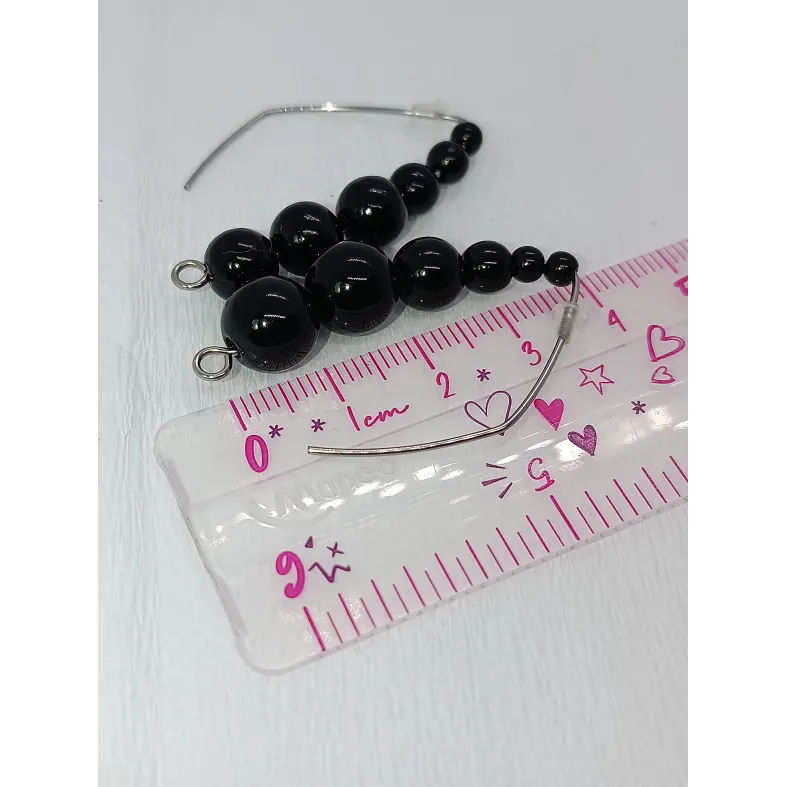 Cercei Minimal "Black Gradient" – Inox și Mărgele Negre Graduale, 4 cm