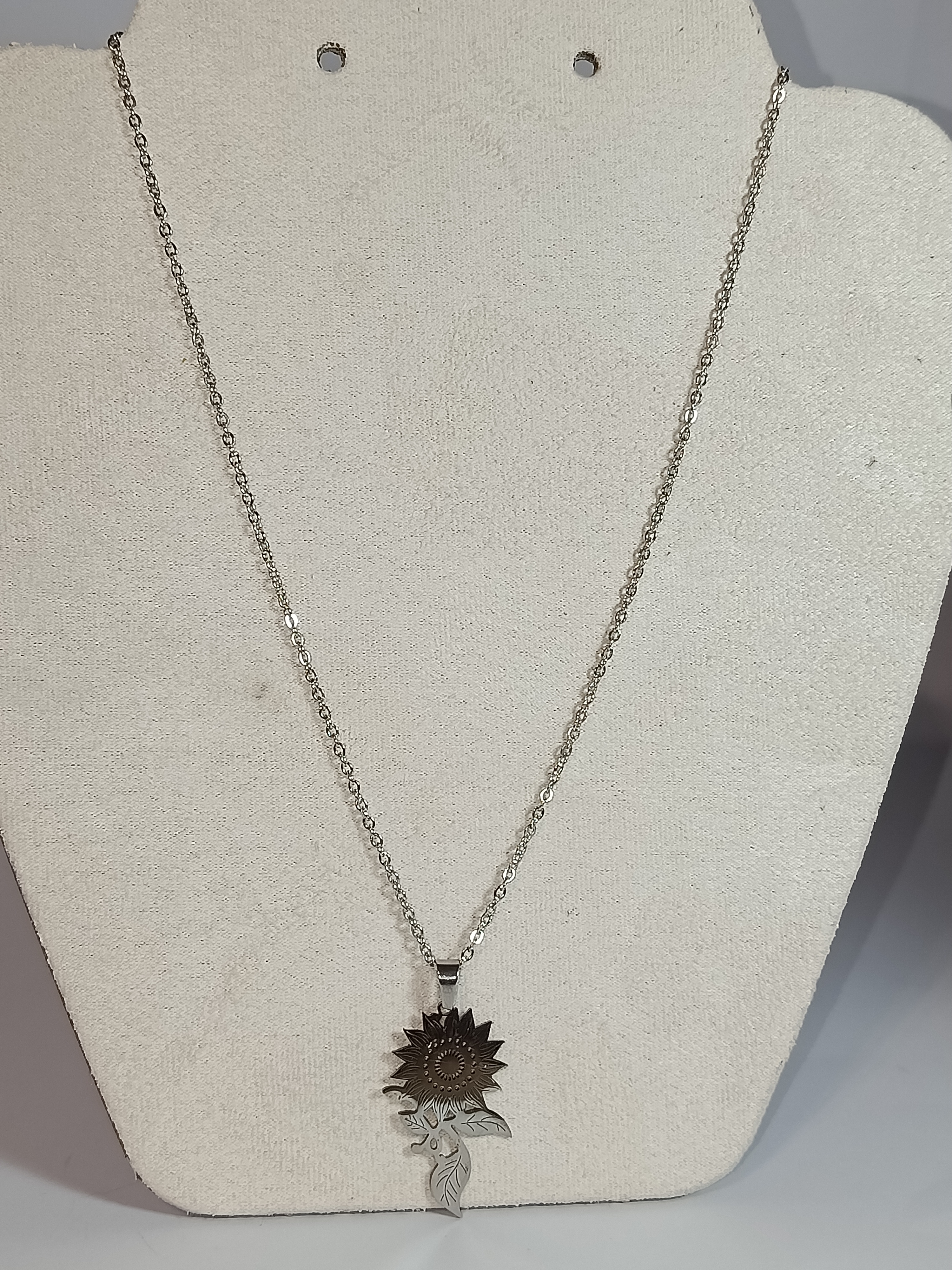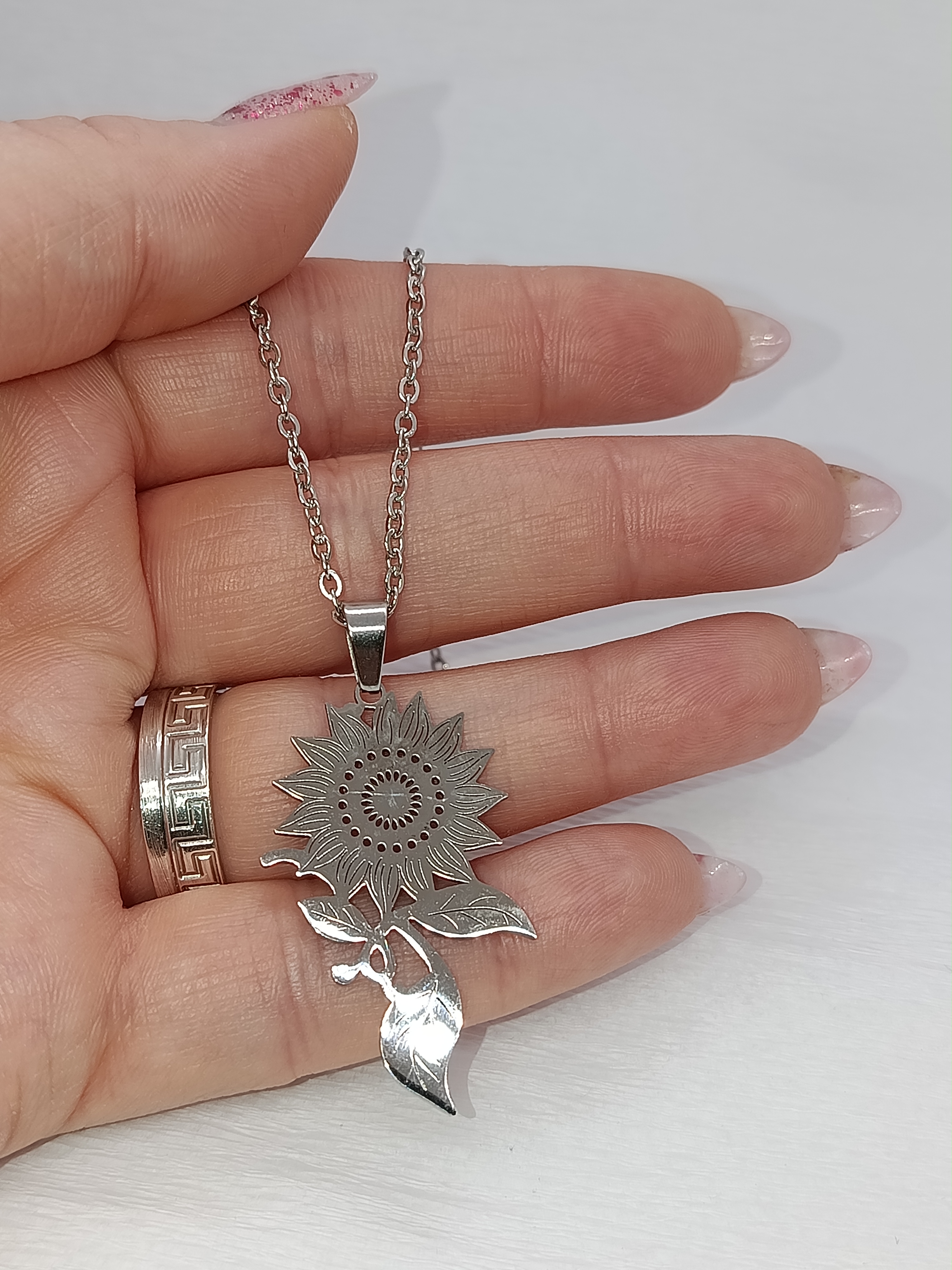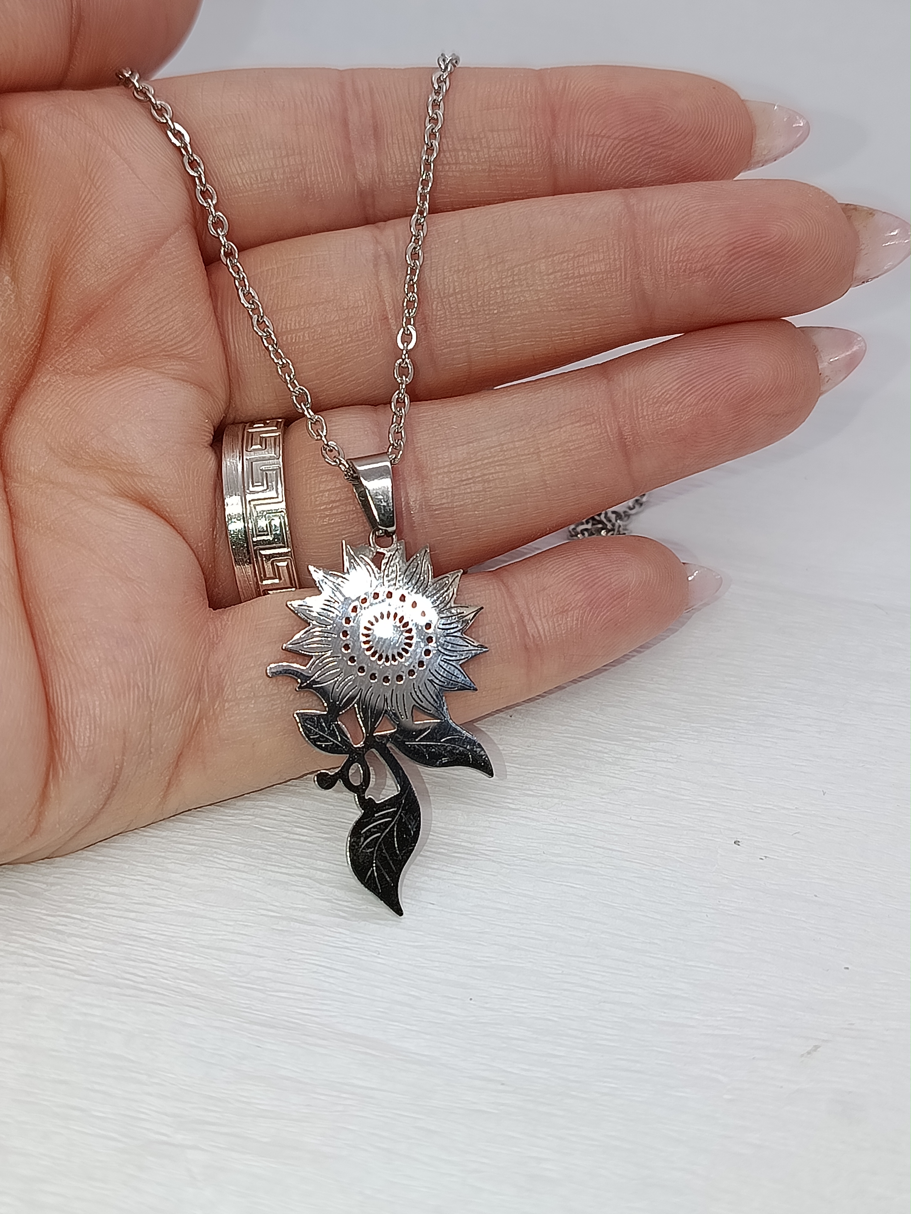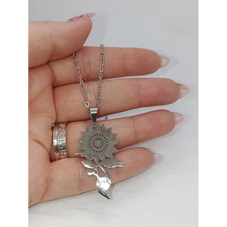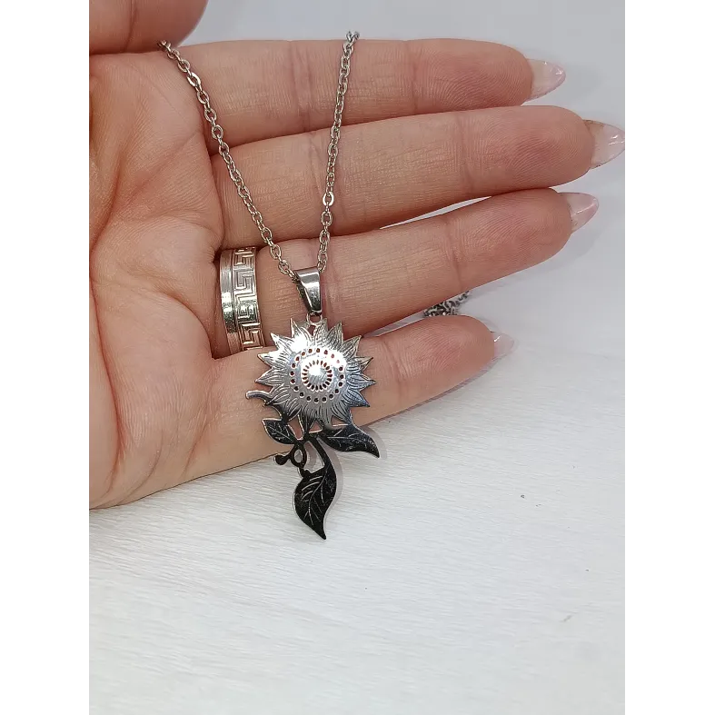 Poartă cu tine lumina și energia soarelui cu ajutorul acestui colier.Realizat integral din oțel inoxidabil de înaltă calitate, acest lănțișor impresionează prin pandantivul său sub formă de Floarea Soarelui, finisat cu o atenție meticuloasă la detalii.