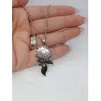 Design Detaliat: Pandantivul prezintă un model floral decupat, cu o tulpină și frunze stilizate, oferind un echilibru perfect între elementele de natură și estetica modernă.