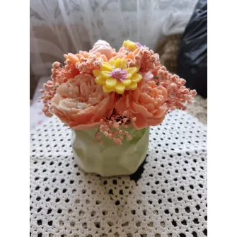 Îngeraș decorativ realizat manual din ceară, în nuanțe delicate de roz, simbol al purității și al ocrotirii. Așezat cu gingășie în cutiuță transparentă de cadou, acest îngeraș transmite pace, protecție și liniște sufletească. Poate fi oferit ca dar de suflet sau păstrat ca obiect decorativ cu valoare spirituală.