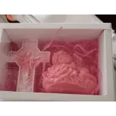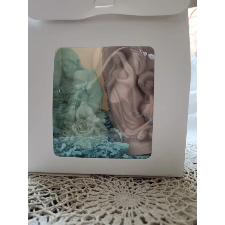 Set decorativ religios, realizat manual din ceară naturală, reprezentând Sfânta Familie și Maica Domnului. Figurinele, cu detalii delicate și nuanțe pastelate, transmit un mesaj de credință, pace și binecuvântare divină. Așezate într-o cutie elegantă cu fereastră, aceste piese devin un cadou de suflet sau un decor plin de semnificație pentru colțul de rugăciune.
