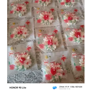 Realizate din ceară naturală de soia.Se poate personaliza ambalajul, culoarea florilor și parfumul.