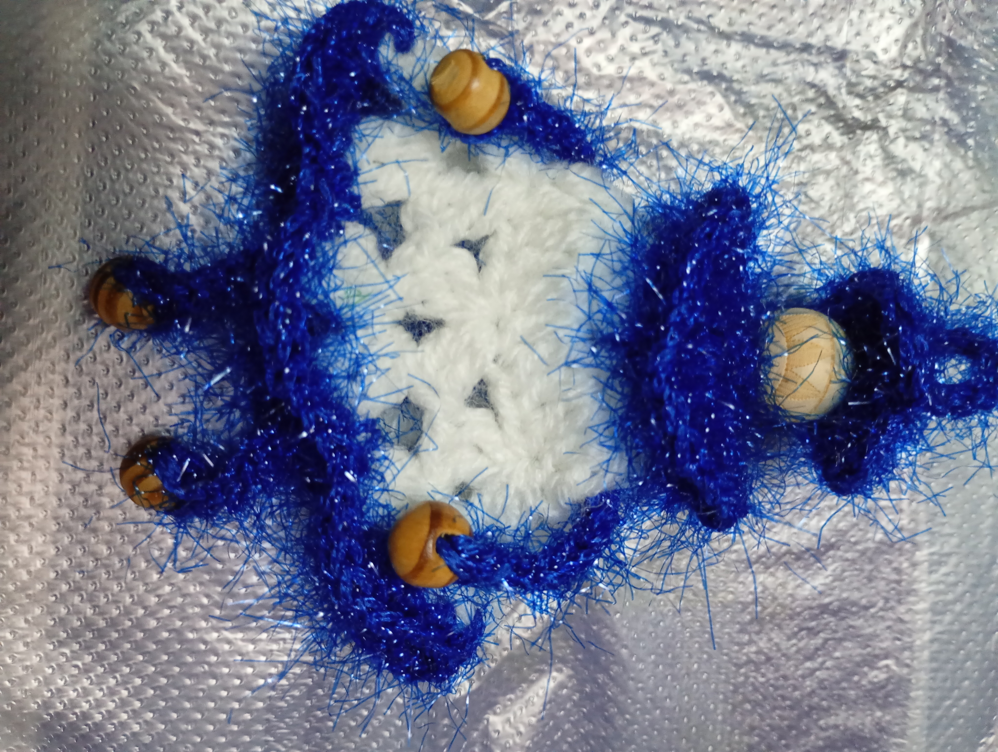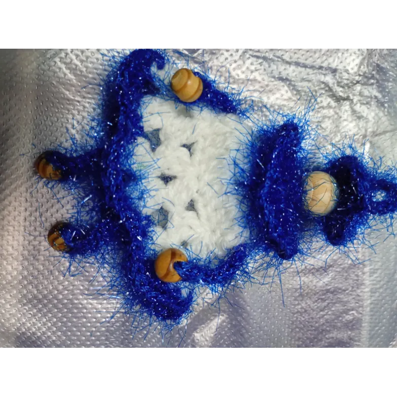 Păpușă croșetată din fire de acril și cristal,cu accesorii din mărgele de lemn