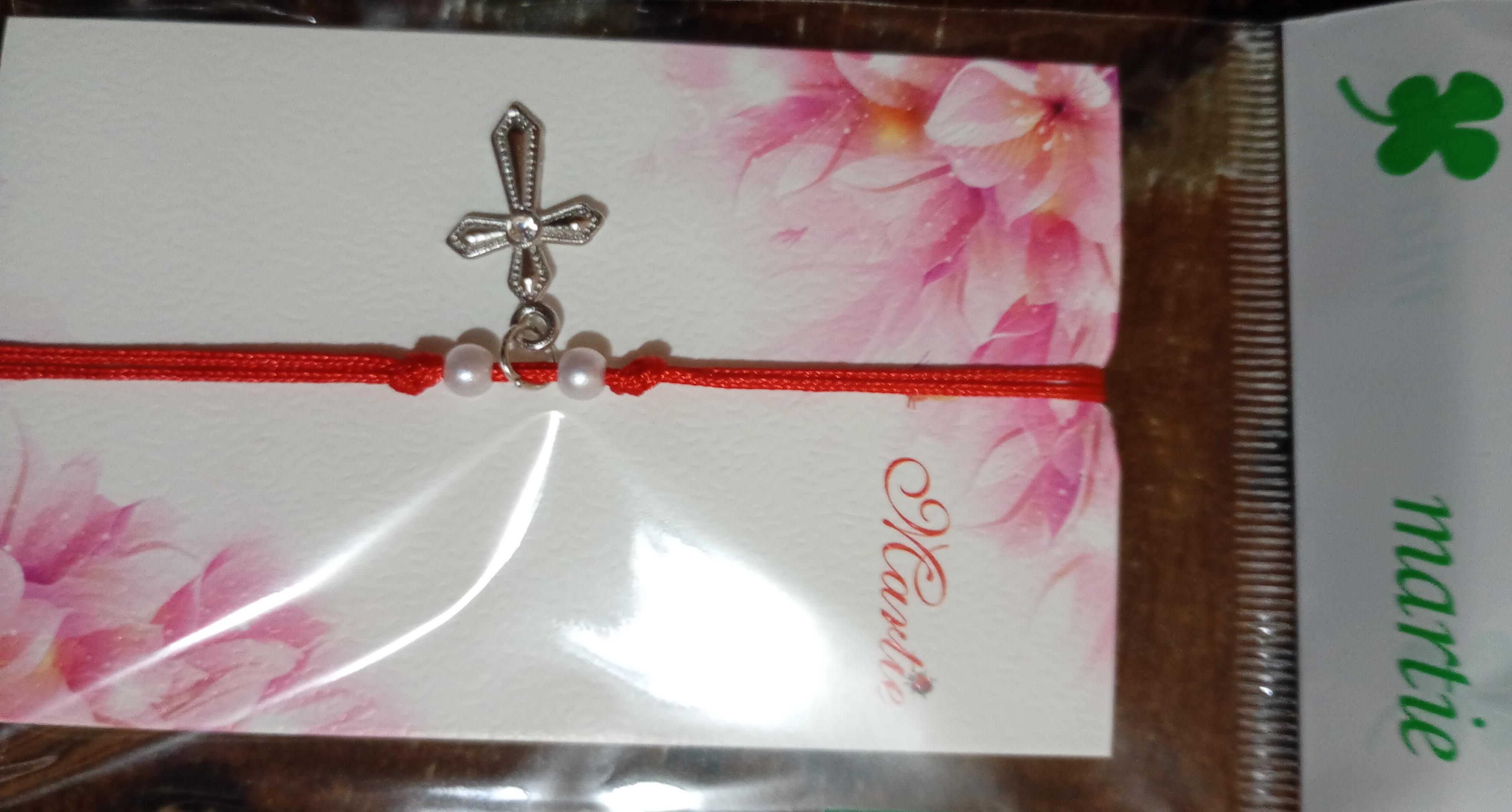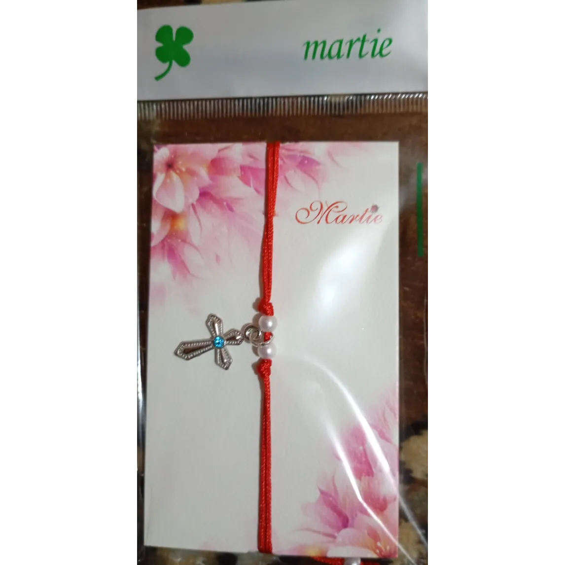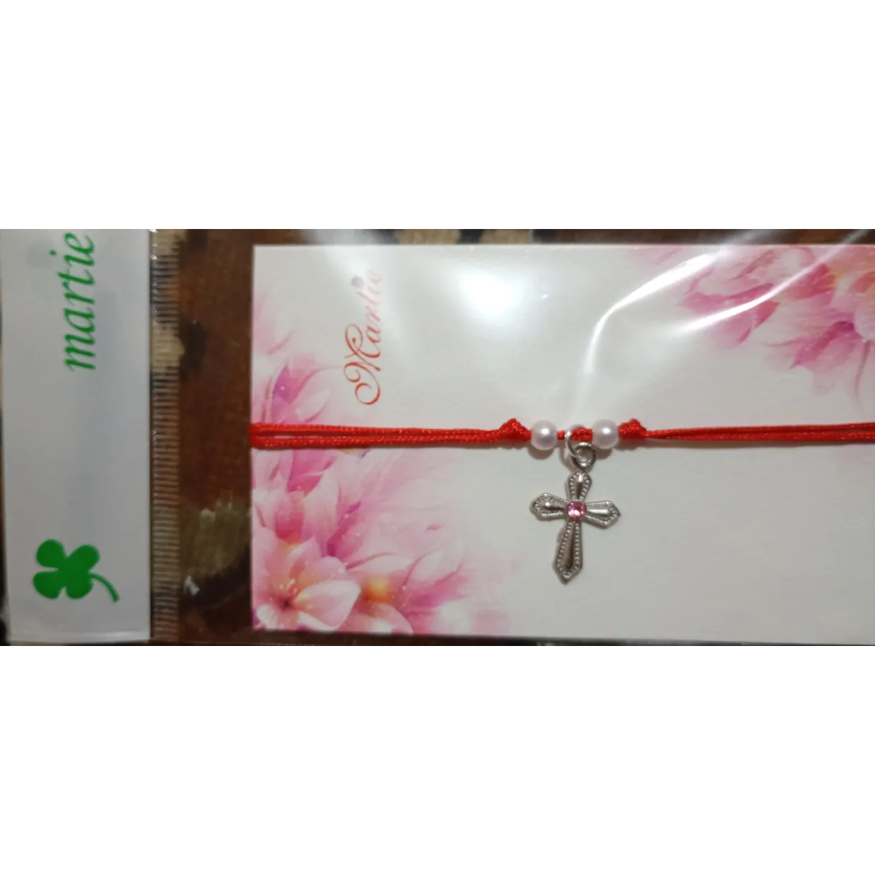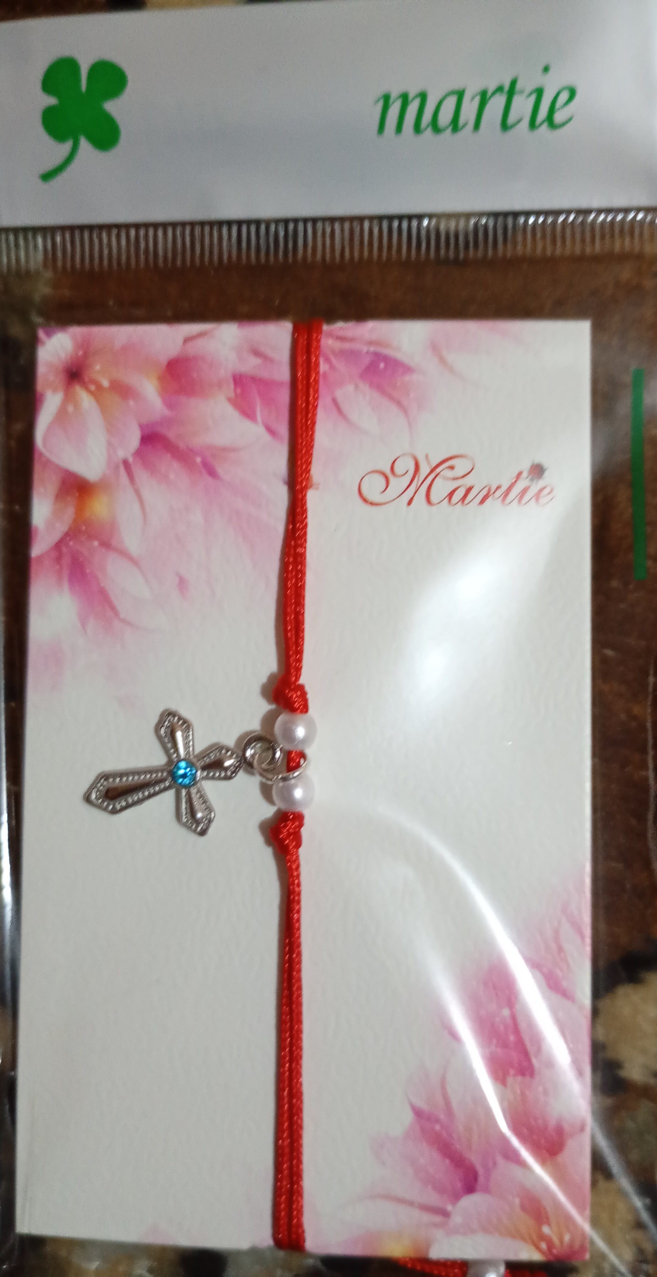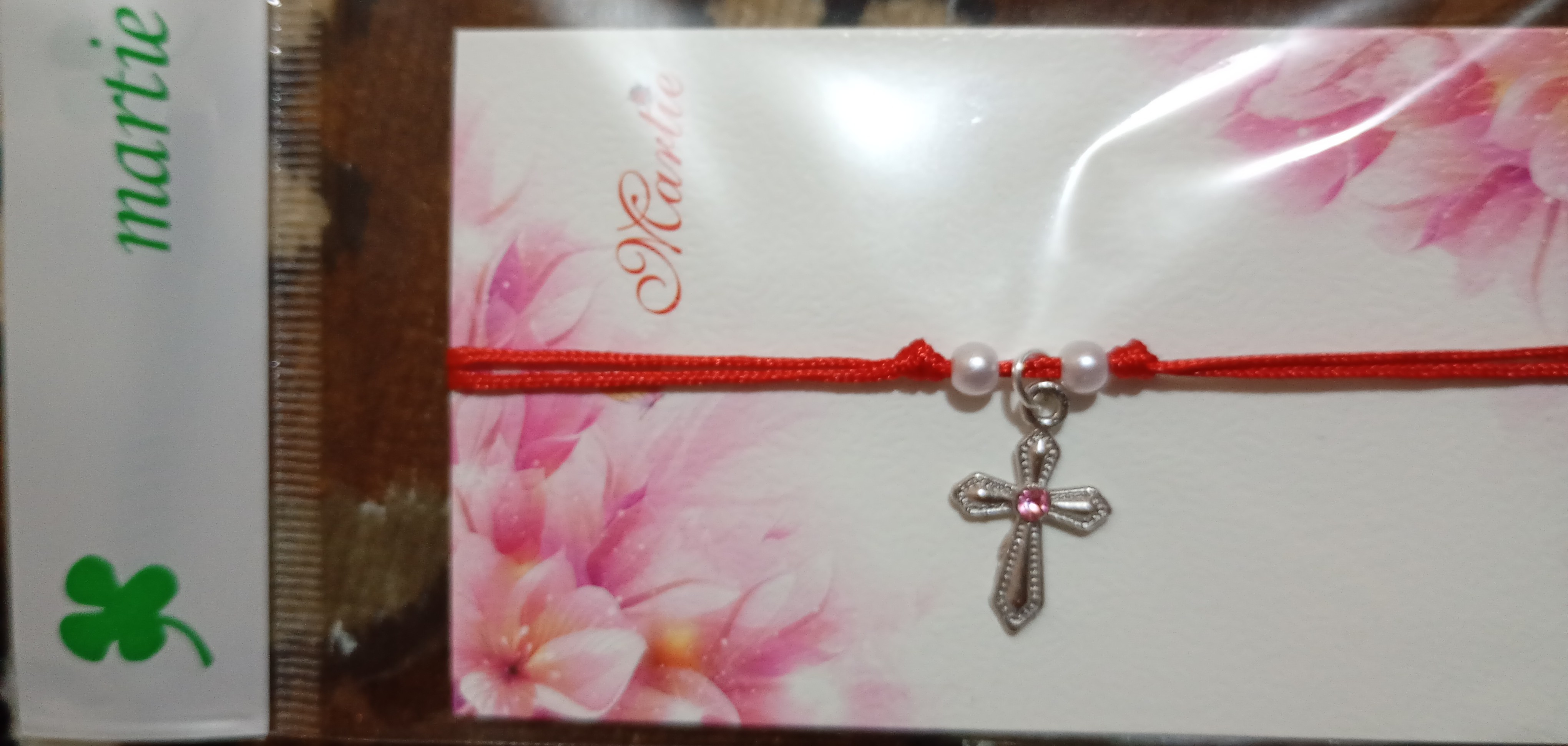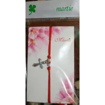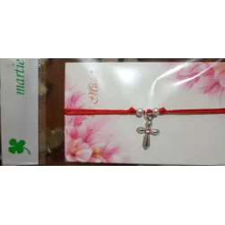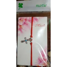 Brățară împletită,cu cruciuliță și pietricica in trei variante: albastru,alb și roz.