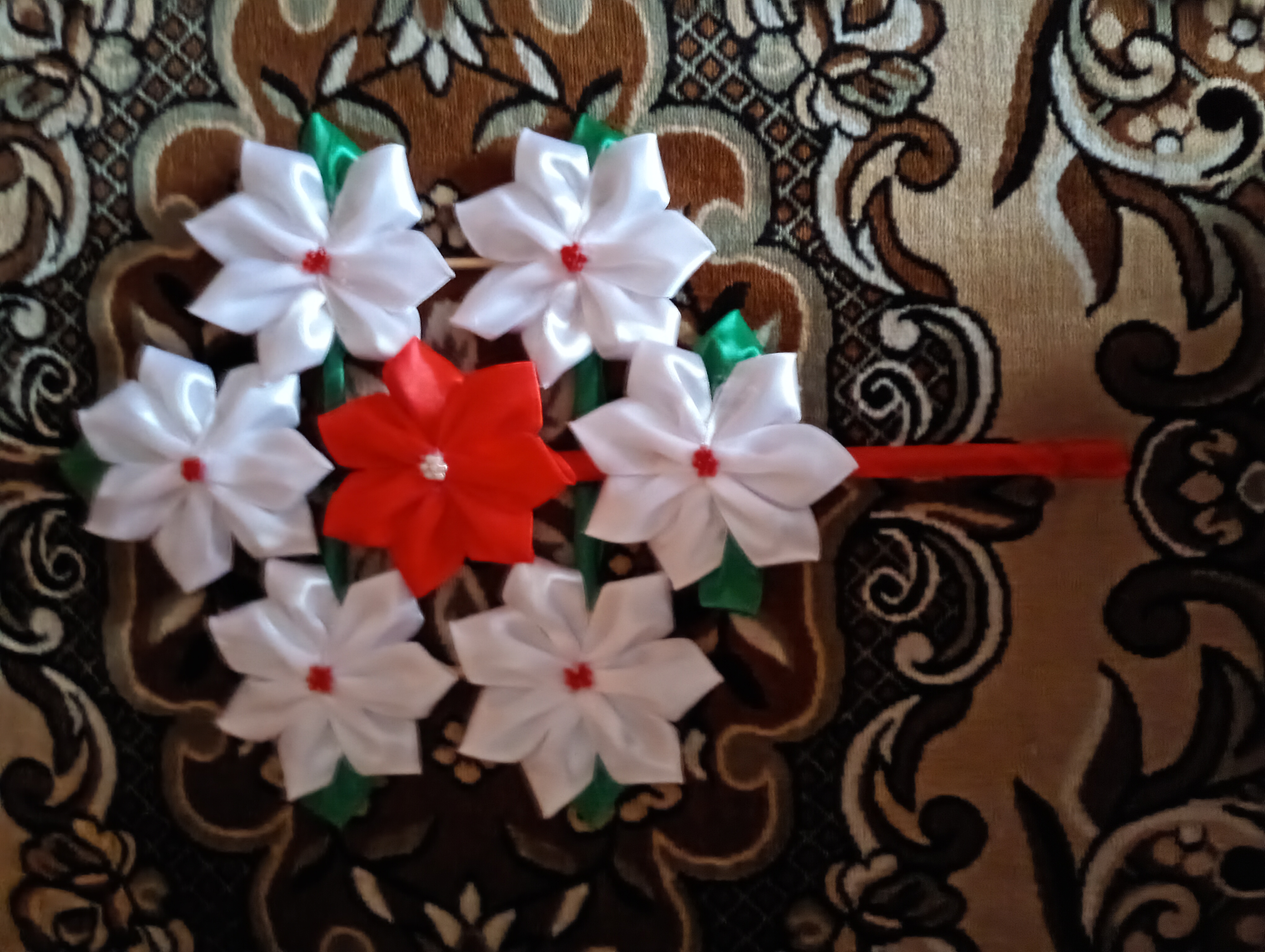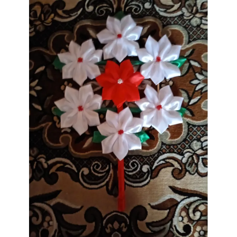 Sorcova confecționată din lemn, sârmă și flori din satin și margele