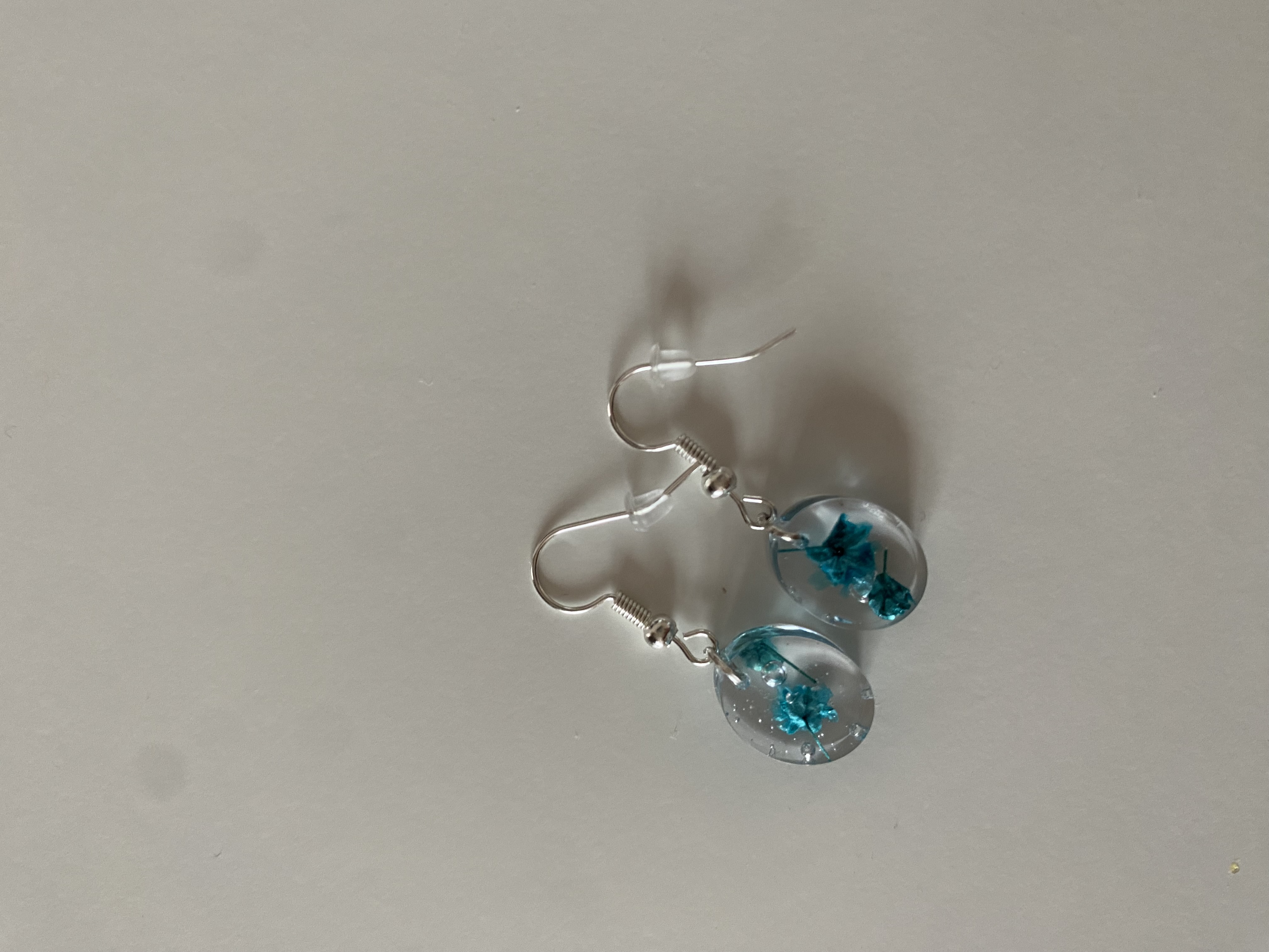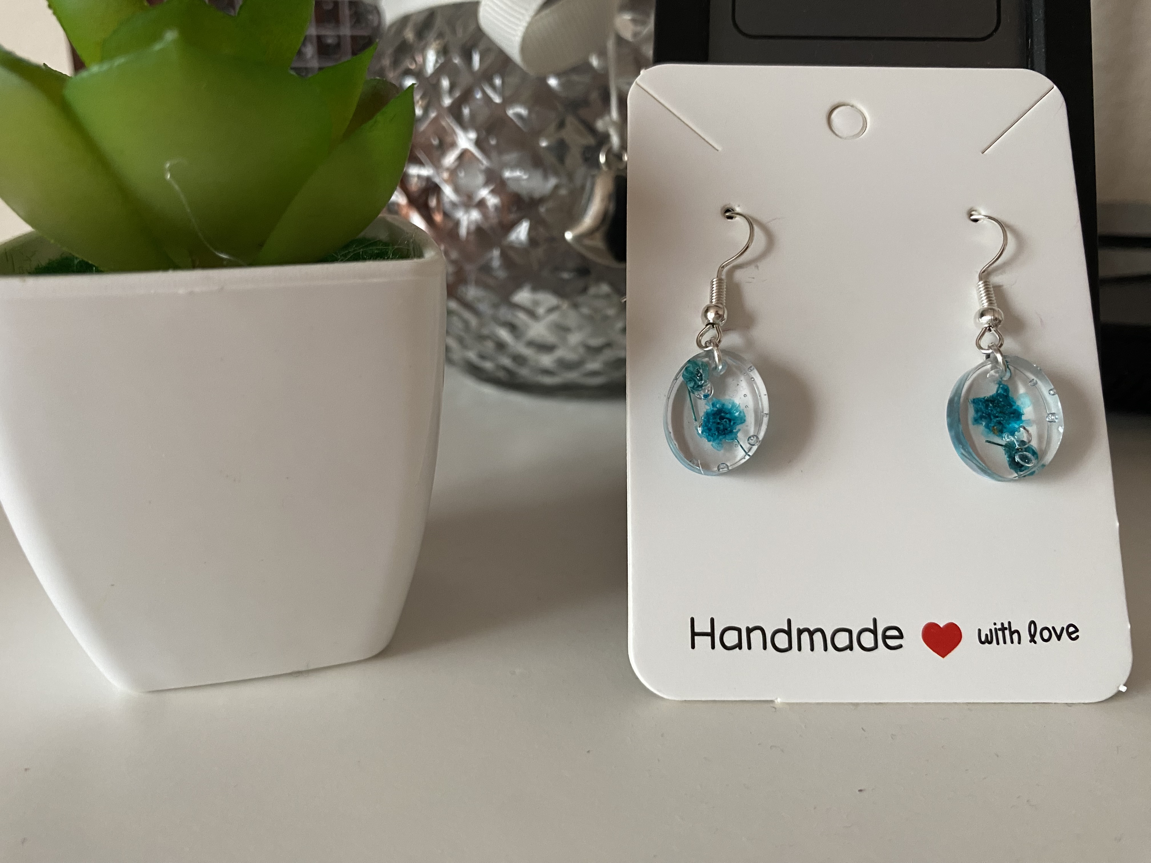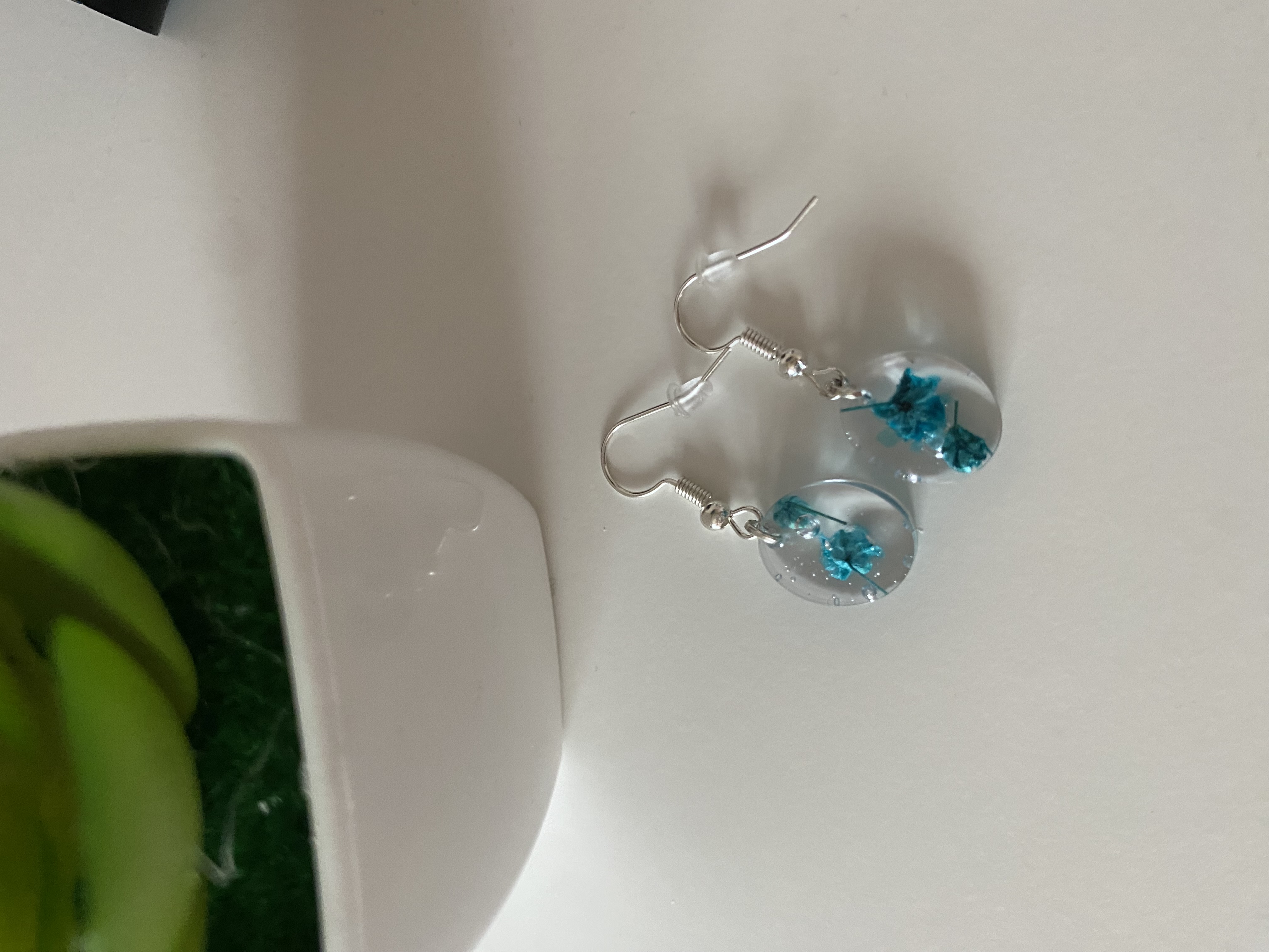 Acești cercei mici din rășină albastră se evidențiază prin designul lor simplu și rafinat. Nuanța plăcută de albastru oferă un aer proaspăt și liniștit, fiind ușor de asortat cu diverse ținute, de la cele casual la cele elegante. Dimensiunea redusă îi face ideali pentru purtare zilnică, oferind confort pe tot parcursul zilei.