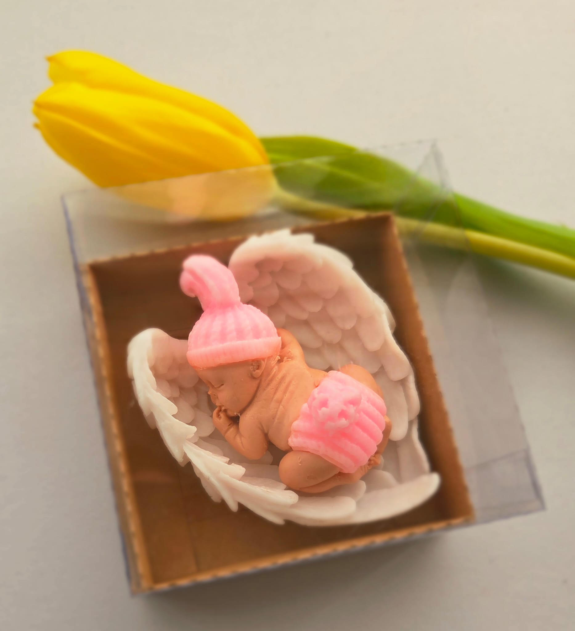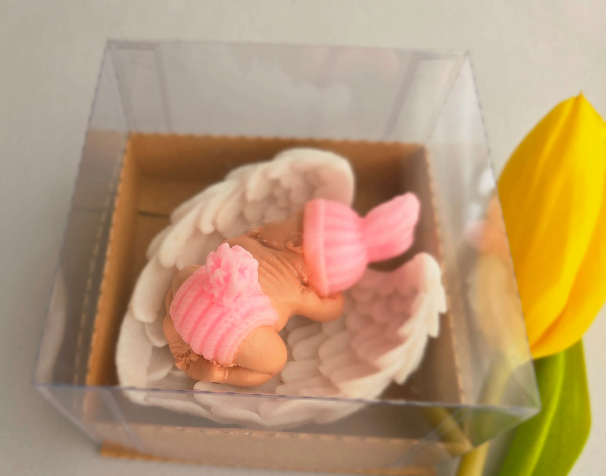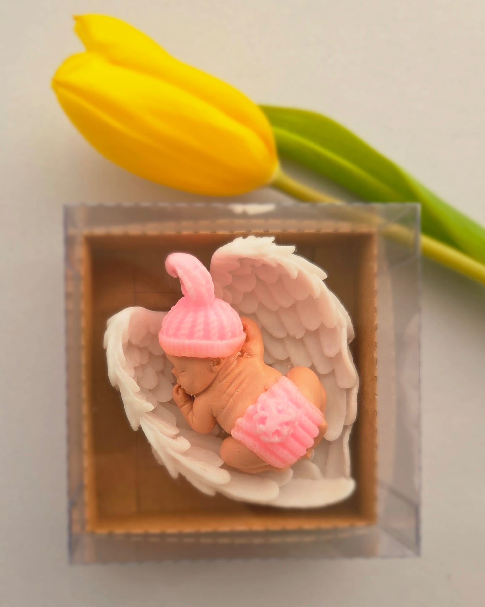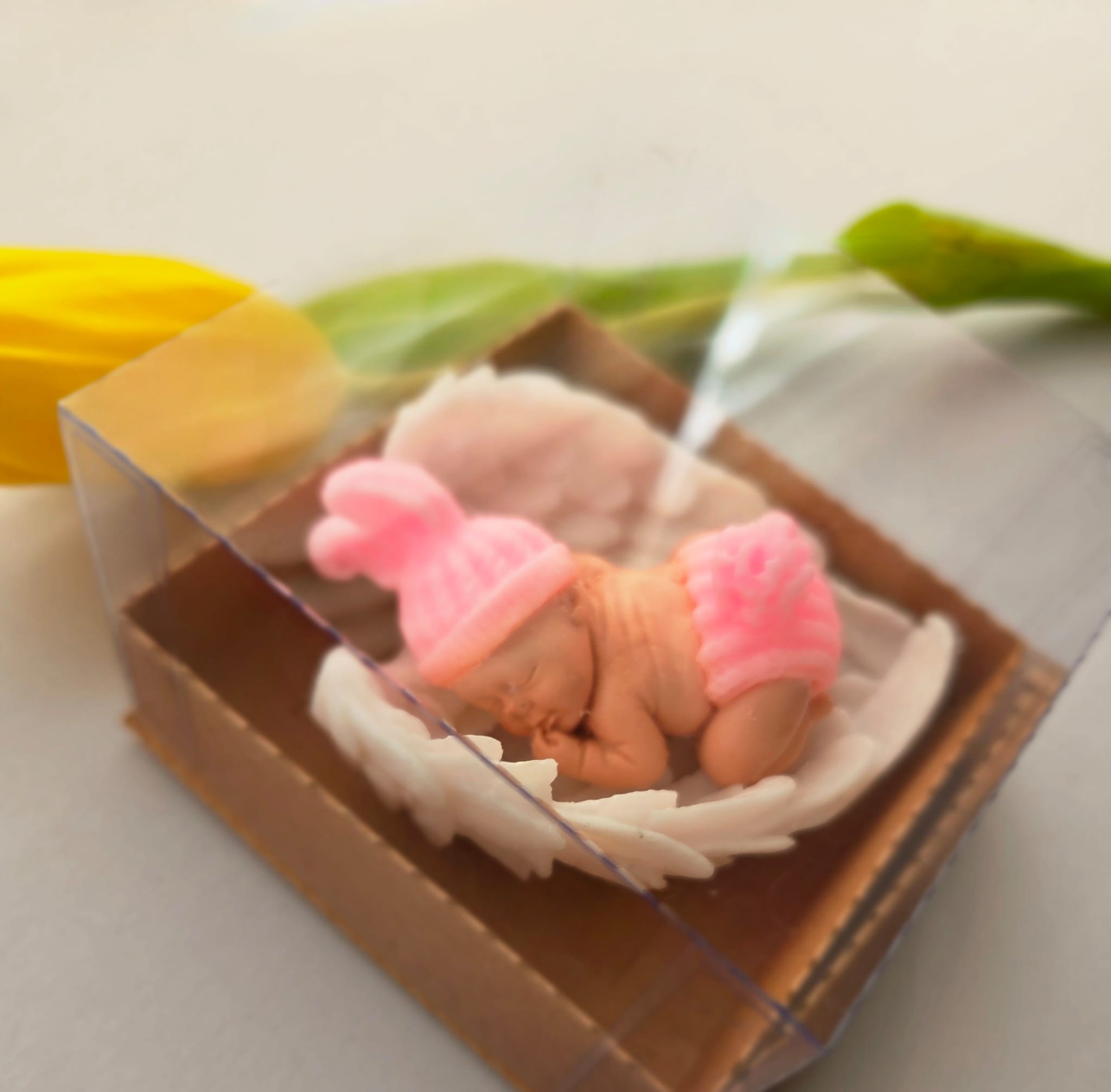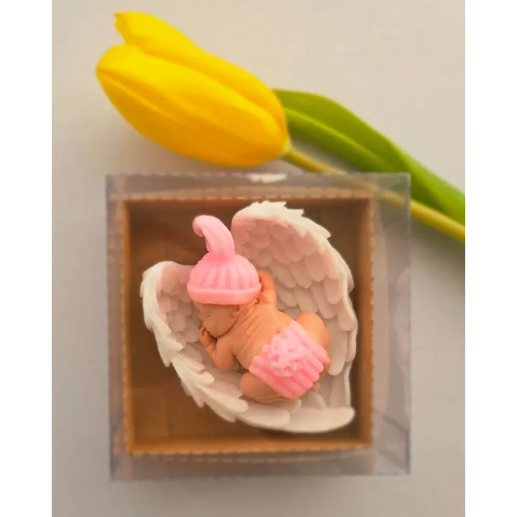Adăugați un strop de drăgălășenie și eleganță evenimentului special al micuțului dumneavoastră cu această marturie de botez unică! Confecționată manual din sapun natural de înaltă calitate, această figurină adorabilă reprezintă un bebelus pe aripioare albe, simbolizând puritatea și bucuria noii vieți.