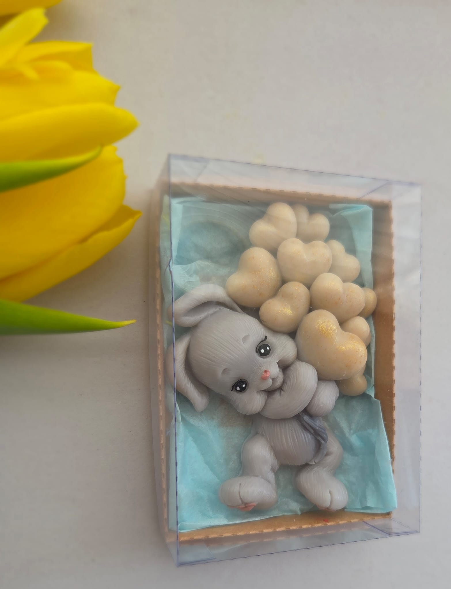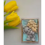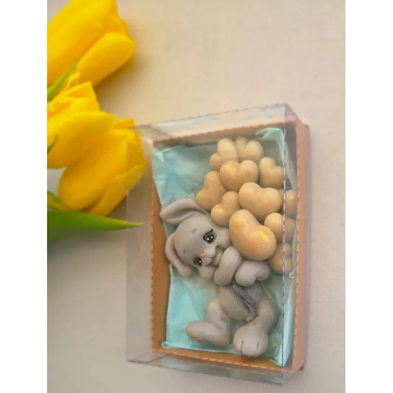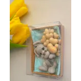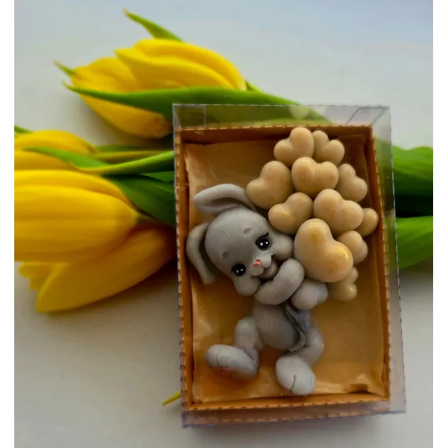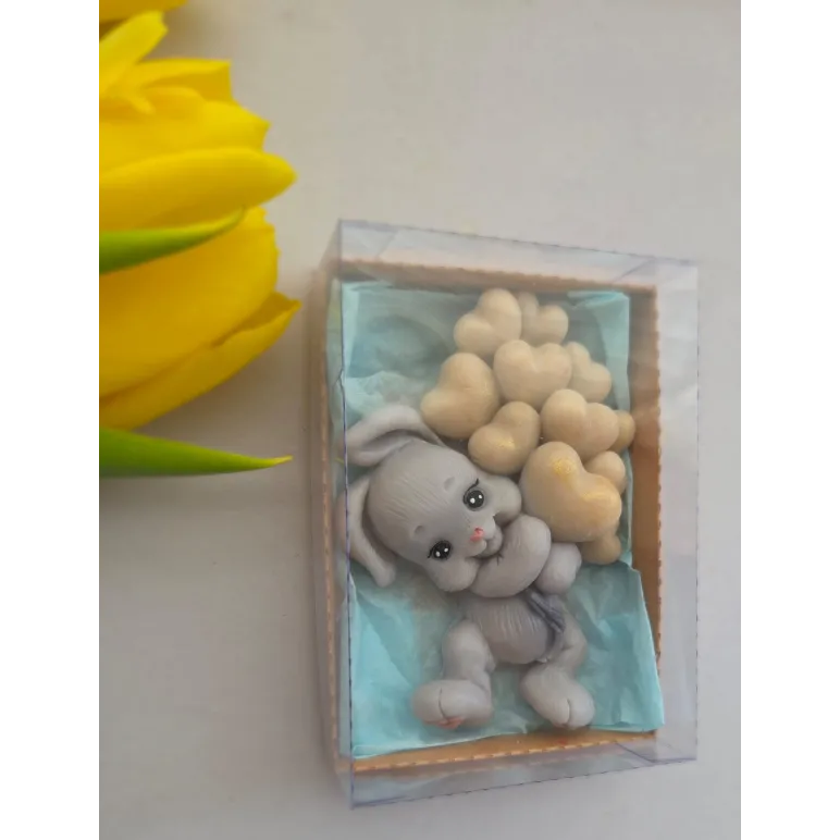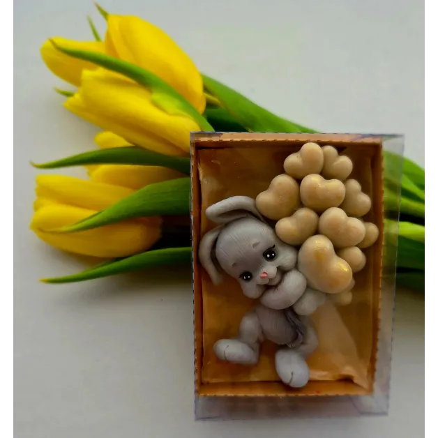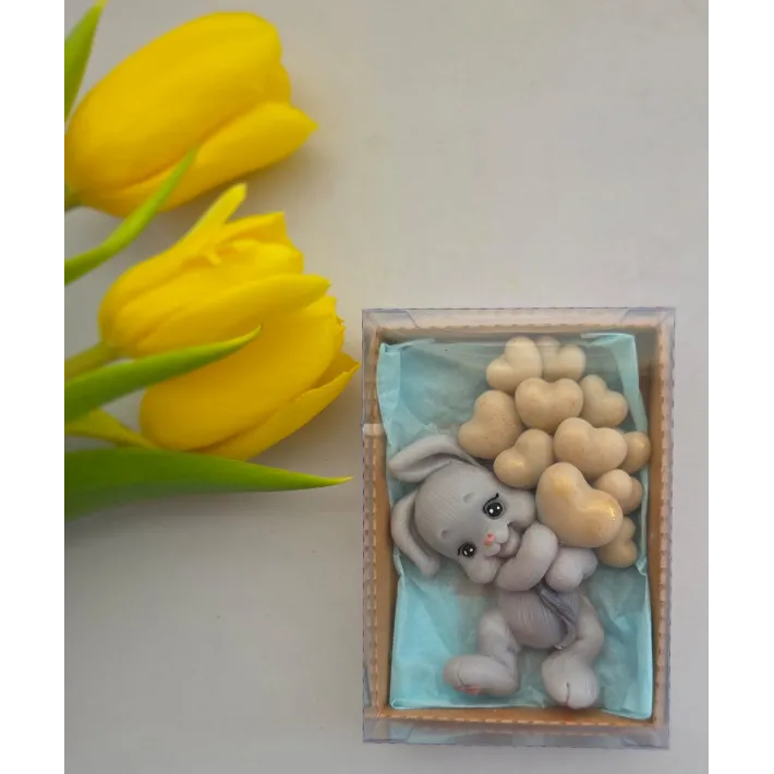 Adăugați un strop de drăgălășenie și eleganță evenimentului special al micuțului dumneavoastră cu această marturie de botez unică! Confecționată manual din sapun natural de înaltă calitate, această figurină adorabilă reprezintă un iepuraș simpatic care ține în brațe un buchet de baloane, simbolizând puritatea și bucuria noii vieți.