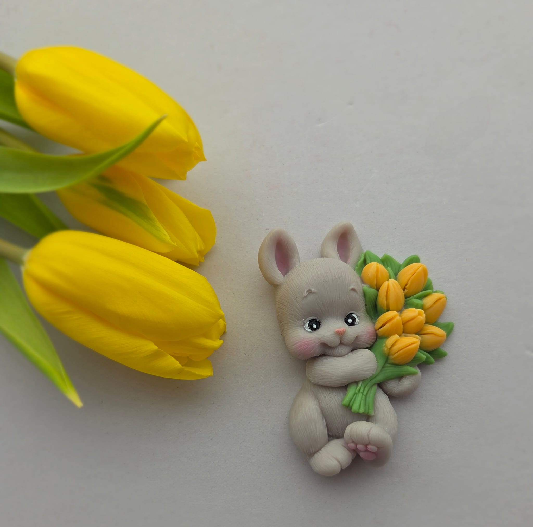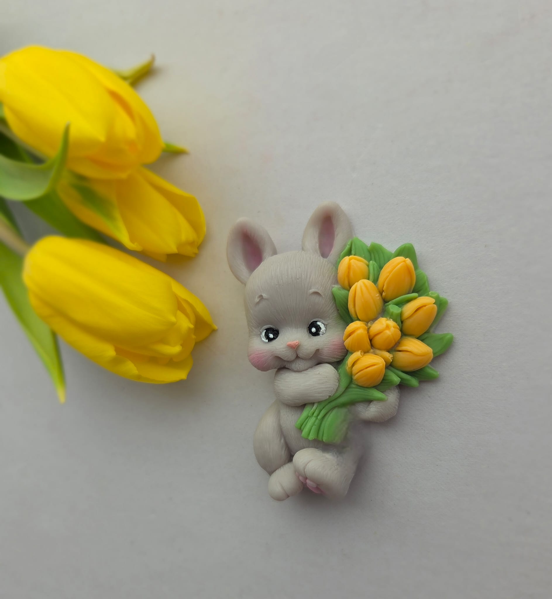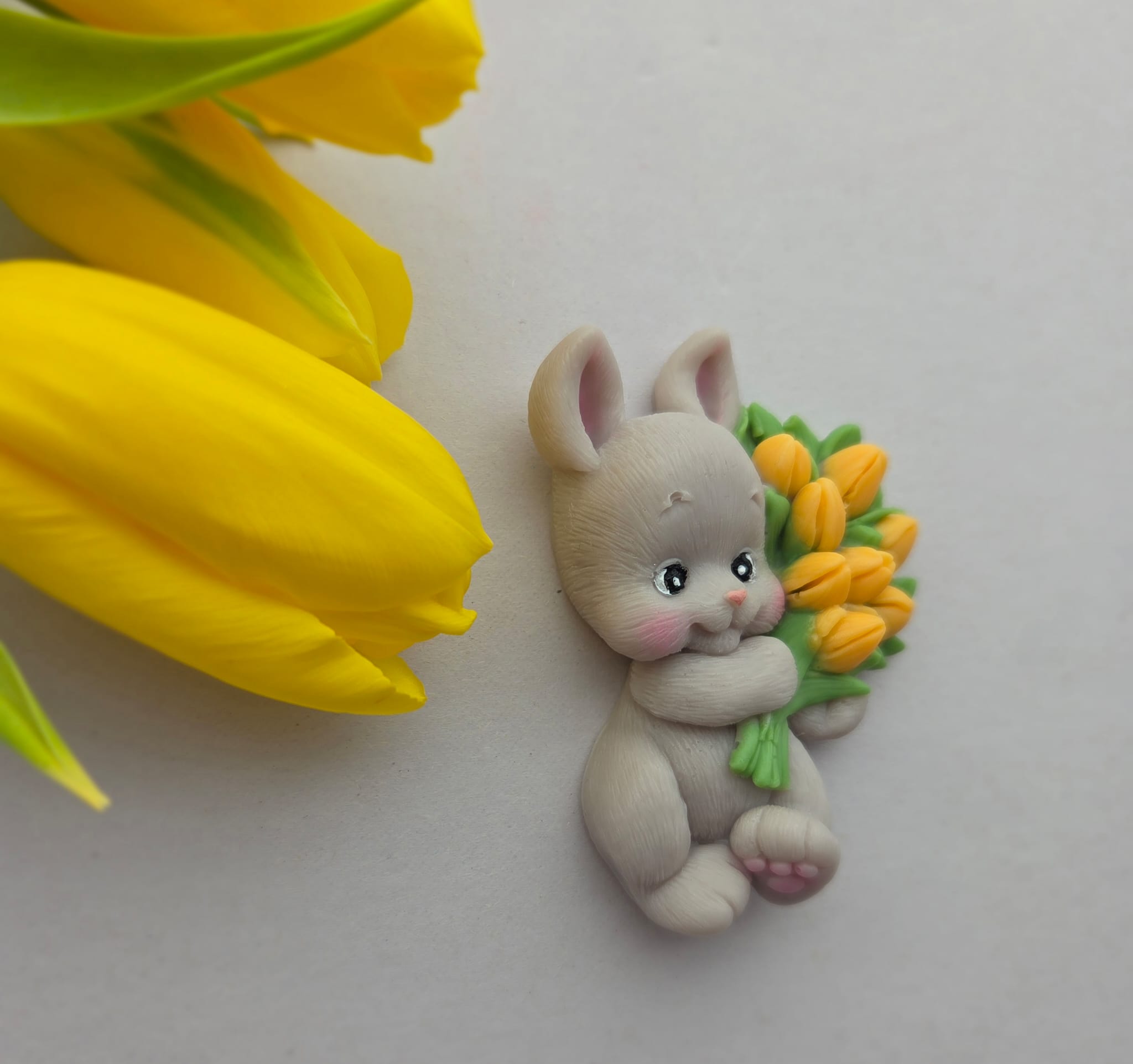 Marturie botez din sapun, in forma de iepuras cu lalele