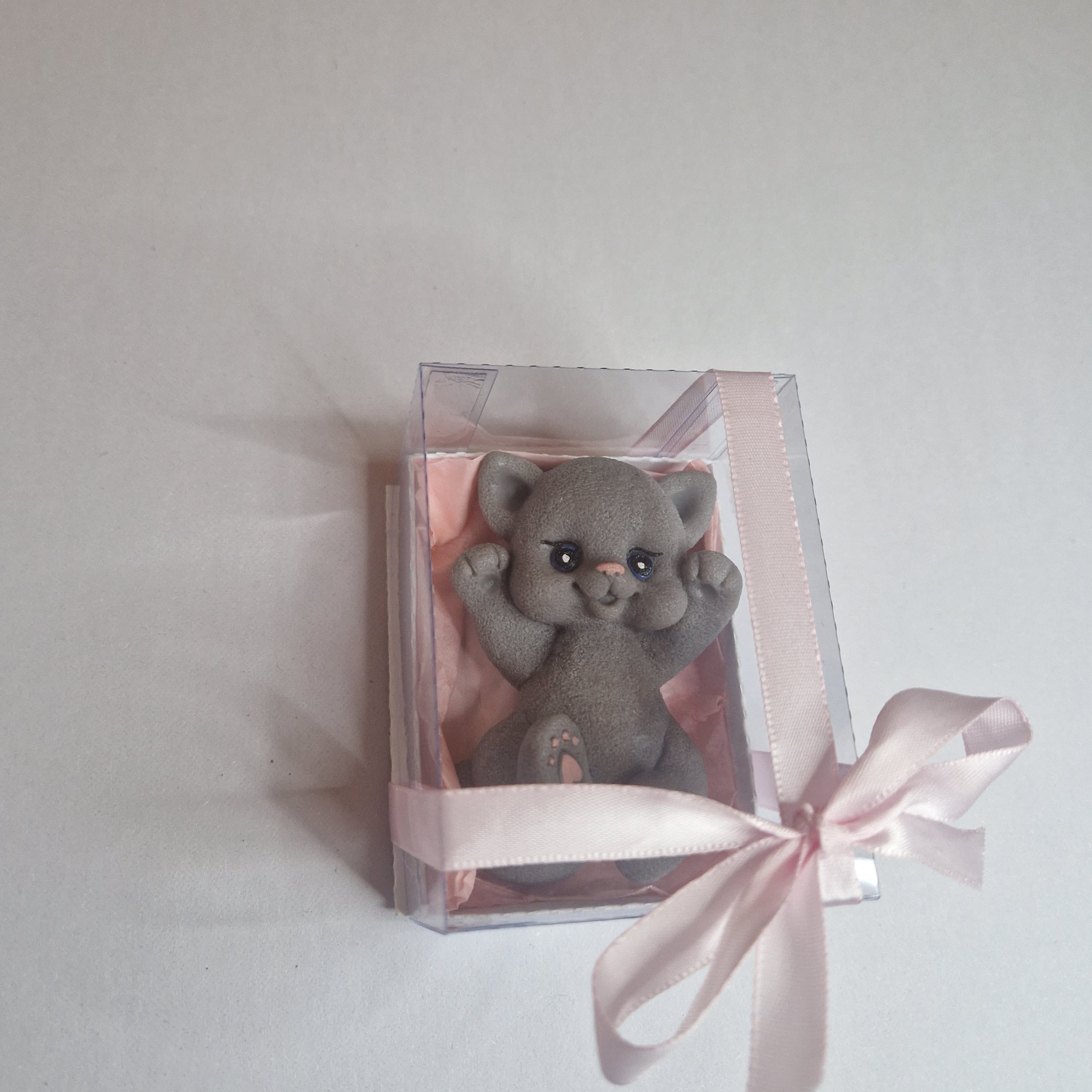 O mărturie delicată care va impresiona fiecare invitat. Aceasta pisicuta adorabila din săpun parfumat este creata special pentru a transforma ziua botezului într-o amintire elegantă și de neuitat.