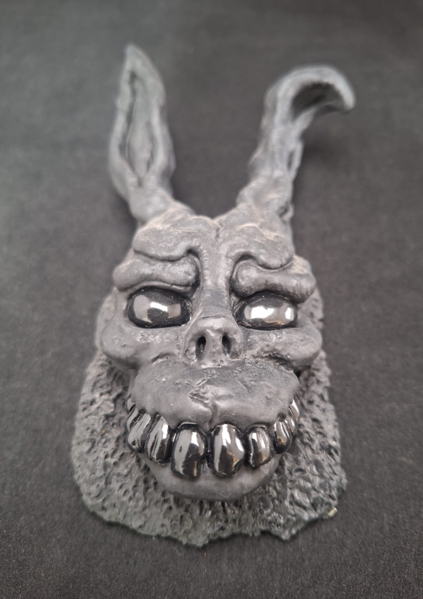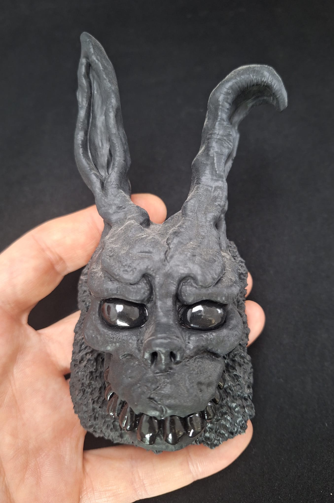 Piesa reprezintă o interpretare artistică originală a unui iepure grotesc, cu trăsături expresive, texturi organice și detalii sculpturale accentuate. Fiecare element este modelat manual, punând accent pe expresie, volum și contrast între suprafețele mate și lucioase.