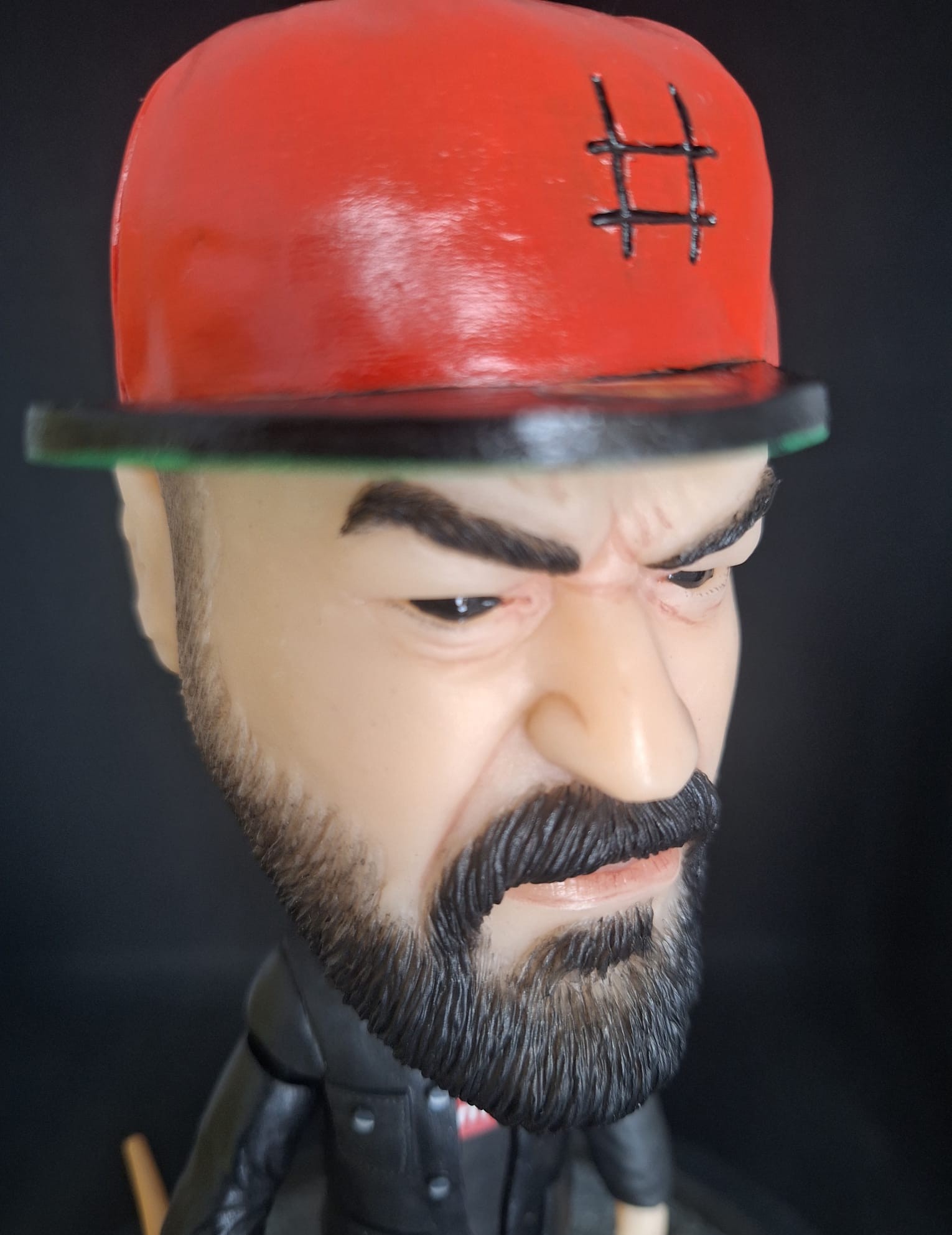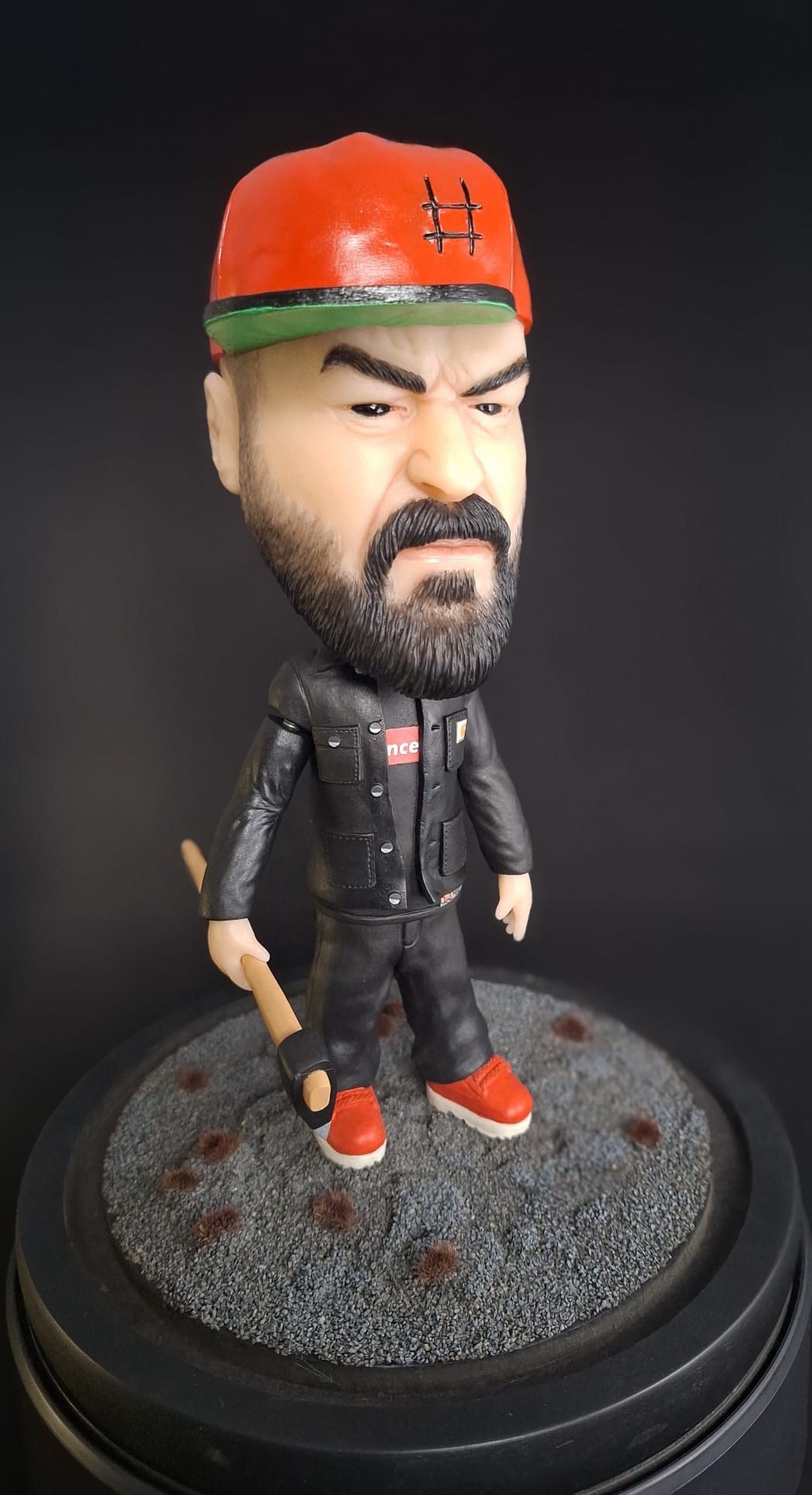 Această figurină sculpturală este o interpretare artistică originală, inspirată de personajul „Iobagg”, interpretat de Codin Pop în clipul „După geamandură!”. Lucrarea nu este o reproducere fidelă 1:1, ci o transpunere stilizată, cu accente caricaturale, care surprinde atitudinea, expresia și energia personajului într-o formă tridimensională cu impact vizual puternic.