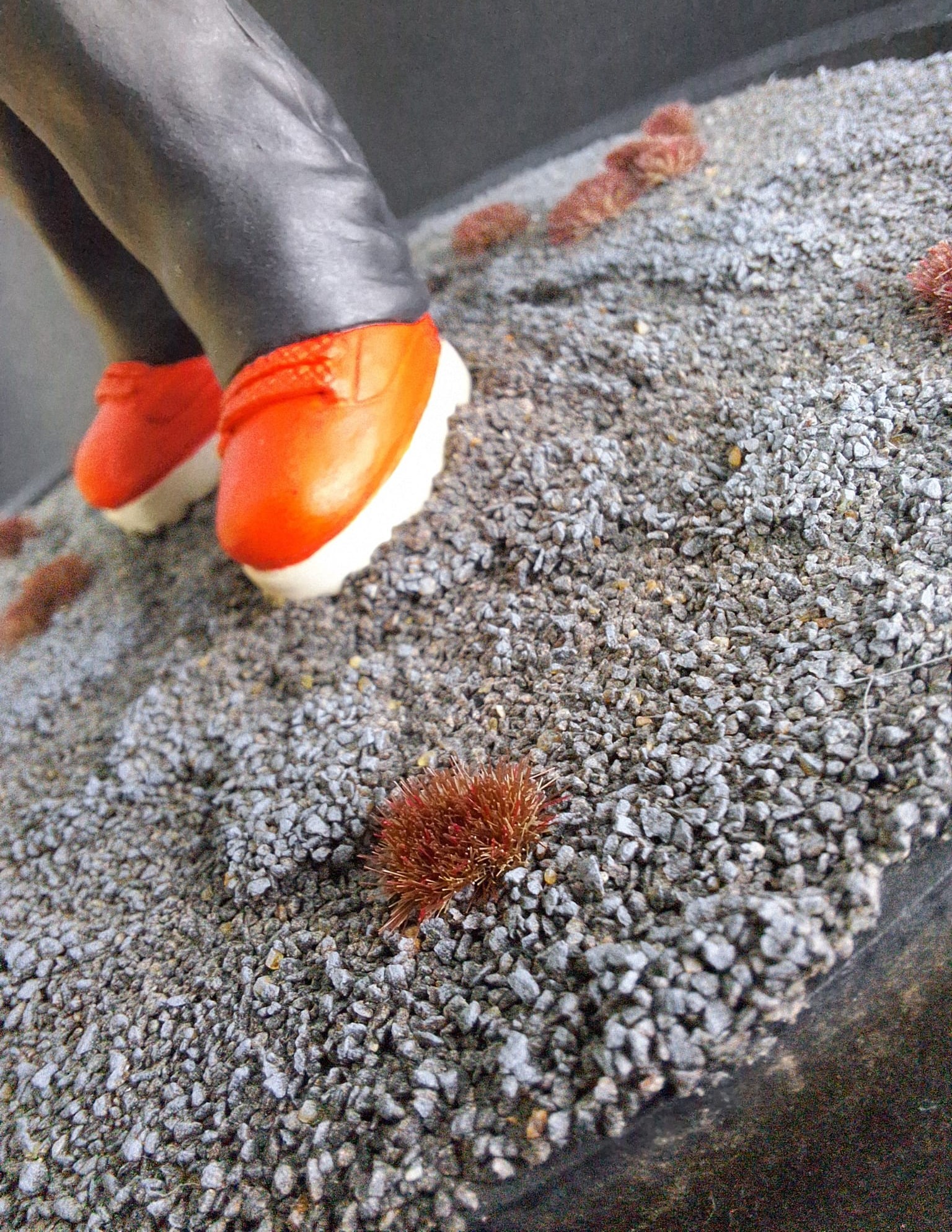 Materiale: clei polimeric, rășină poliuretanică, rocă bazaltică, arcuri, acrilice