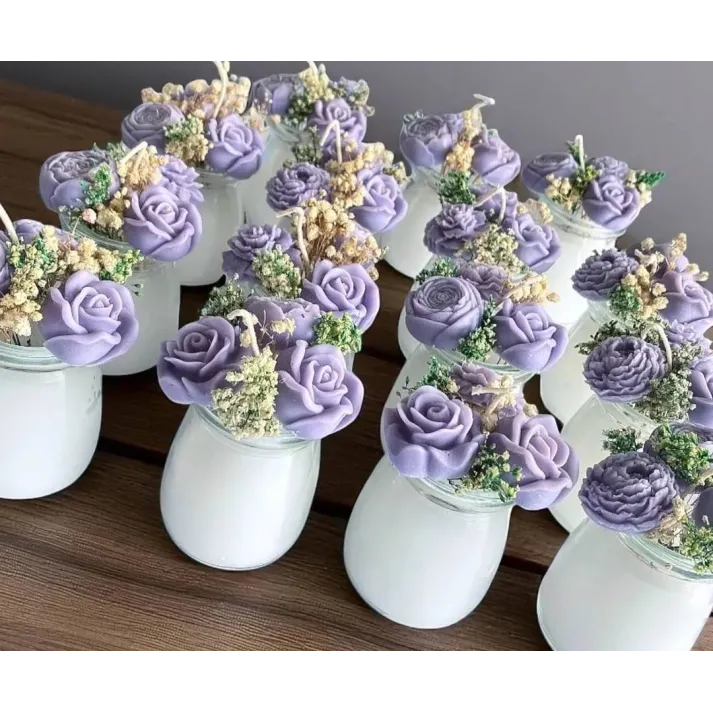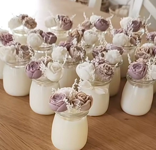 Lumânare parfumată din ceară de soia, turnată într-un borcănel din sticlă.Borcănașele ușor de transportat și foarte versatile, căci pot fi personalizate în multe feluri și cum un minim de resurse pentru a se potrivi atmosferei pe care vrei să o imprimi evenimentului tău.Parfumul lumânării îl poți alege în funcție de tematica evenimentului, la fel si decorarea recipientului. Putem să colorăm ceara în nuanța pe care ți-o dorești sau să adăugăm sclipici – opțiune gratuită.Putem să decorăm vasele cu etichete (pe designul furnizat de tine), șnururi, panglici, flori din hârtie figurine, fire de lavandă/spice de grâu/flori din bumbac ș.a. – opțiune contra cost.Te rugăm să ne transmiți dorințele tale pe d.artdecoor@gmail.com, sau pe whatsapp/ telefon : 0771 314 609 și ne vom asigura că totul iese spectaculos.