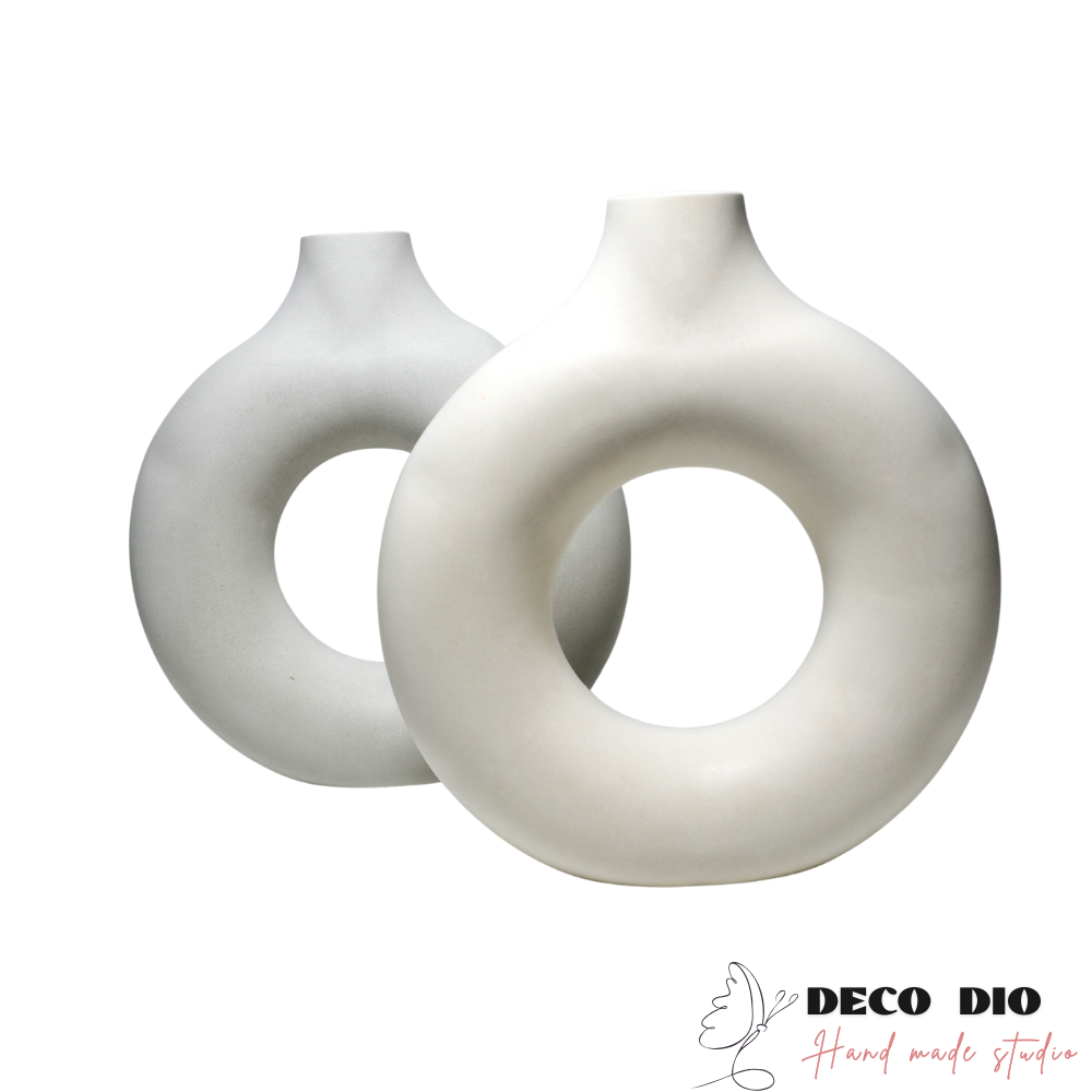 Cu un design minimalist și un finisaj mat, vazele au forma distinctivă de cerc, având un gol central, ce le conferă un aspect inedit și artistic. Sunt perfecte pentru a completa orice stil de decor, de la cel contemporan la cel mai clasic.