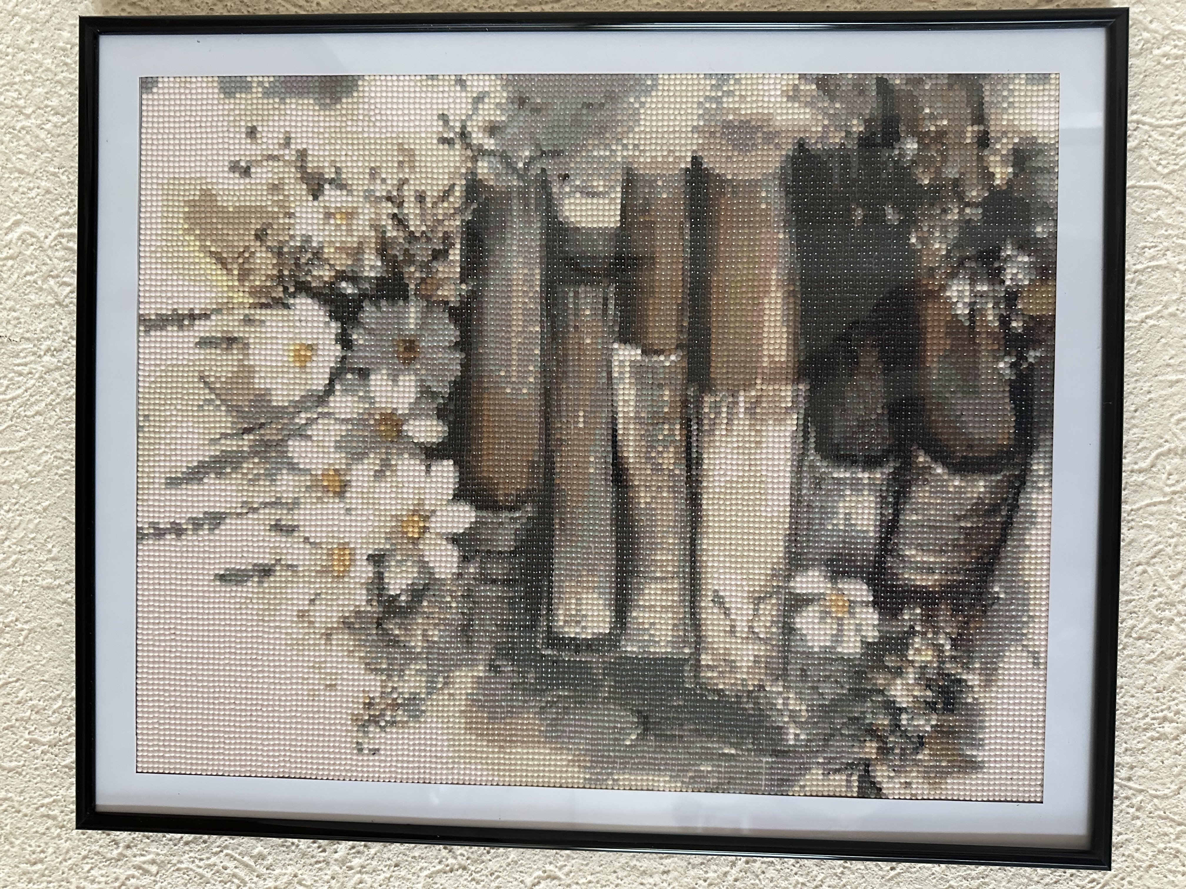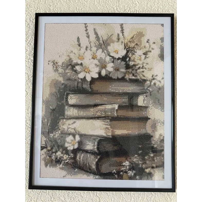 Acest tablou elegant,realizat in stil mozaic(diamond painting),surprinde o compozitie rafinata cu carti vechi suprapuse,decorat cu flori delicate.Paleta de culori neutre,in tonuri calde de bej,crem si maro,ofera un aspect vintage si linistitor,potrivit pentru orice spatiu.Desingnul transmite calm,nostalgie si pasiune pentru lectura,fiind ideal pentru living,dormitor,birou sau chiar spatii de tip biblioteca.Tabloul este de marime 40/50.