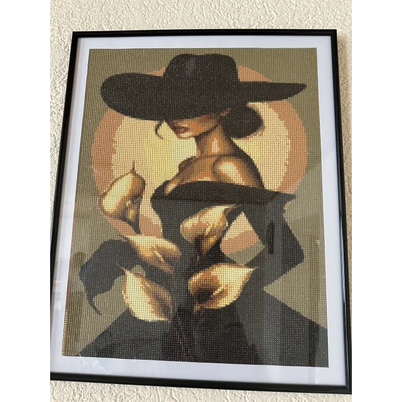 O piesa artistica deosebita,surprinde silueta unei femei elegante,cu palarie rafinata,tinand un buchet delicat de flori de cala.Compozitia stilizata imbina armonios feminitatea,misterul si bunul gust,rezultand un decor sofisticat si atemporal.Inramat elegant si pregatit pentru expunere,tabloul este ideal pentru interioare moderne,chic sau clasic,adaugand un plus de stil si personalitate oricarui spatiu.Tabloul are dimensiunea de 40/50.