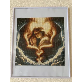 Tabloul ilustreeeaza un cuplu imbratisat, protejat de doua maini care formeaza o inima in jurul lor.Culorile calde si lumina aurie transmite iubire,liniste si siguranta.Este un tablou de marime 40/40.