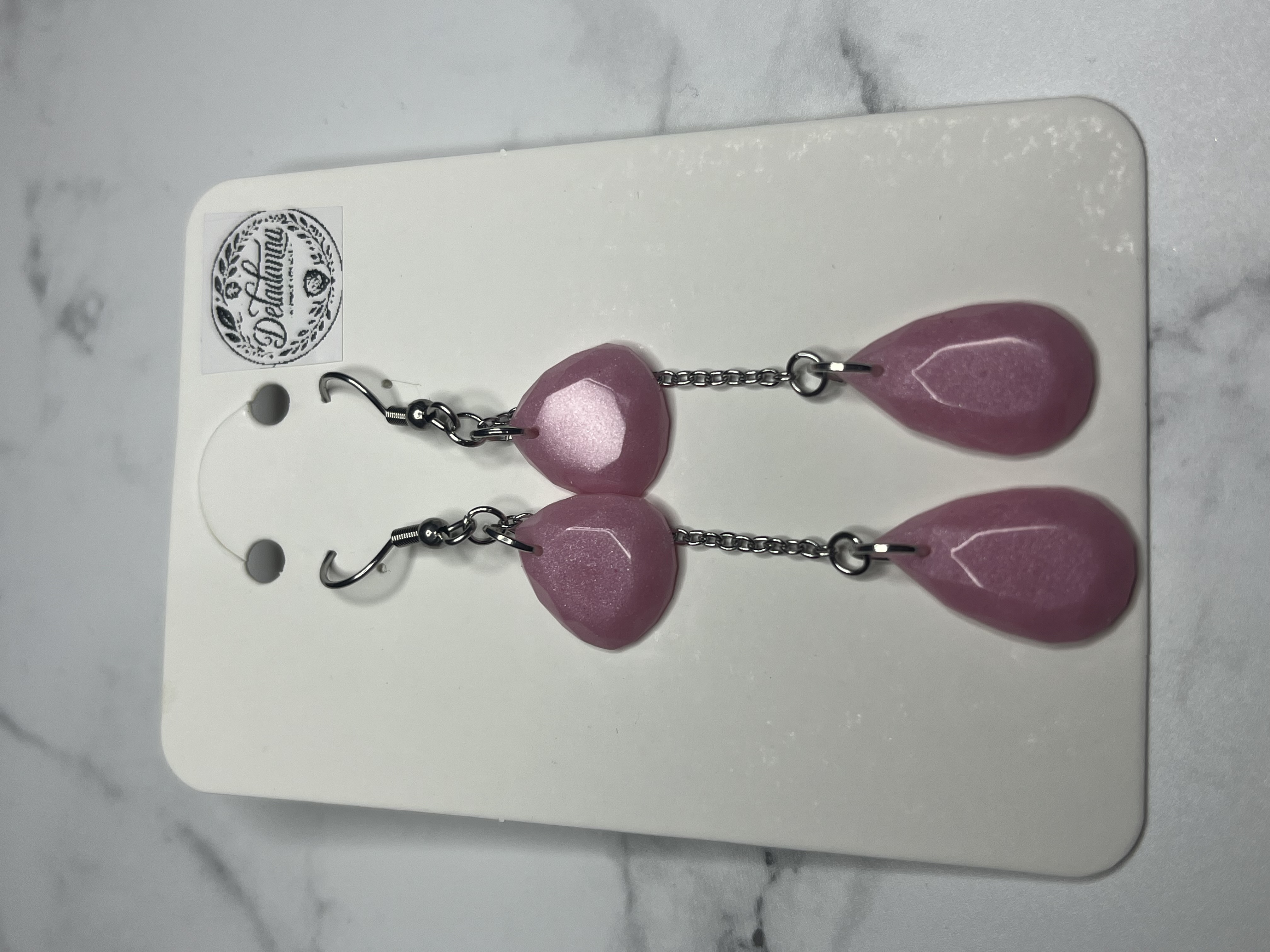 Cercei realizați manual din rășină, în nuanțe delicate și forme feminine, creați pentru a adăuga un accent subtil și elegant oricărei ținute.