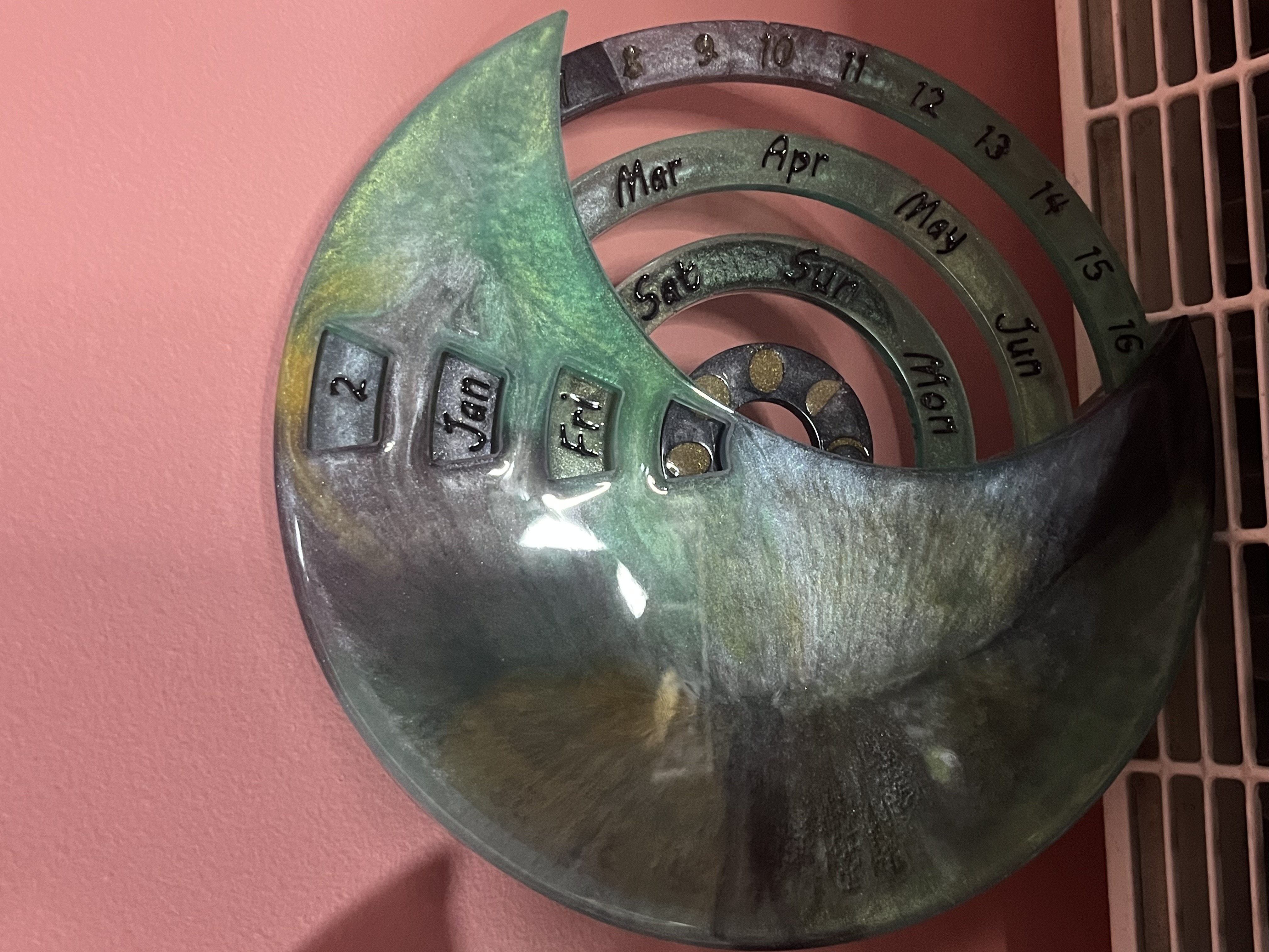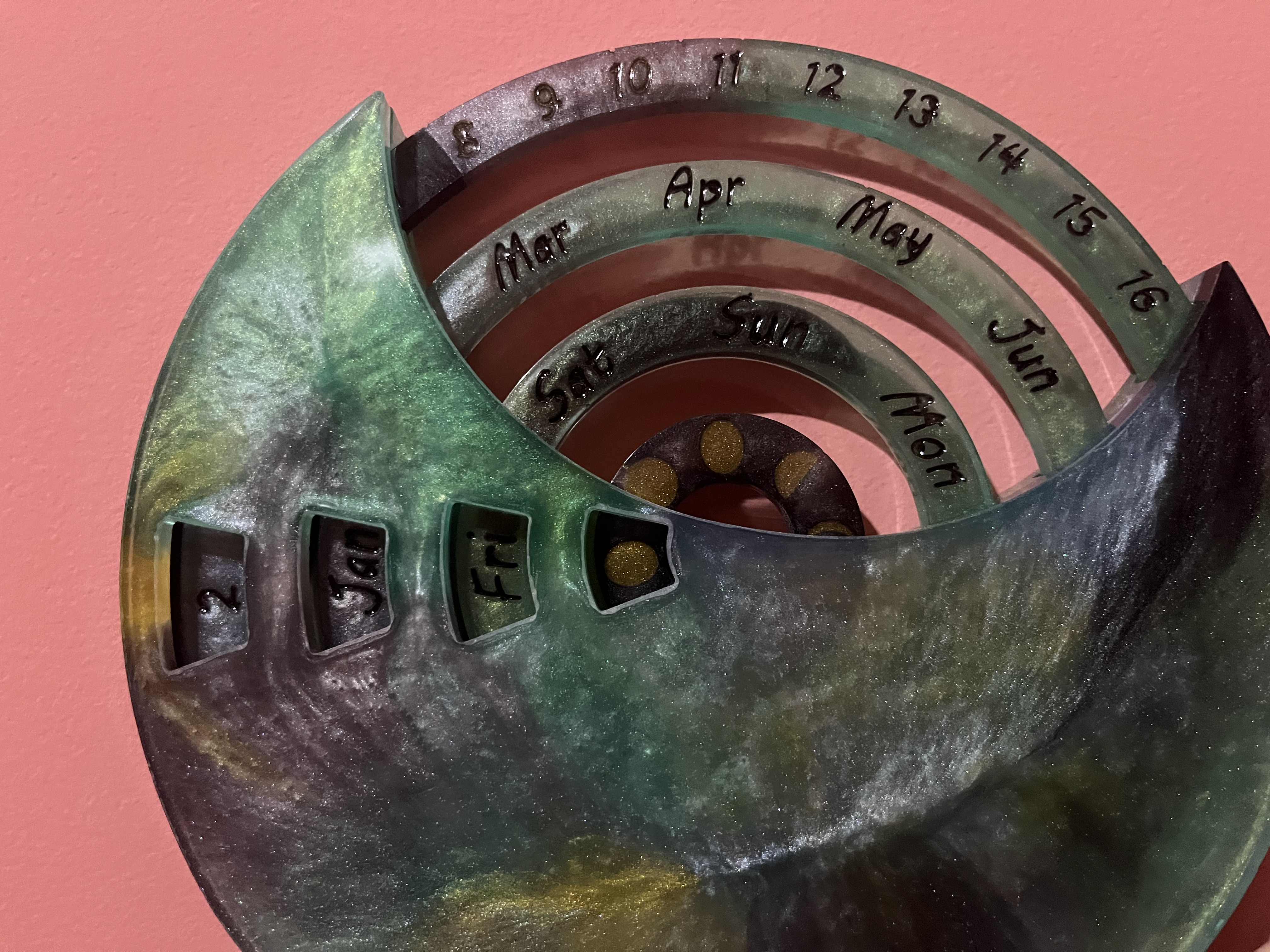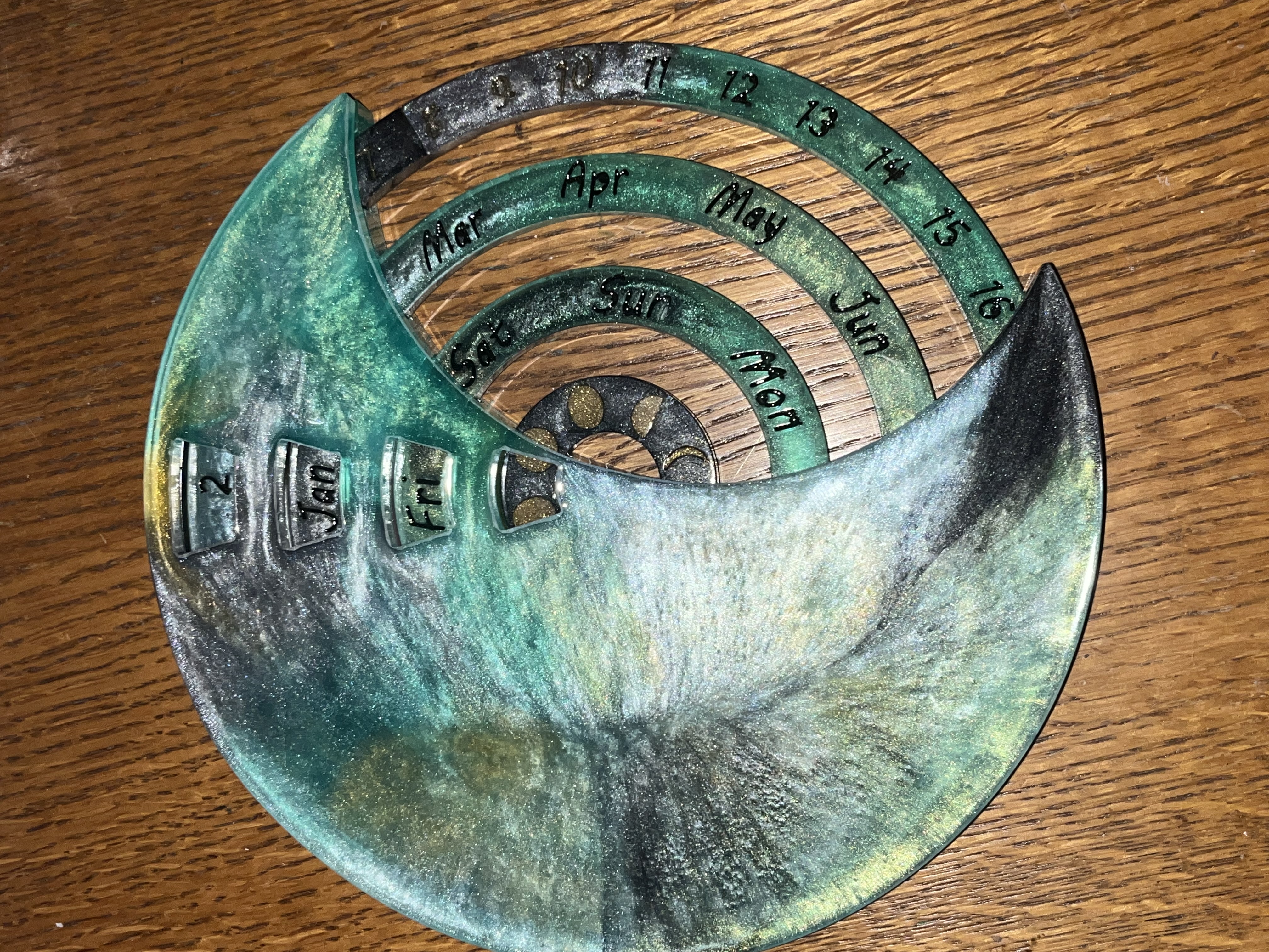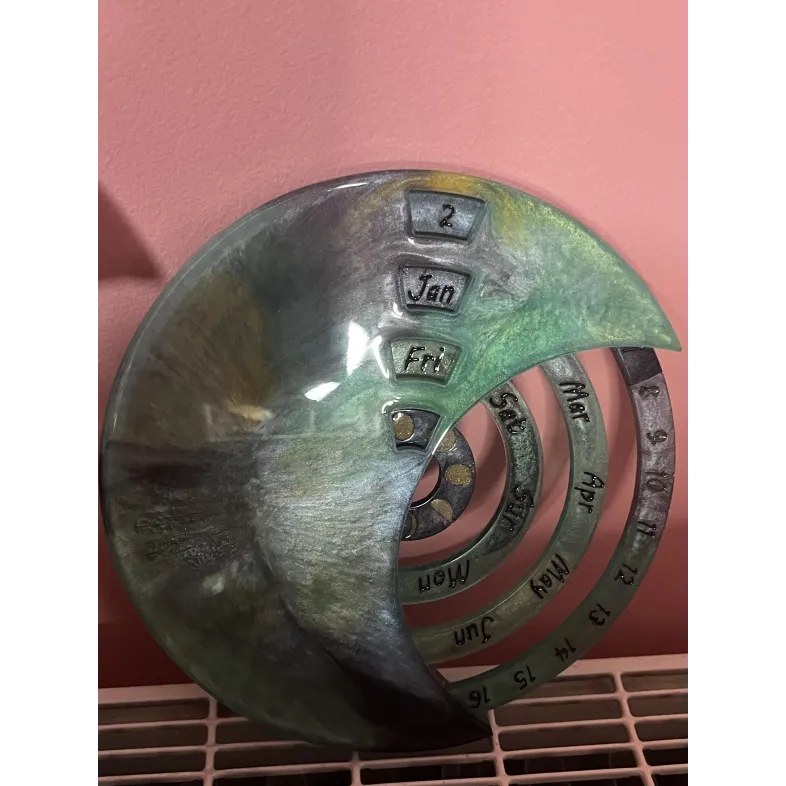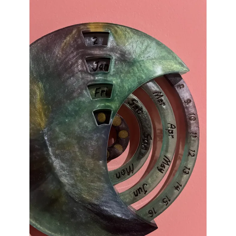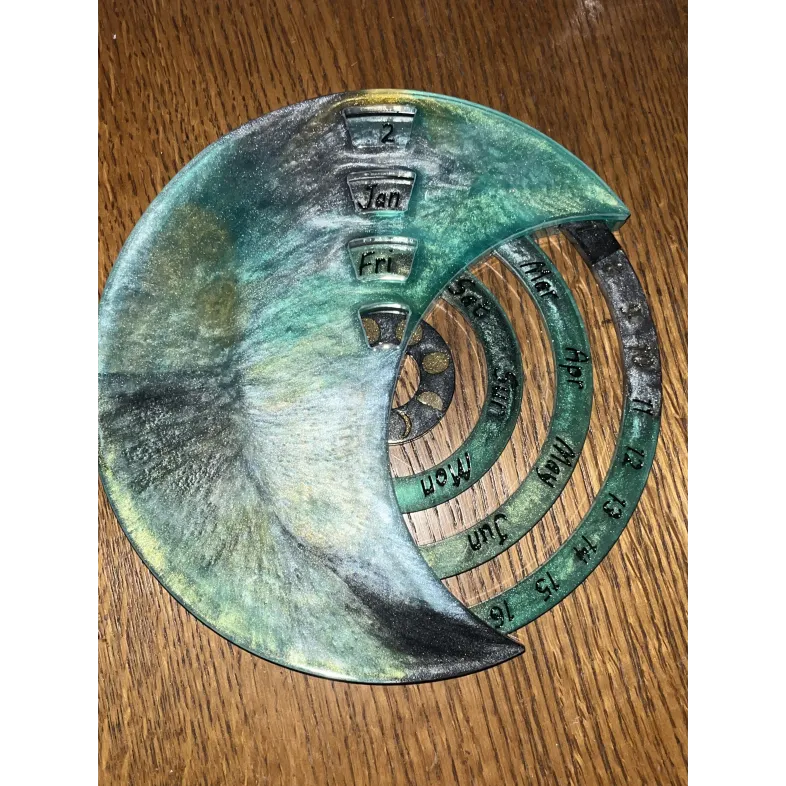 Calendar realizat manual din rășină, conceput pentru a fi folosit an după an.
