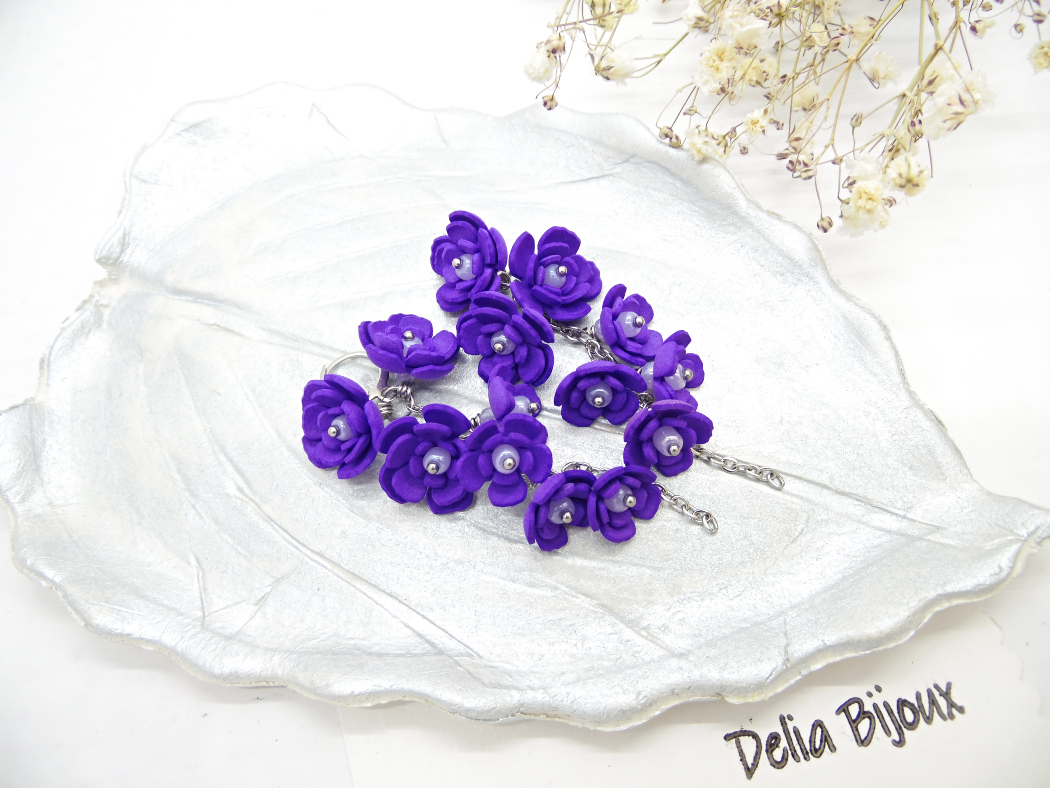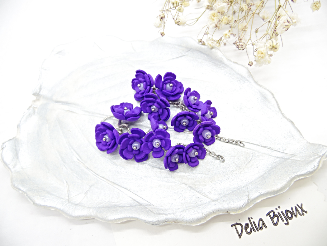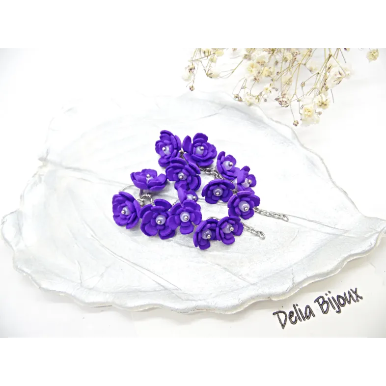 Adaugă un strop de natură și eleganță ținutelor tale cu acești cercei unicat, realizați manual din foamiran mov, modelat cu grijă în formă de flori delicate. Fiecare floare are în mijloc o mărgica de nisip, oferind un plus de rafinament și strălucire discretă.