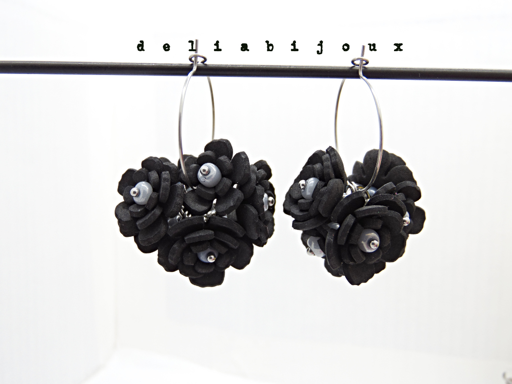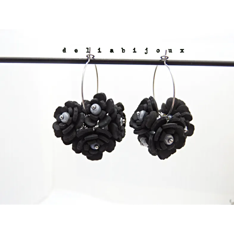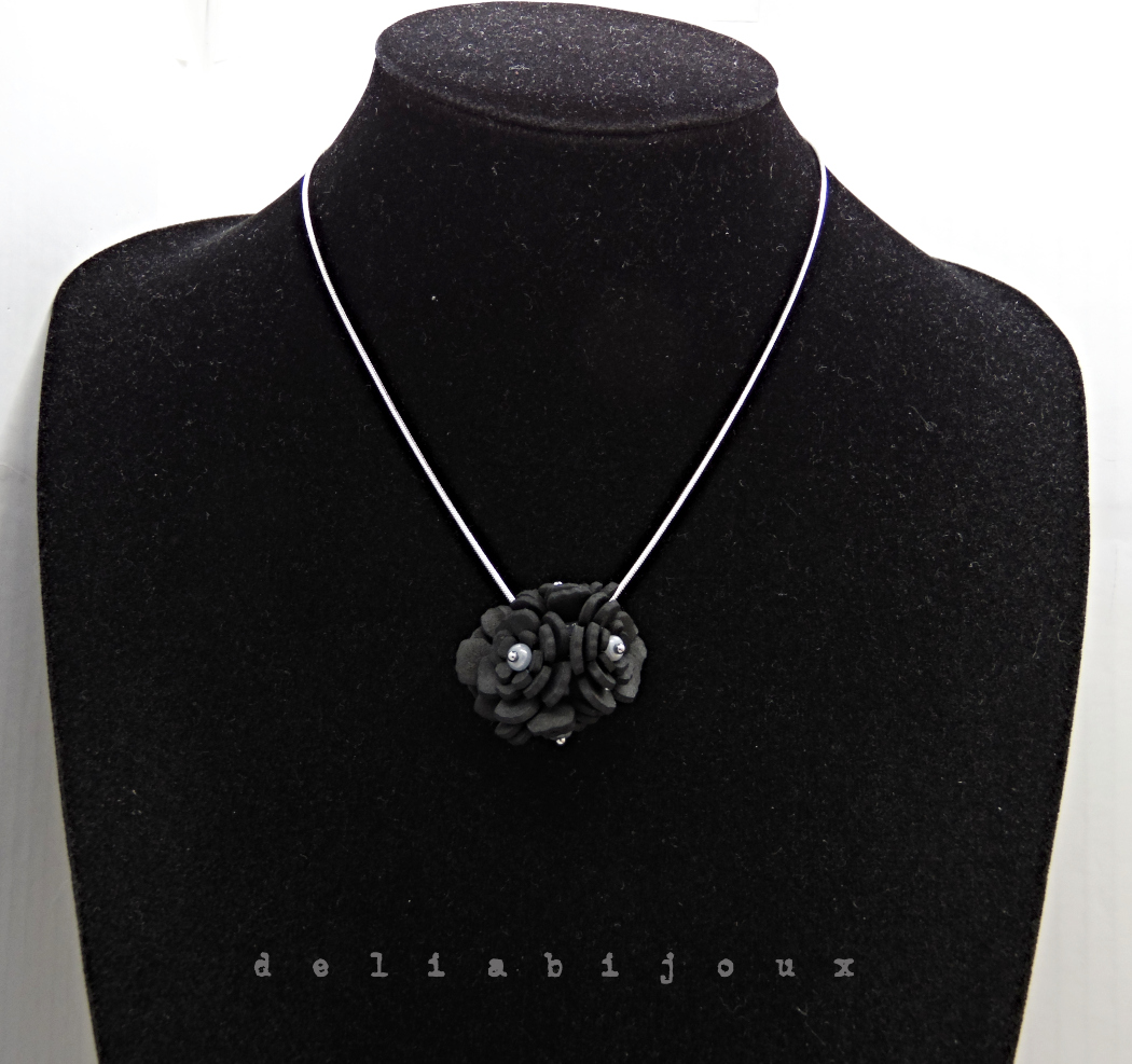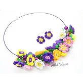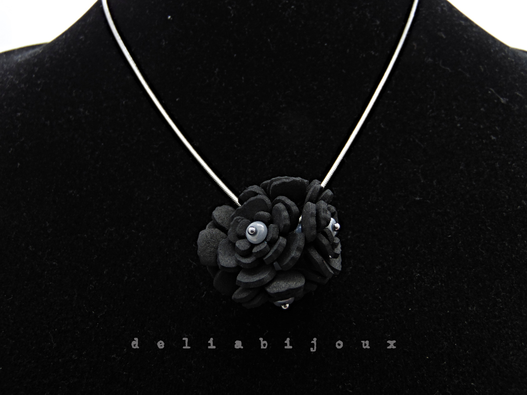 Acest set delicat și sofisticat este realizat manual din foamiran negru, fiecare floare fiind modelată cu grijă pentru a crea buchete elegante și expresive. Cerceii și colierul sunt accesorii statement, ideale pentru a adăuga un aer rafinat și original oricărei ținute.Fiecare floare din set este înfrumusețată în centrul său cu mărgele de nisip gri, adăugând un subtil contrast și un strop de strălucire. Colierul este completat cu un medalion delicat, iar cerceii sunt proiectați pentru a se potrivi perfect, formând un set armonios.Bijuteriile sunt montate pe lanț inoxidabil, rezistent și confortabil pentru purtare zilnică sau ocazii speciale. Acest set handmade este un cadou ideal pentru pasionații de accesorii unice și de efect.Colier statement, realizat din foamiran taiat si modelat manual (diametrul florilor aprox 1.5 cm - 2 cm, florile nu sunt identice), margele de nisip (3 mm), lant de otel inoxidabil (42 cm + 5 cm prelungire) si elemente metalice. Inchidere tip lobster din otel inoxidabil.Cerceii au tortite din otel inoxidabil. Lungimea cerceilor cu tortita - 4.5 cm