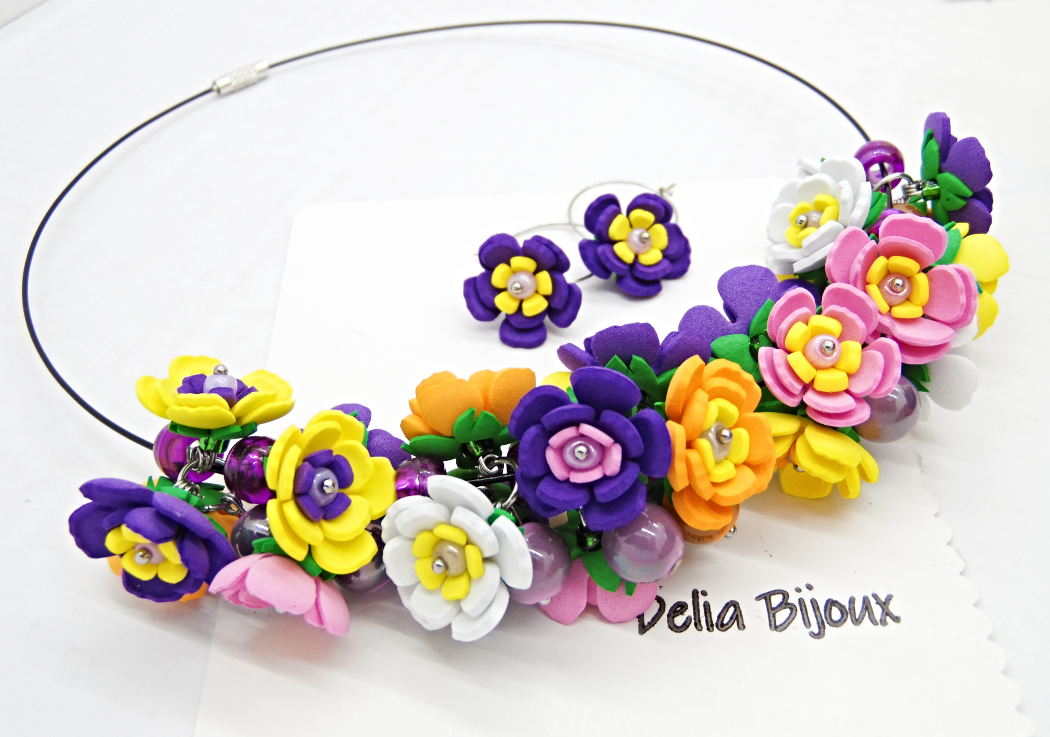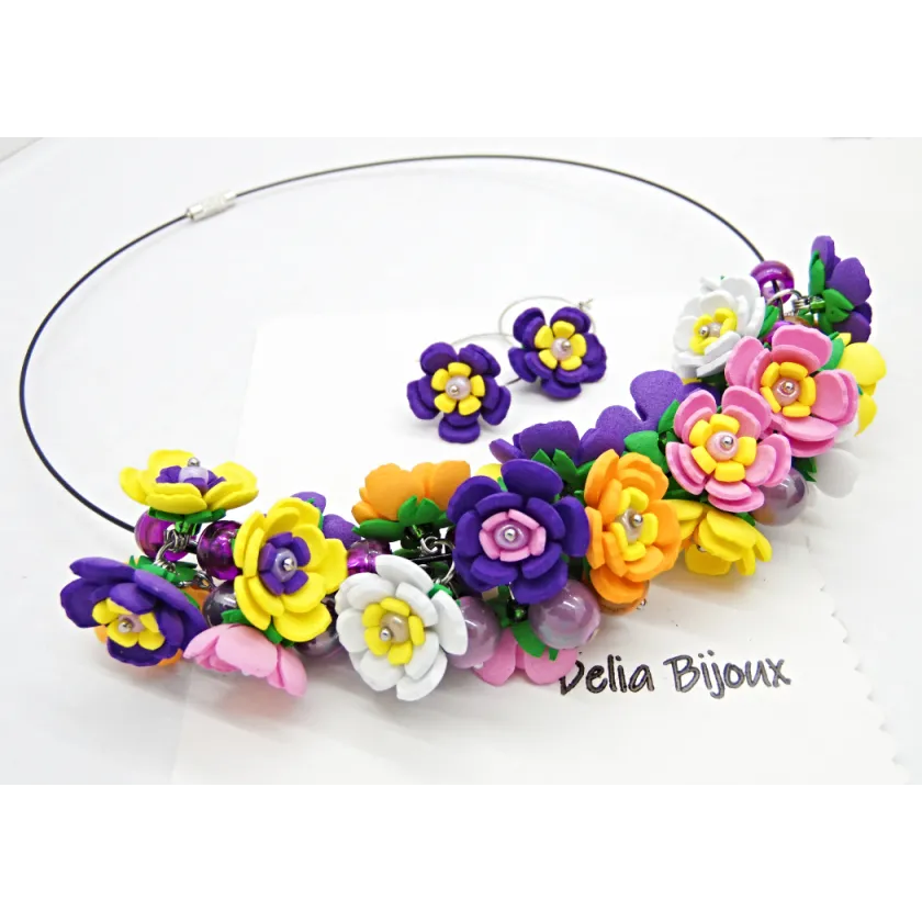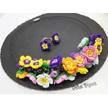 Realizat din foamiran delicat, fiecare floare a fost tăiată și modelată cu grijă pentru a recrea frumusețea naturii. În mijlocul fiecărei flori se află o mărgeluță de nisip colorată, adăugând un strop de strălucire și veselie.Designul multicolor transformă acest set într-un accesoriu vesel, perfect pentru a completa ținutele casual sau chiar pe cele elegante.Ușor, confortabil și plin de personalitate, setul este alegerea ideală pentru iubitorii de bijuterii handmade și un cadou special pentru cei dragi.