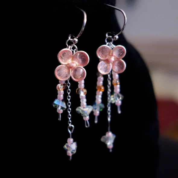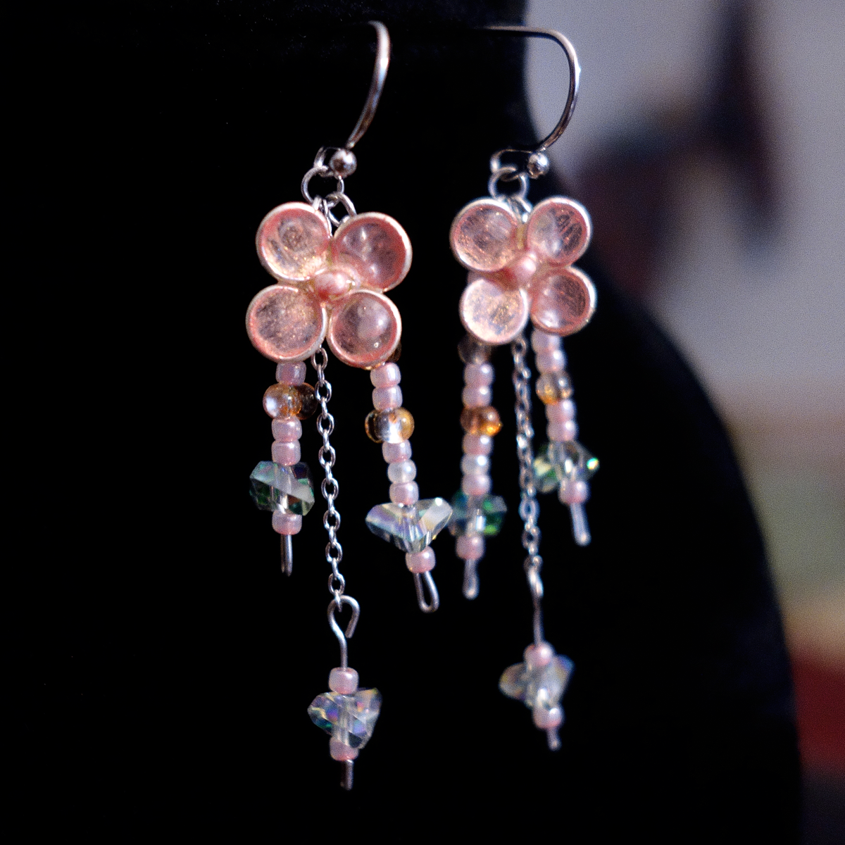 Materiale: rășină poliuretanică, tortițe oțel inoxidabil, sârmă cupru argintată, mărgele sticlă, componente oțel inoxidabil