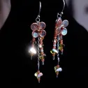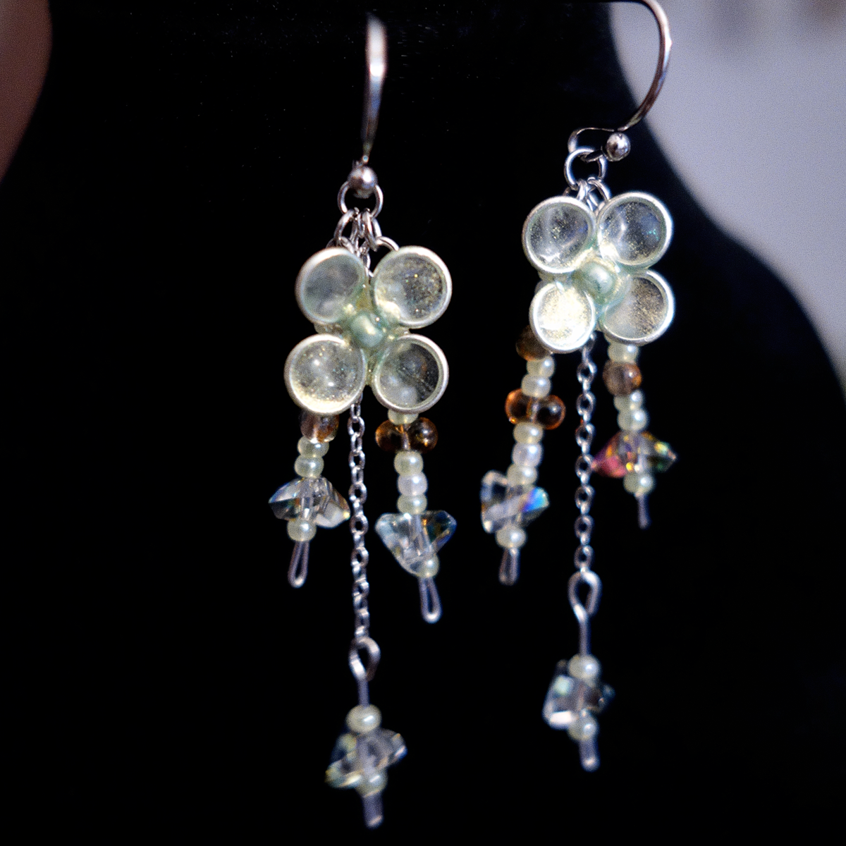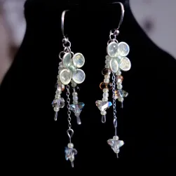 Materiale: rășină poliuretanică, tortițe oțel inoxidabil, sârmă cupru argintată, mărgele sticlă, componente oțel inoxidabil