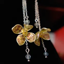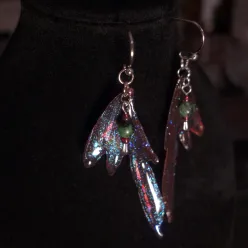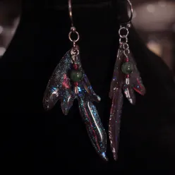 Materiale: rășină poliuretanică, tortițe oțel inoxidabil, sârmă cupru argintată, mărgele sticlă, componente oțel inoxidabil Lungime (cu tortițe): 5,5cm