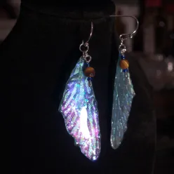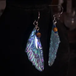 Materiale: rășină poliuretanică, tortițe oțel inoxidabil, sârmă cupru argintată, mărgele sticlă, componente oțel inoxidabil Lungime (cu tortițe): 5cm