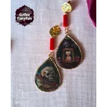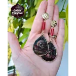 Cercei din lut polimeric, cu pietre semiprețioase, pictati manual cu culori acrilice.