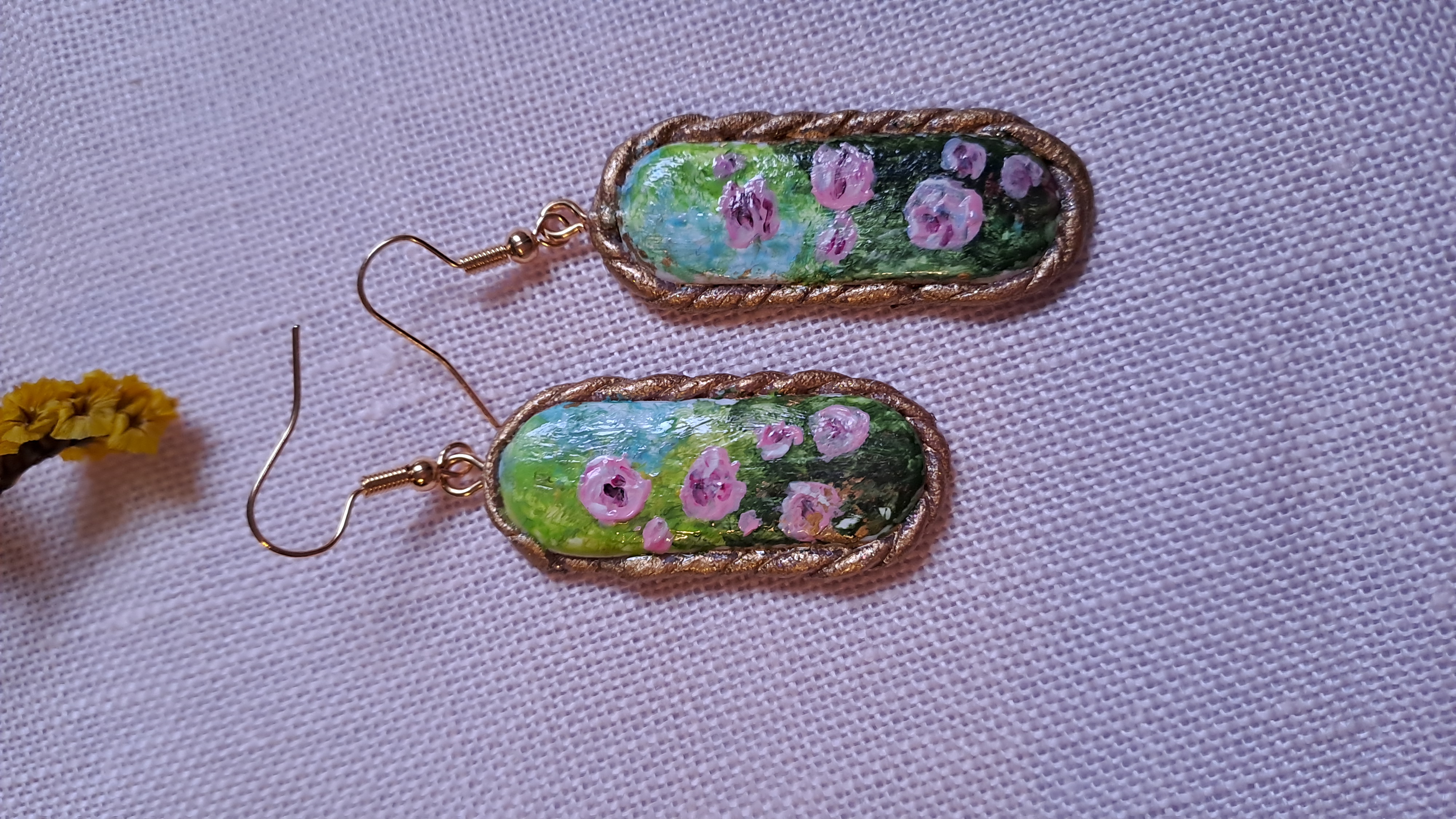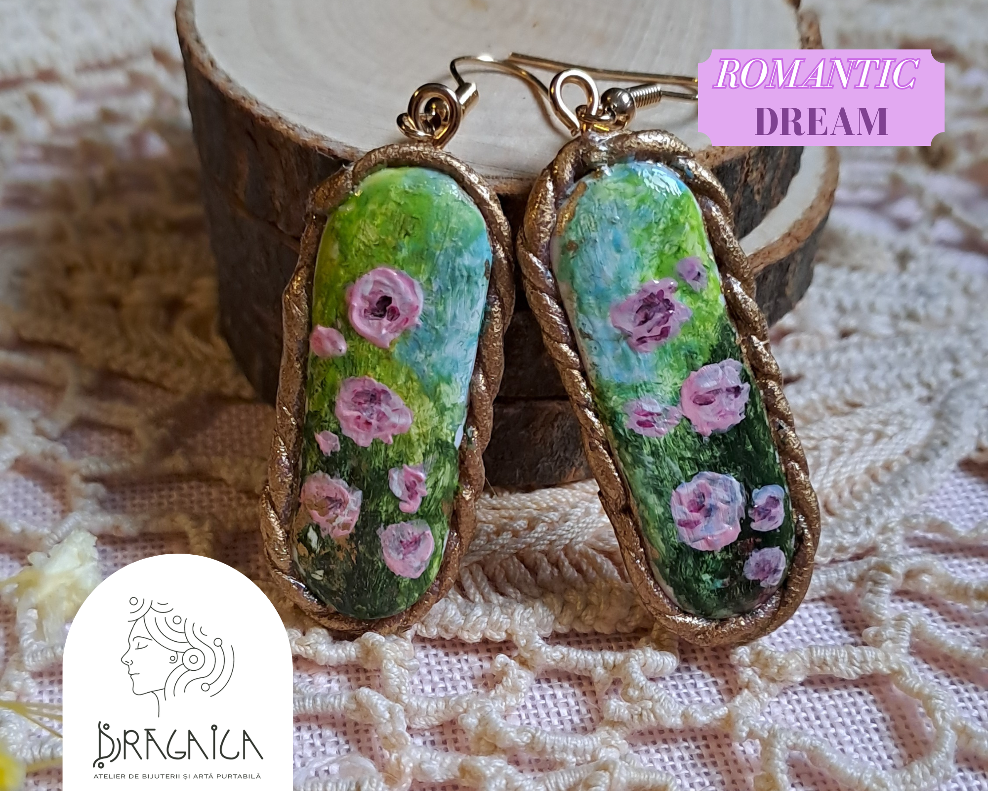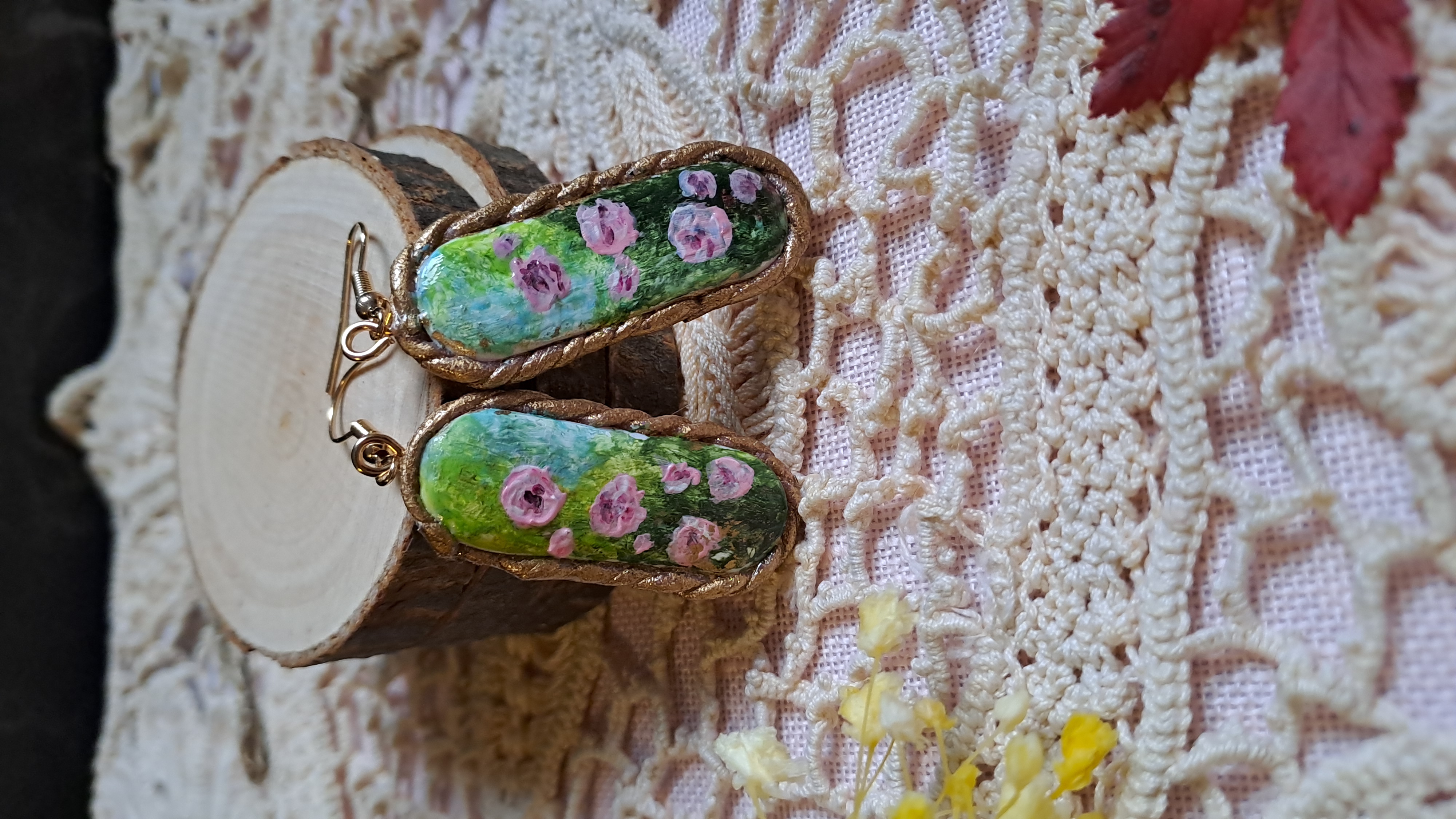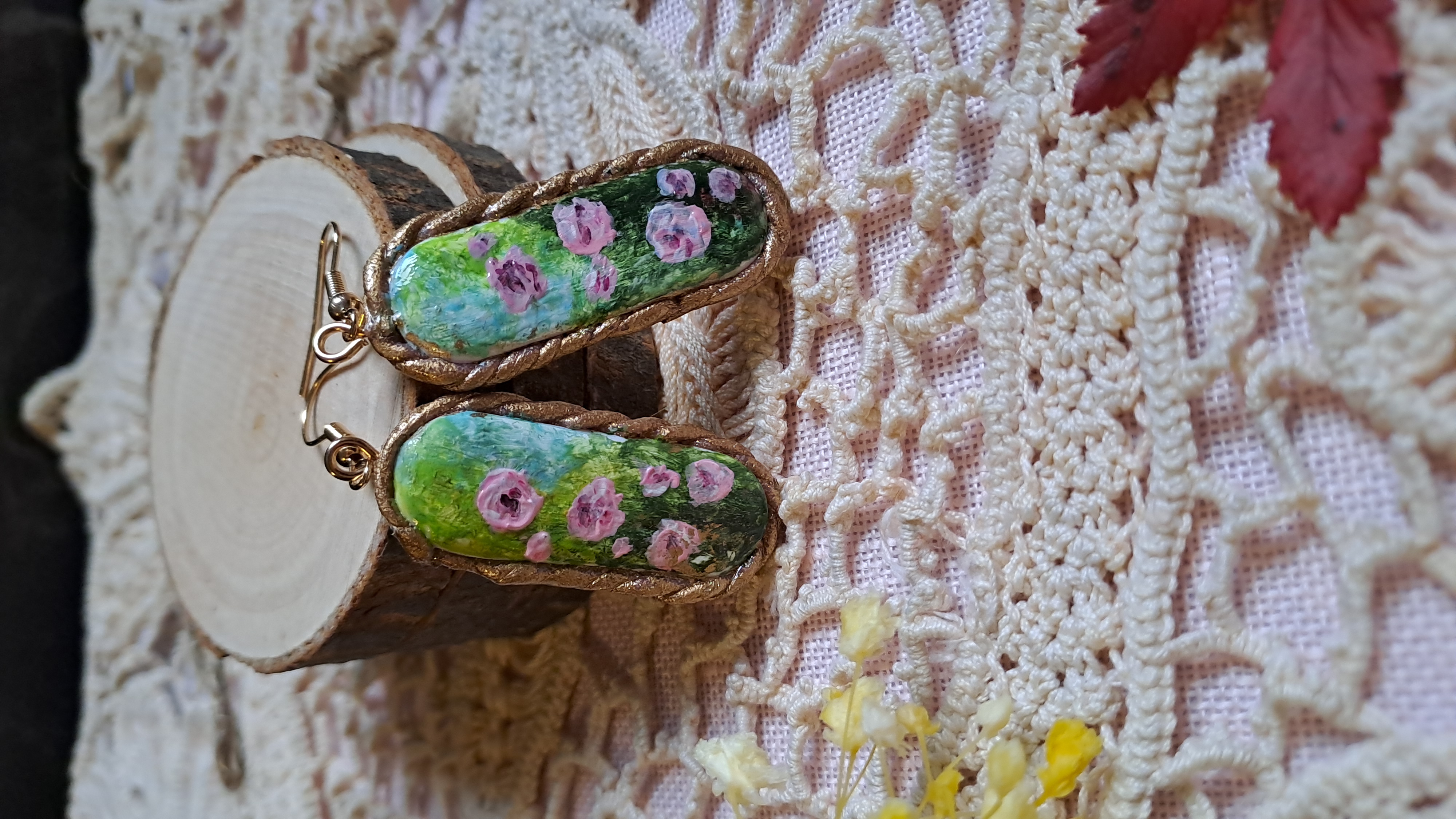 Ce poate fi mai frumos decât să poți purta, chiar și într-o zi ploioasă, cerceii aceștia ce aduc în suflet soarele și parfumul trandafirilor?Înseninează orice zi, garantat!Realizați din lut polimeric, pictați manual, cu accesorii din oțel inoxidabil.