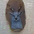Colier cu pandantiv felie de agată, pictat manual, cu vopsele acrilice. Accesoriile sunt din otel inoxidabil și sârmă argintată.