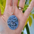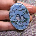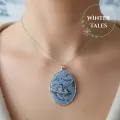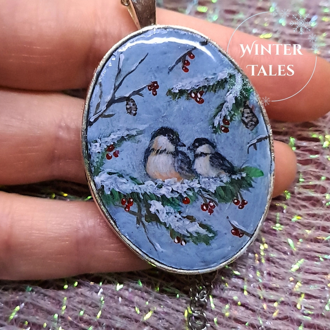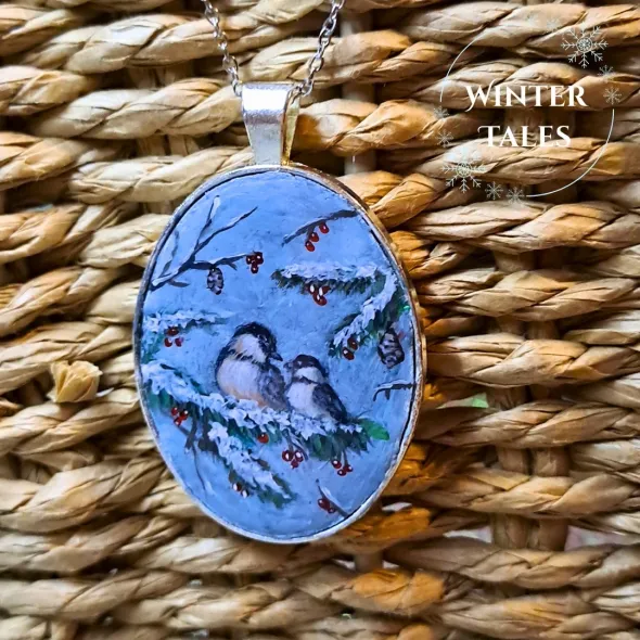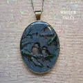 Colier cu pandantiv pictat manual "Winter Love Birds"