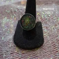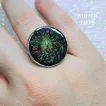 Inel pictat manual cu culori acrilice, apoi încastrat în rășină. Diametrul 18 mm.