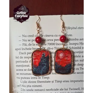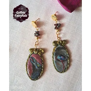 Cercei din lut polimeric, cu pietre semiprețioase, pictati manual cu culori acrilice. Colecția Gothic Fairytale vorbește despre ceea ce se află ascuns în umbre, despre mister și taine neștiute. Natura umană și supranaturalul se împletesc pentru a da naștere unor bijuterii unice, cu o estetică aparte, ce amintesc de Dracula lui Bram Stoker sau de universul lui Edgar Allan Poe. Fiecare piesă este OOAK (one of a kind -unicat).