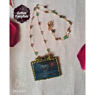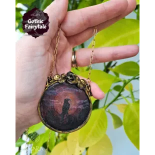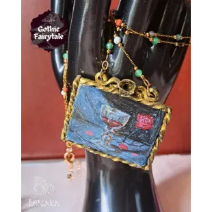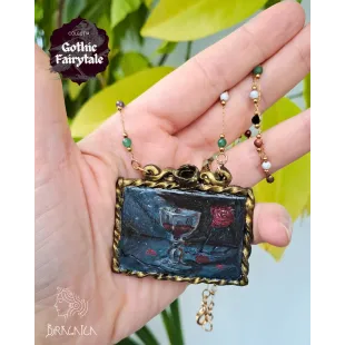 Colier cu pandantiv modelat din lut polimeric pictat manual. cu vopsele acrilice. Bara este din otel inoxidabil. Colecția Gothic Fairytale vorbește despre ceea ce se află ascuns în umbre, despre mister și taine neștiute. Natura umană și supranaturalul se împletesc pentru a da naștere unor bijuterii unice, cu o estetică aparte, ce amintesc de Dracula lui Bram Stoker sau de universul lui Edgar Allan Poe. Fiecare piesă este OOAK (one of a kind -unicat).