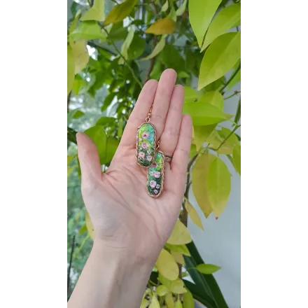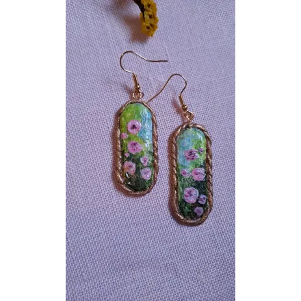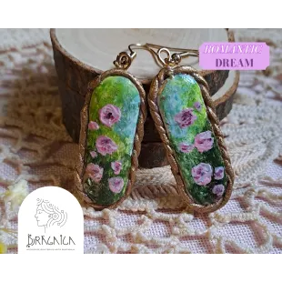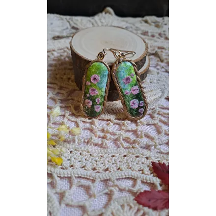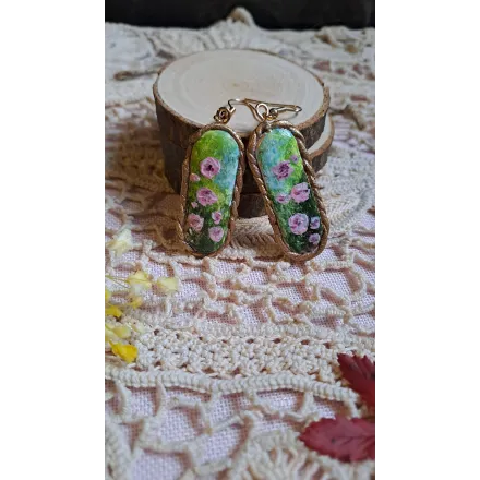 Cercei din lut polimeric, realizați manual, apoi pictati cu vopsele acrilice. Mici picturi miniaturale gata de a fi purtate si adorate. Accesorii din otel inoxidabil și pietre semiprețioase.