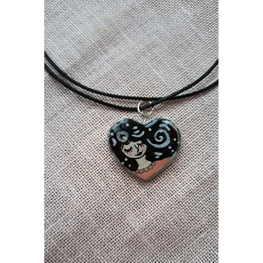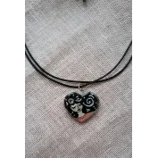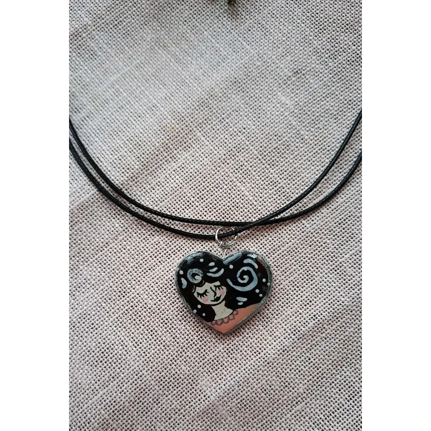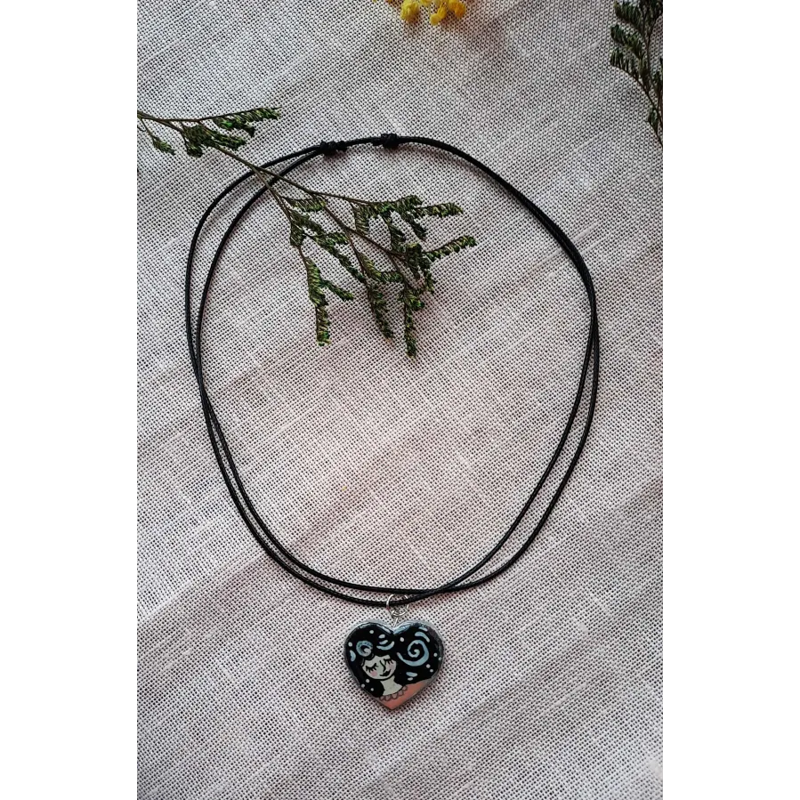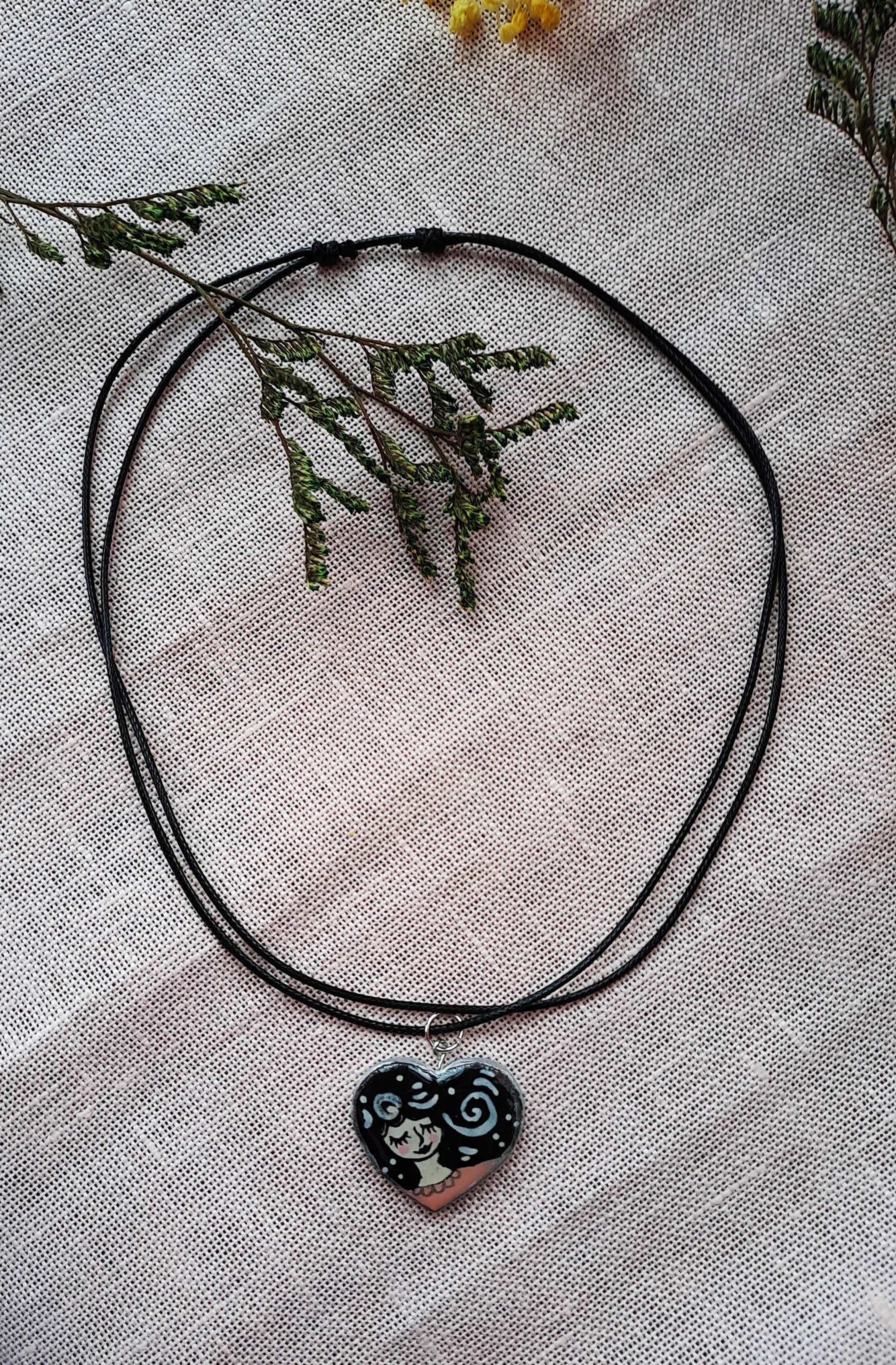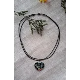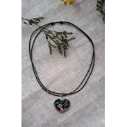 Colier cu pandantiv din lut pictat manual și apoi încastrat în rășină, pe șnur cerat, reglabil.