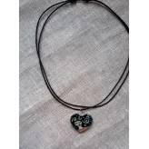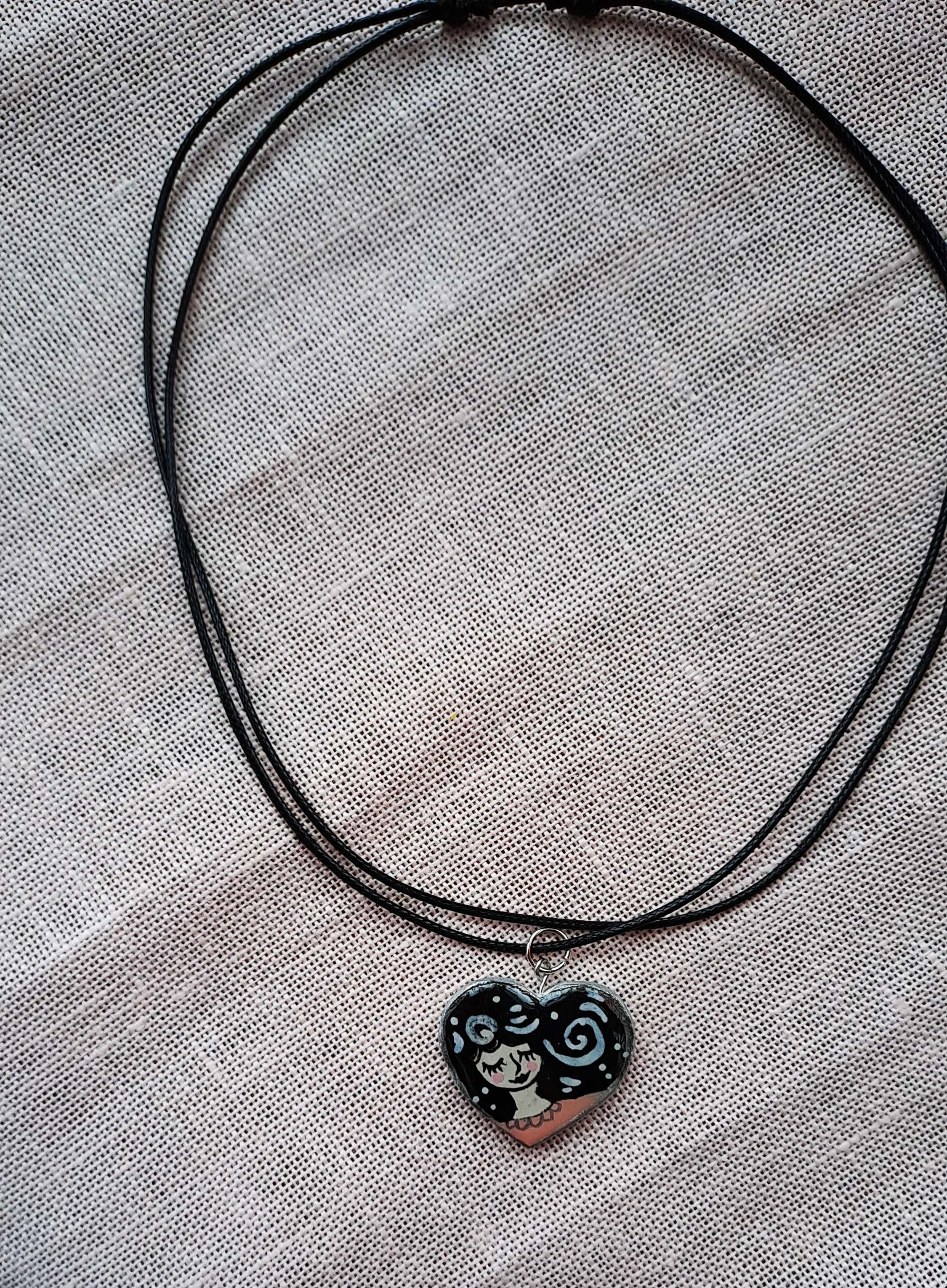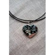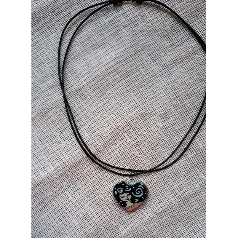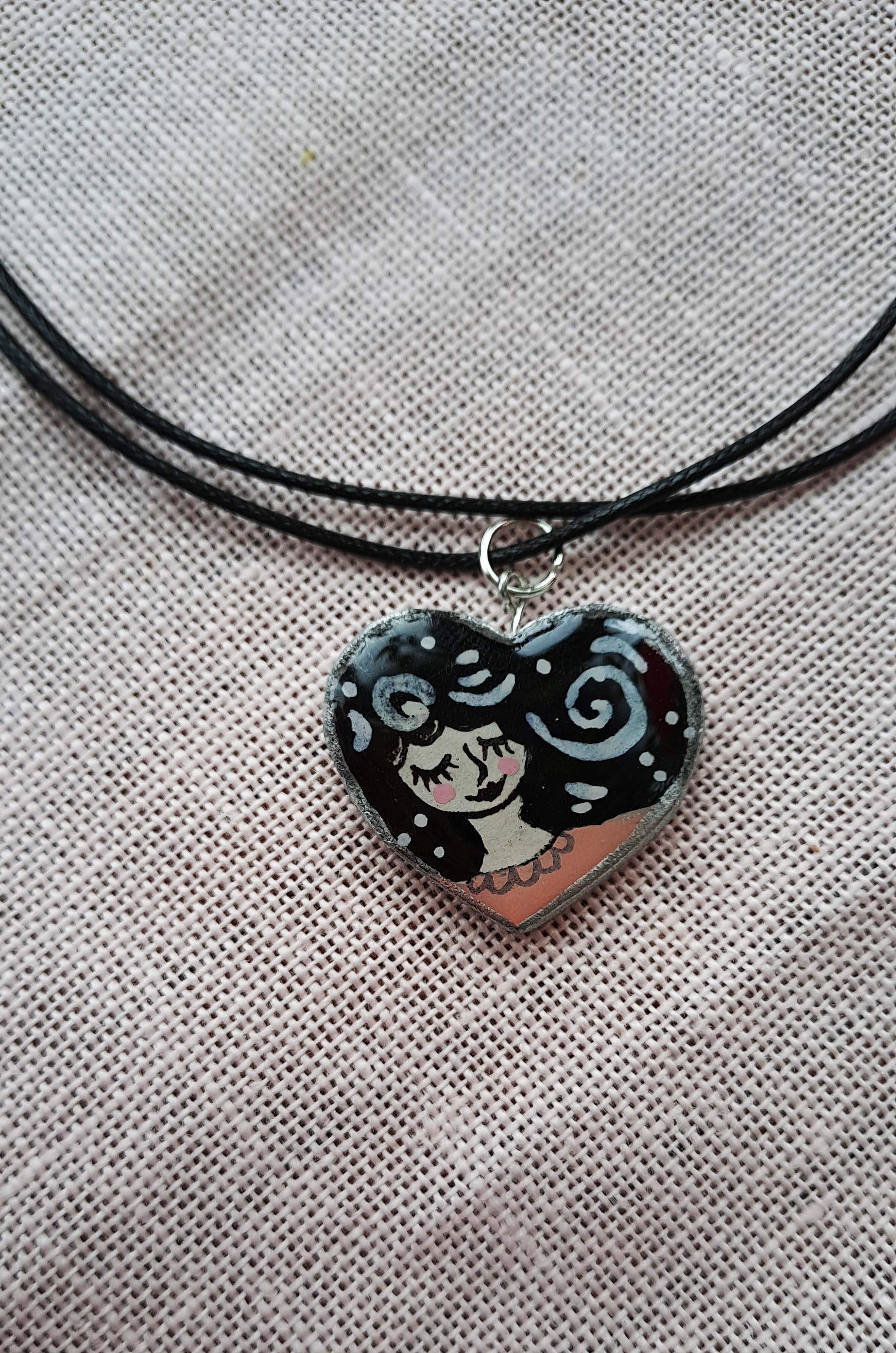 Colier cu pandantiv din lut pictat manual și apoi încastrat în rășină, pe șnur cerat, reglabil.
