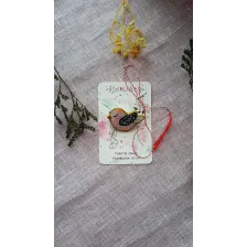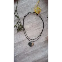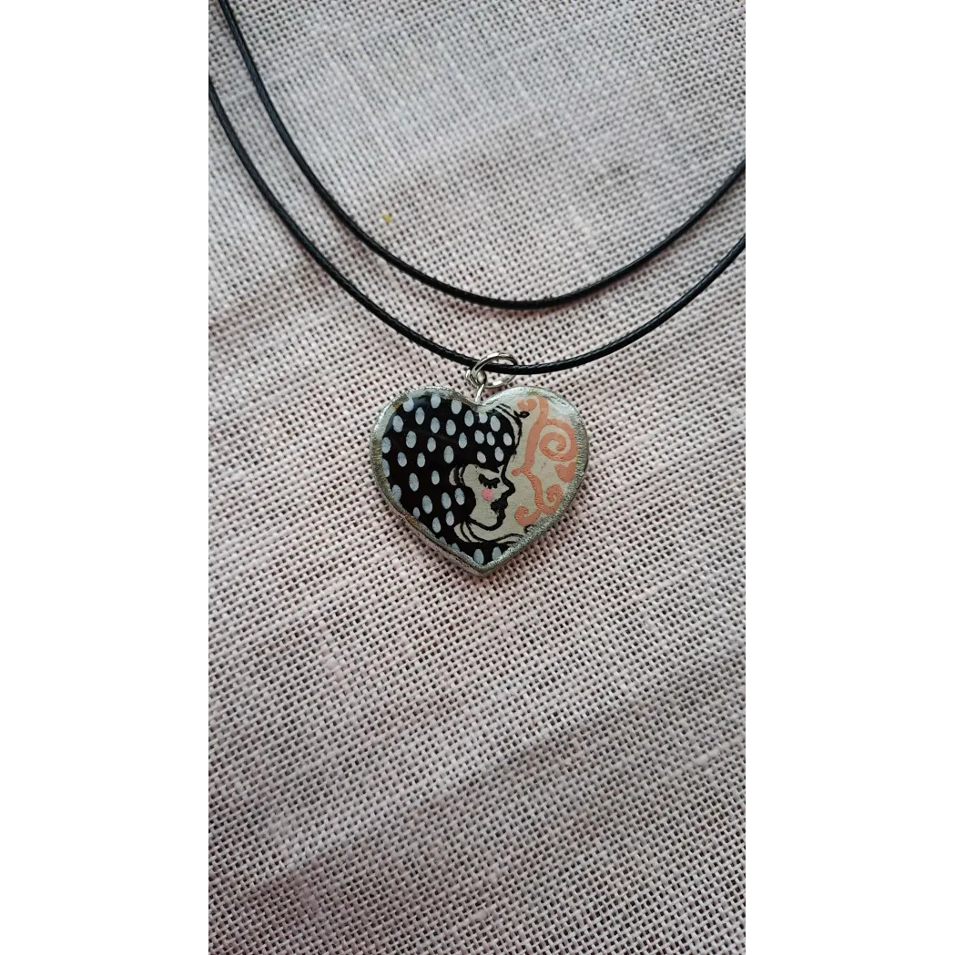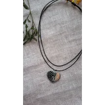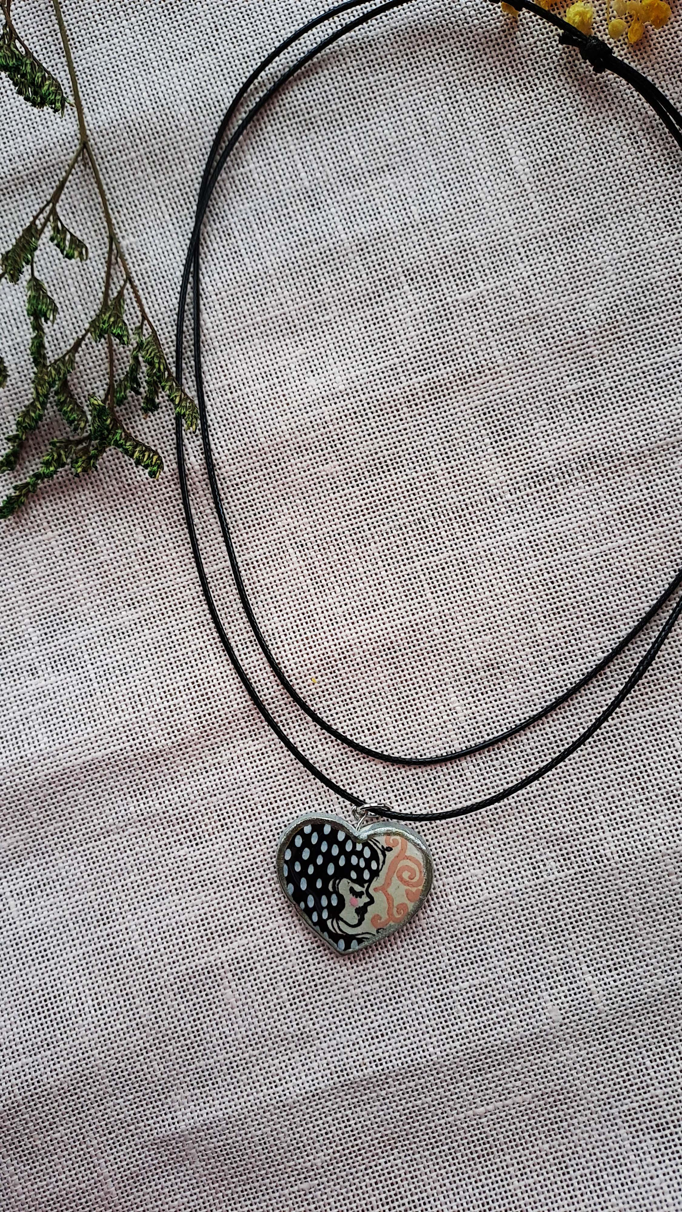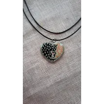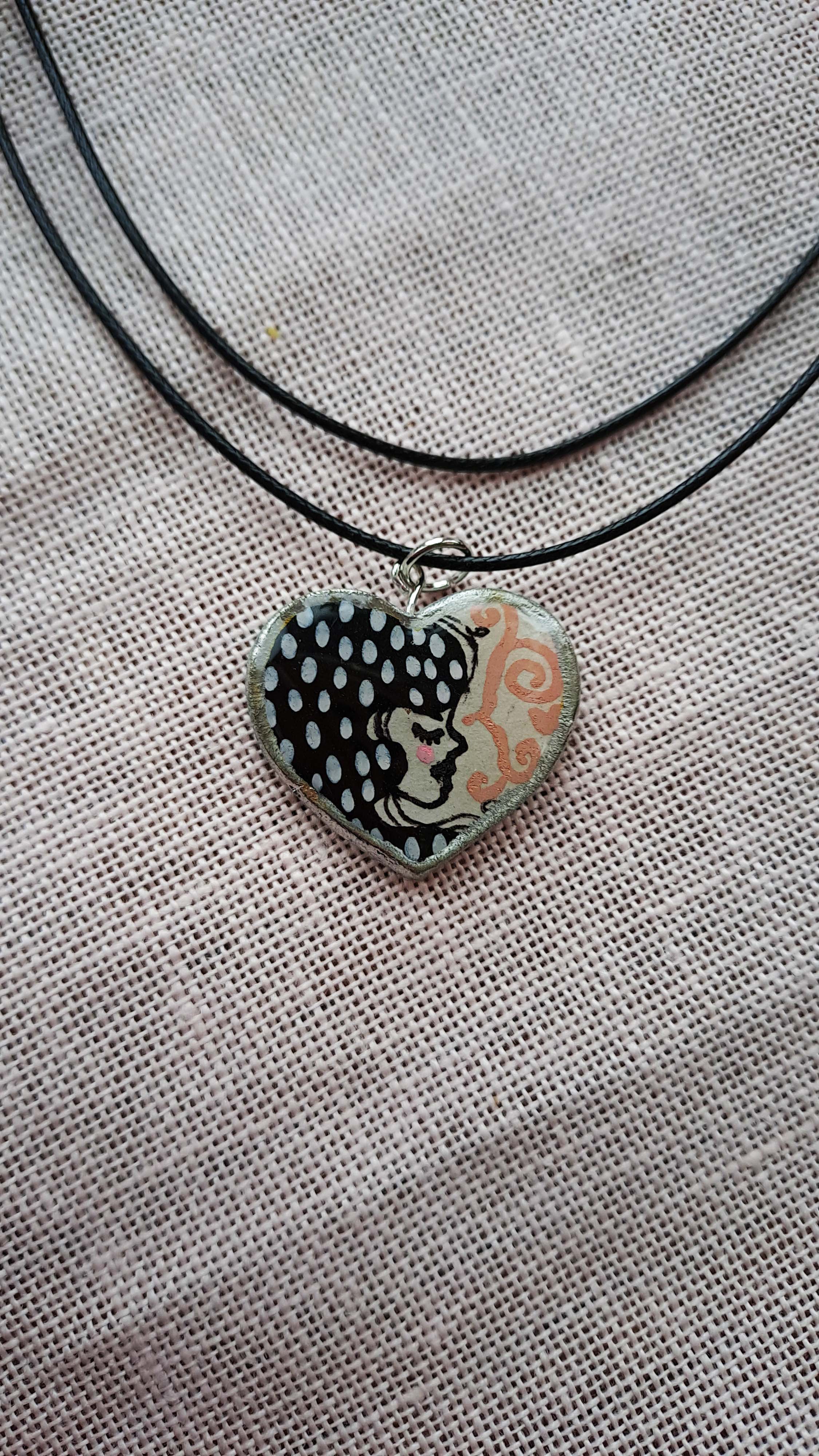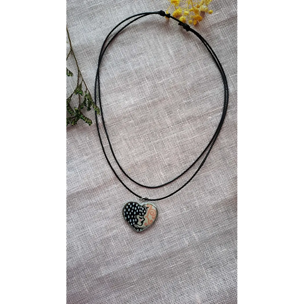 Colier cu pandantiv din lut pictat manual și apoi încastrat în rășină, pe șnur cerat, reglabil.