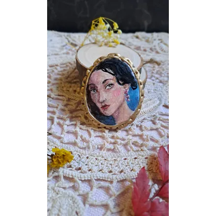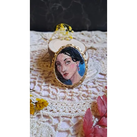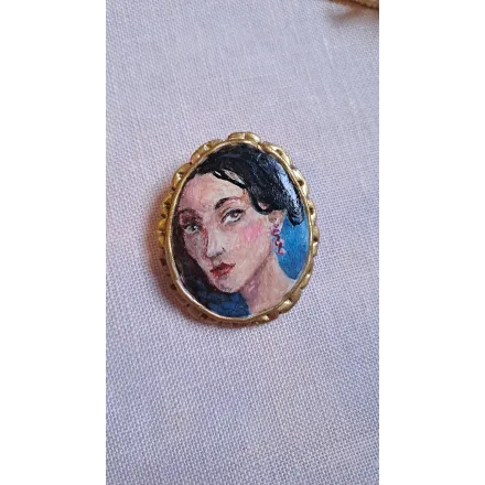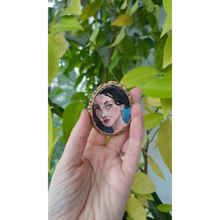 O broșă altfel, care vorbește despre mister și seducție. Realizată din lut polimeric, pictată manual.
